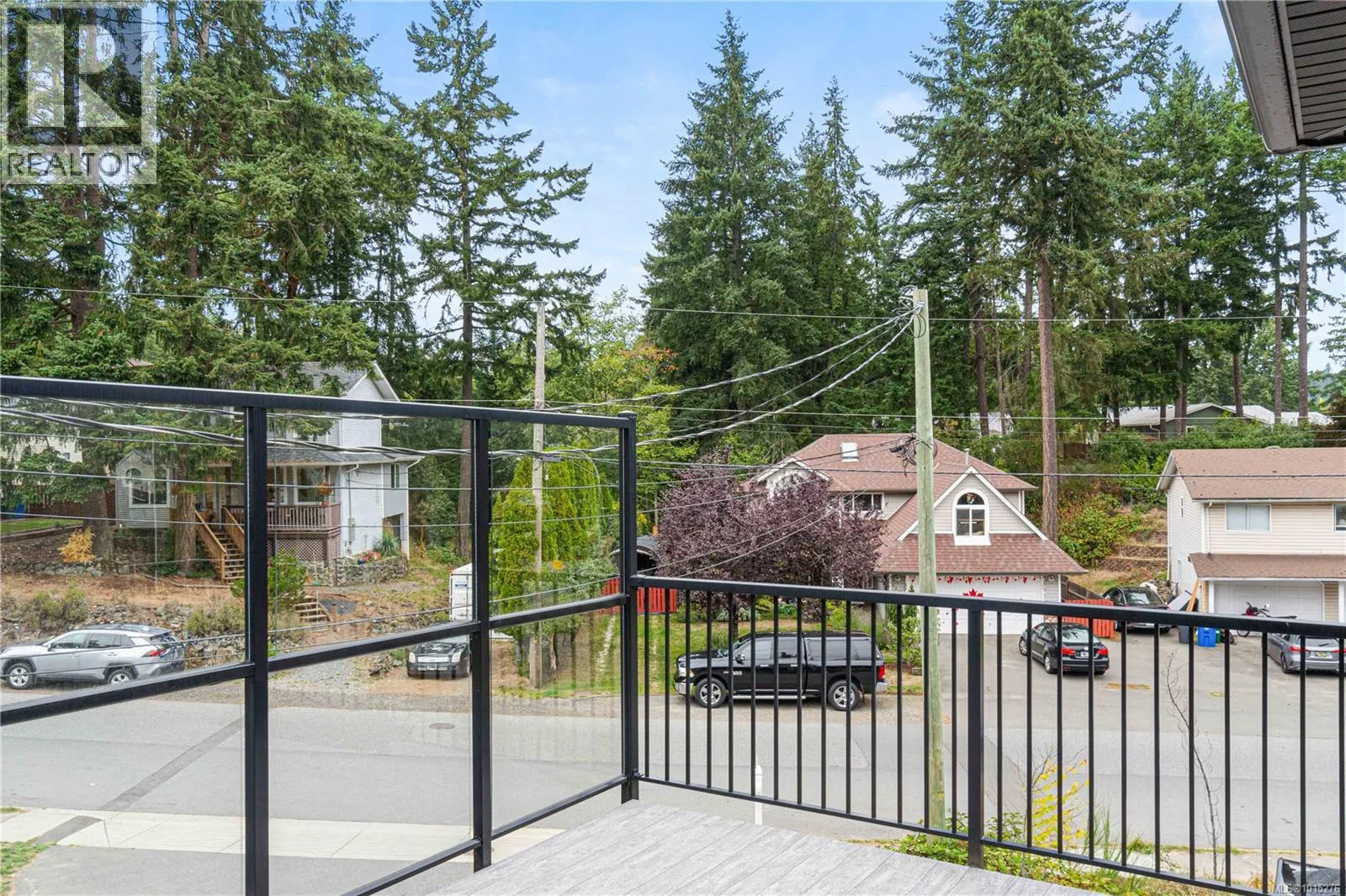Departure Bay gem! Desirable location near Linley Park. Quality, 2021 built, half-duplex with custom features. Nearly 1800sqft 3 bed + den & 3 bath. The main floor boasts 10 ft ceilings, an open-concept kitchen with quartz counters, high-gloss cabinetry, stainless appliances & open concept dining/living areas. A den on the main next to a 3 pc bath with custom shower adds versatility. Glass & steel railings on stairs to a skylit upper level with 9 ft ceilings. Stunning primary suite featuring a luxurious 5-piece ensuite, walk-in closet & large balcony. 2 additional bedrooms, 3rd full bath & laundry room. Hardi-board exterior & low maintenance lot. Stylish finishing with laminate & tile flooring, quartz counters throughout, floor to ceiling tile showers, extensive pot-lights & fire-safe sprinklers. Energy-efficient heating & Air conditioning. No strata fees. Fenced back yard & patio. Extra-tall garage & carport. Property manager & excellent tenants in place. All measurements approximate. (id:27476)