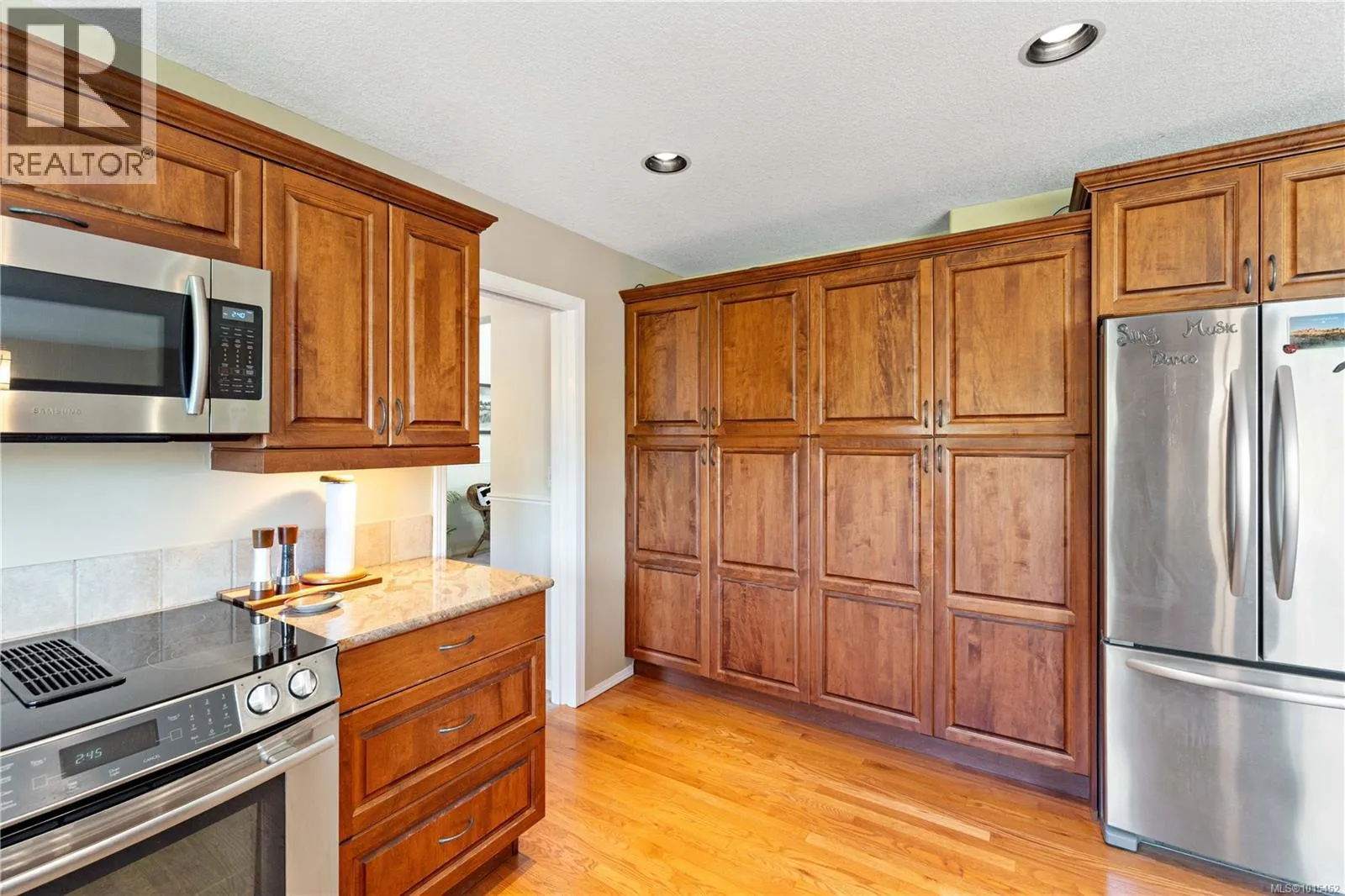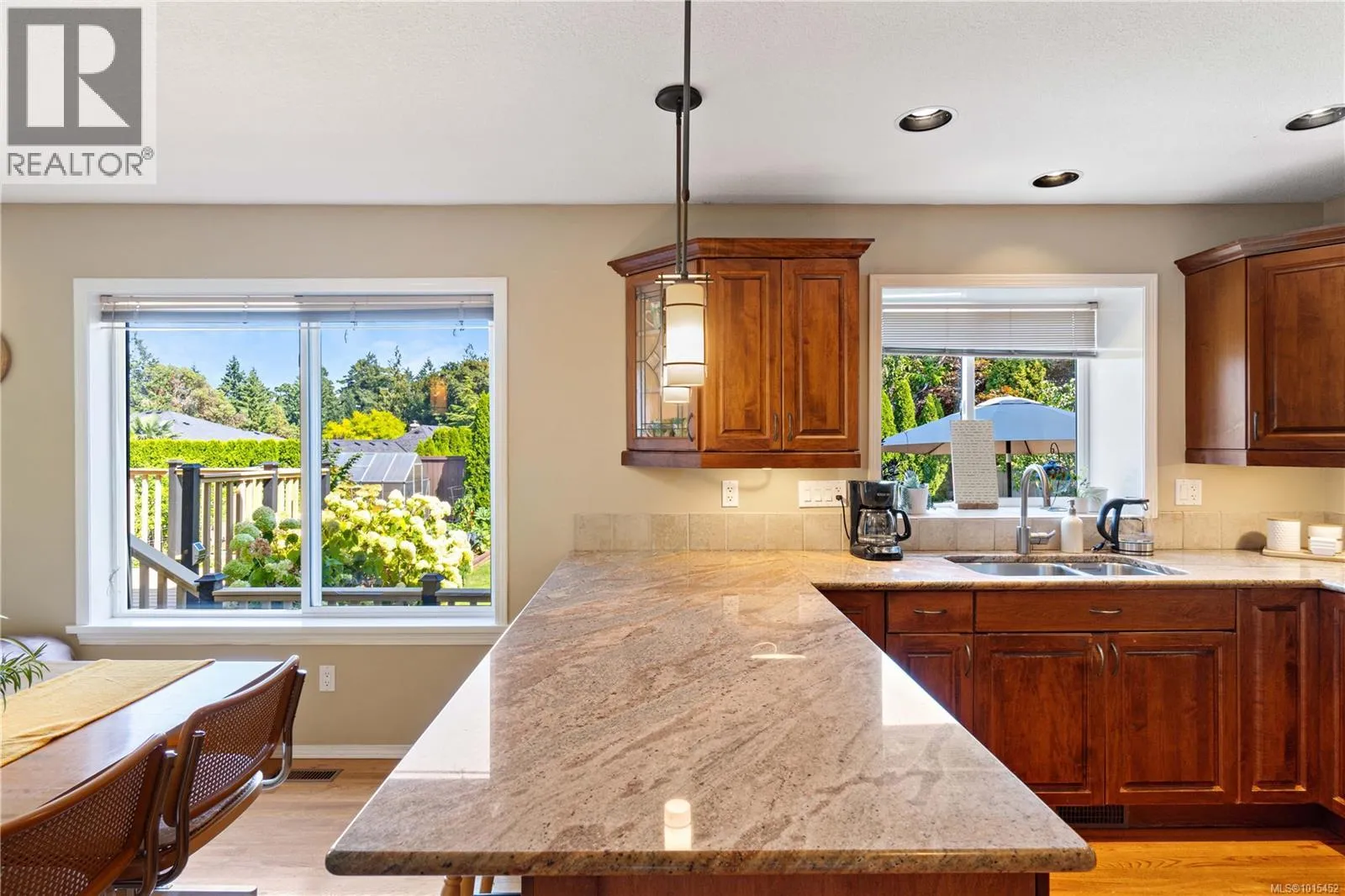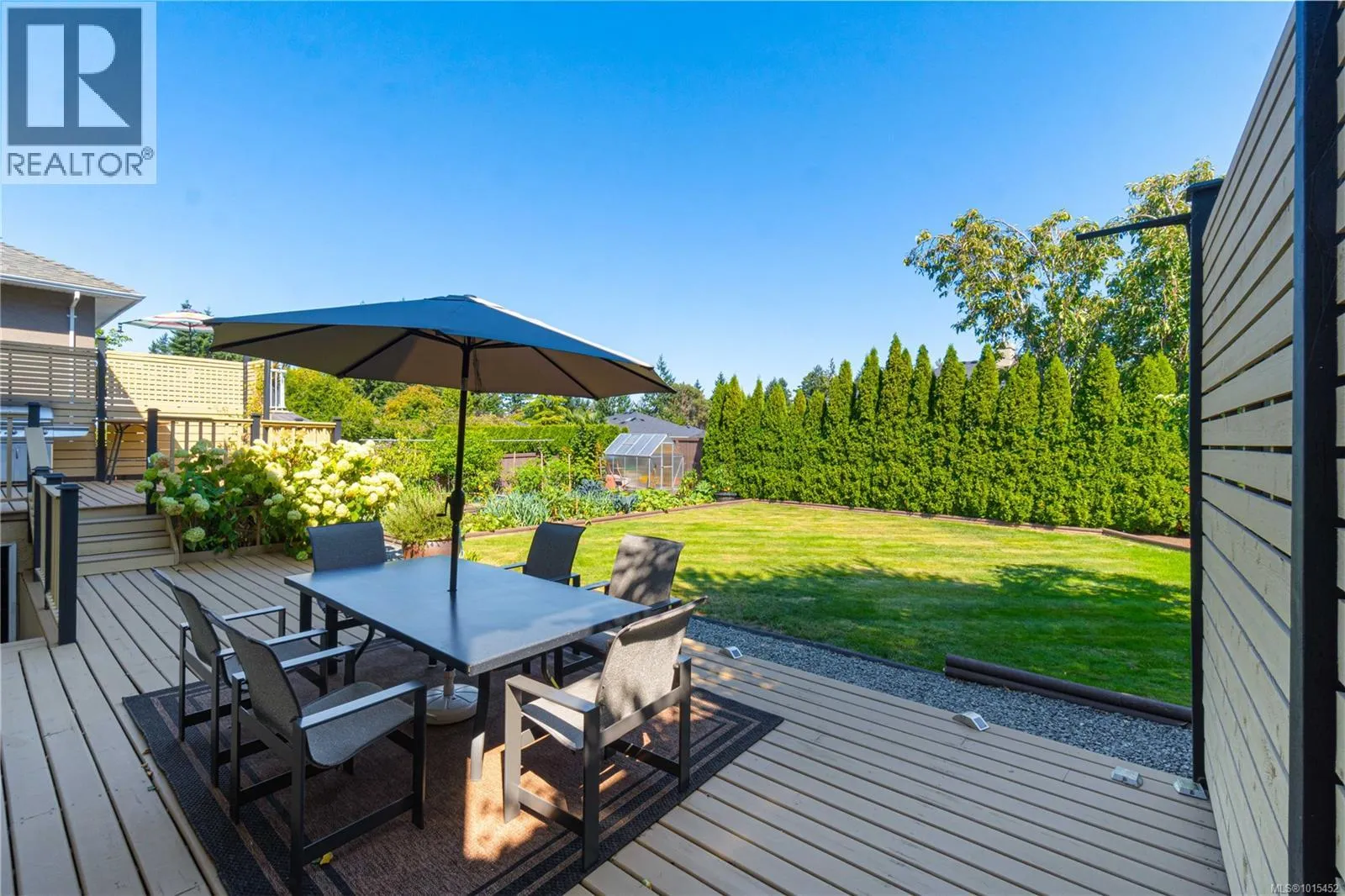 Welcome to 6262 Azure Road, a stunning 5 bed + den, 5 bath home designed for family living and entertaining. Just a short walk to two beach accesses, this home features gorgeous natural light, granite countertops, his & hers closets, a workshop, natural gas forced-air heating, ample storage, & much more. Step outside to your fully fenced private oasis with a fully irrigated vegetable and herb garden, including tomatoes, peppers, jalapenos, kale, celery, leeks, chives, rosemary, sage, cilantro, marjoram, & raspberries. A greenhouse, large deck, and grassy yard complete the space - perfect for relaxing, gardening, or entertaining. The lower level offers a kitchen/bar area & entertainment room including a pool table, plus suite potential with a separate exterior access, bedroom, and bathroom - ideal for guests & family. With thoughtful design, quality finishes, and incredible indoor-outdoor living, this home truly offers space, comfort, and lifestyle in a prime Nanaimo location. (id:27476)