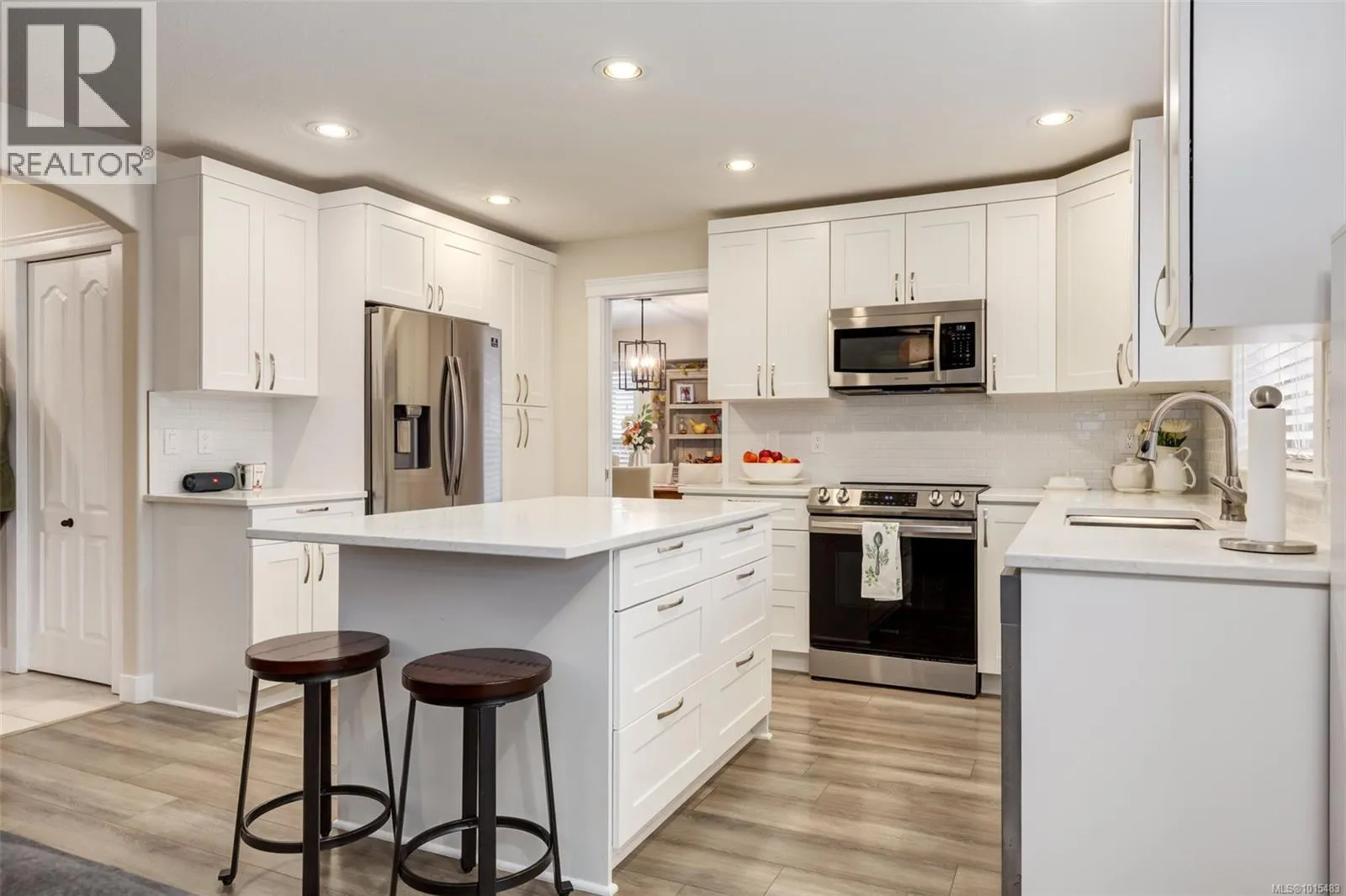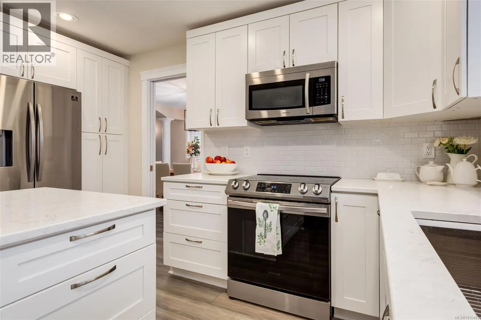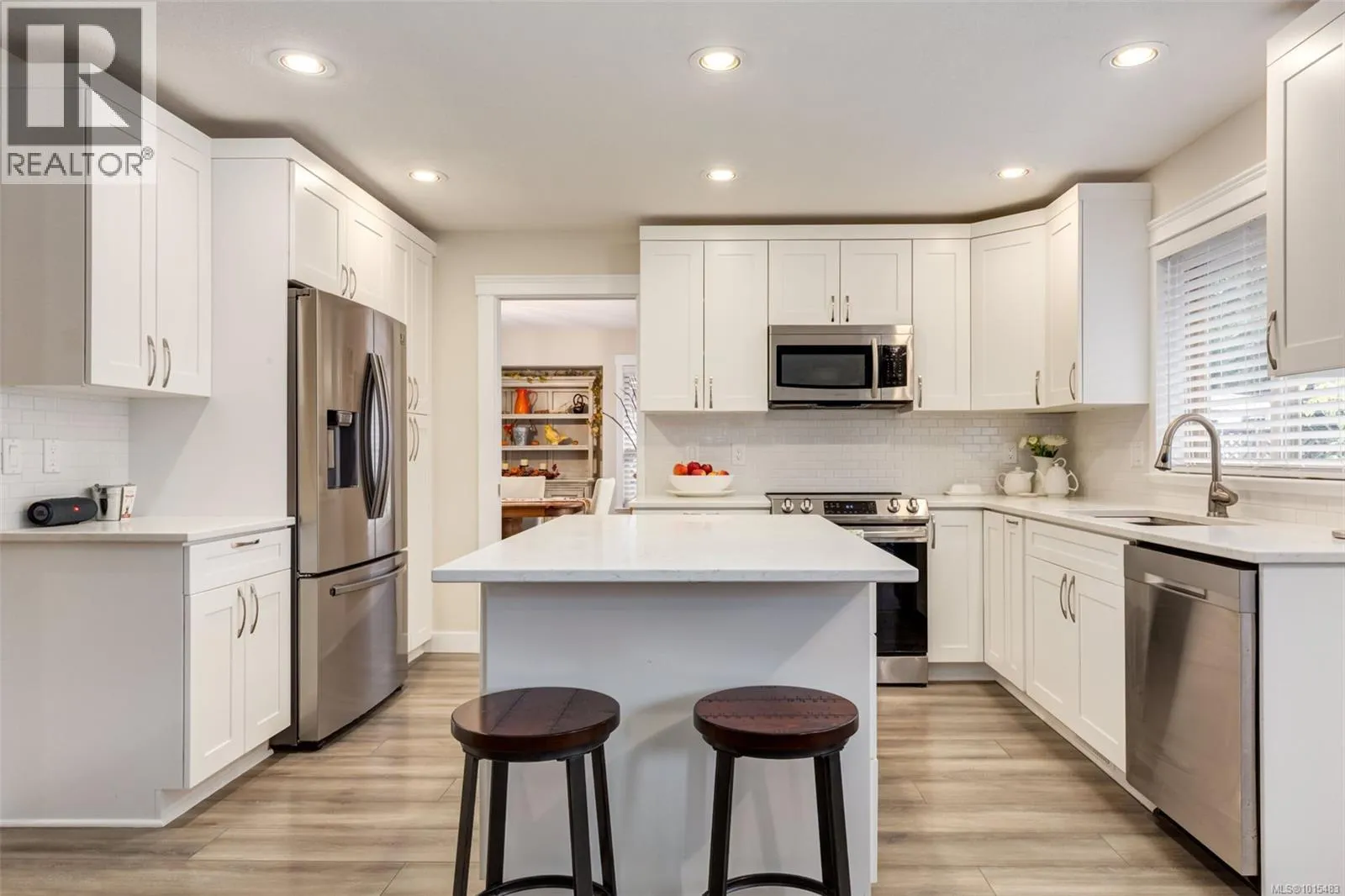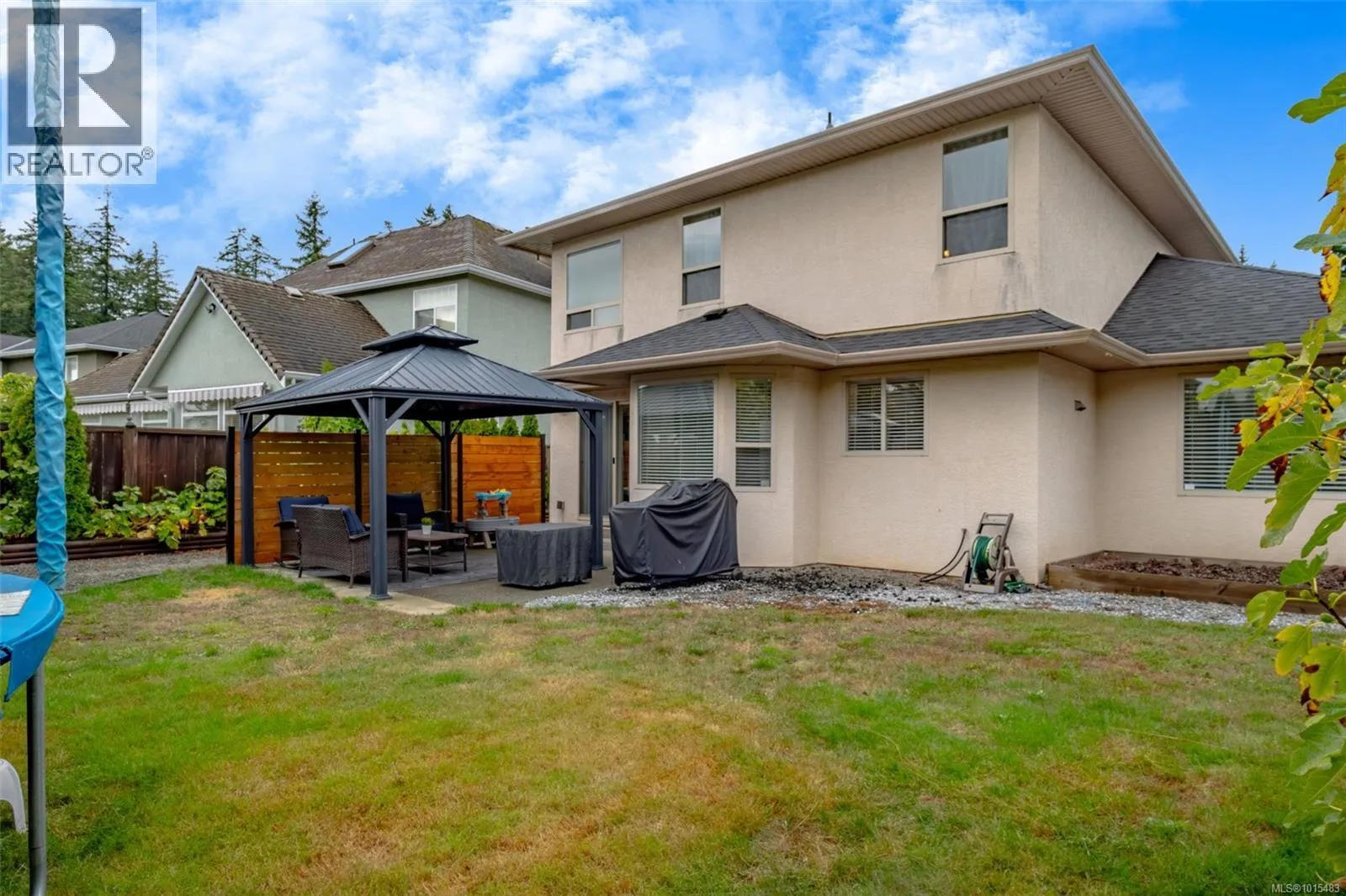 Welcome to this well-cared-for 3-bedroom + den, 3-bathroom home with 2,142 sqft of comfortable living space in one of Nanaimoâs most sought-after communities. The main floor offers a bright kitchen with island, sunny eating nook, and family room overlooking the backyard, plus a separate dining and living room with natural gas fireplace. Upstairs, the spacious primary suite features a walk-in closet and 4-piece ensuite, with two additional bedrooms and a full bath nearby. Excellent southern exposure fills the home with natural light and provides warm evening sun into the yard. The fully fenced backyard is private and landscaped with mature trees, grape vines, blueberries, and fig and cherry trees. Additional highlights include a natural gas furnace and RV parking. Walking distance to schools, transportation, NorthTown Centre, Oliver Woods Community Centre, Longwood Station, and more. The level neighbourhood is perfect for evening walks and family living. (id:27476)