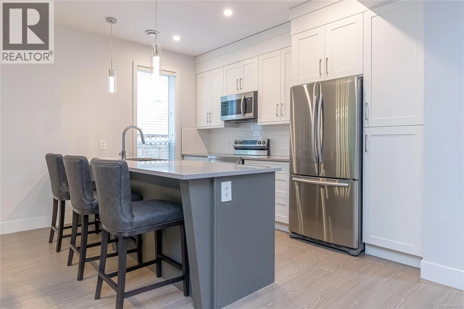 Welcome to 370 Vienna Place, a rare opportunity to own a nearly new home in Nanaimoâs desirable University District. Built in 2022, this 1,923 sq ft residence blends modern comfort with practical design and natural surroundings, making it perfect for families, professionals, or downsizers seeking both convenience and style. Nestled on a quiet six-home cul-de-sac, the elevated lot provides privacy, abundant light, and a sense of connection to nature. The rare main-level entry leads into a bright open-concept layout where kitchen, dining, and living flow seamlessly together. The contemporary kitchen offers ample workspace and storage, while the living area is centered by a cozy gas fireplace. Comfort comes easy with a heat pump plus air conditioning, and main-floor laundry adds everyday convenience. Upstairs, a spacious loft offers valuable flexibilityâwhether as a home office, media space, or creative area. Three bedrooms and three bathrooms are well appointed with modern finishes, offering style and versatility for every household. tep outside to your own private oasis backing directly onto protected green space and a creekside trail network, with no rear neighbours and views of Mt. Benson. The west-facing covered patio and deck create the ideal setting for morning coffee, family BBQs, and evening sunsets. Practical features include an attached garage plus parking for three vehicles, closet organizers, and a low-maintenance yard. The location is exceptionalâwalking distance to Vancouver Island University, Park Avenue Elementary, and John Barsby High School, with downtown dining, local markets, marinas, and recreation only minutes away. 370 Vienna Place is more than a homeâitâs modern living, natural beauty, and everyday convenience combined into one exceptional package. (id:27476)