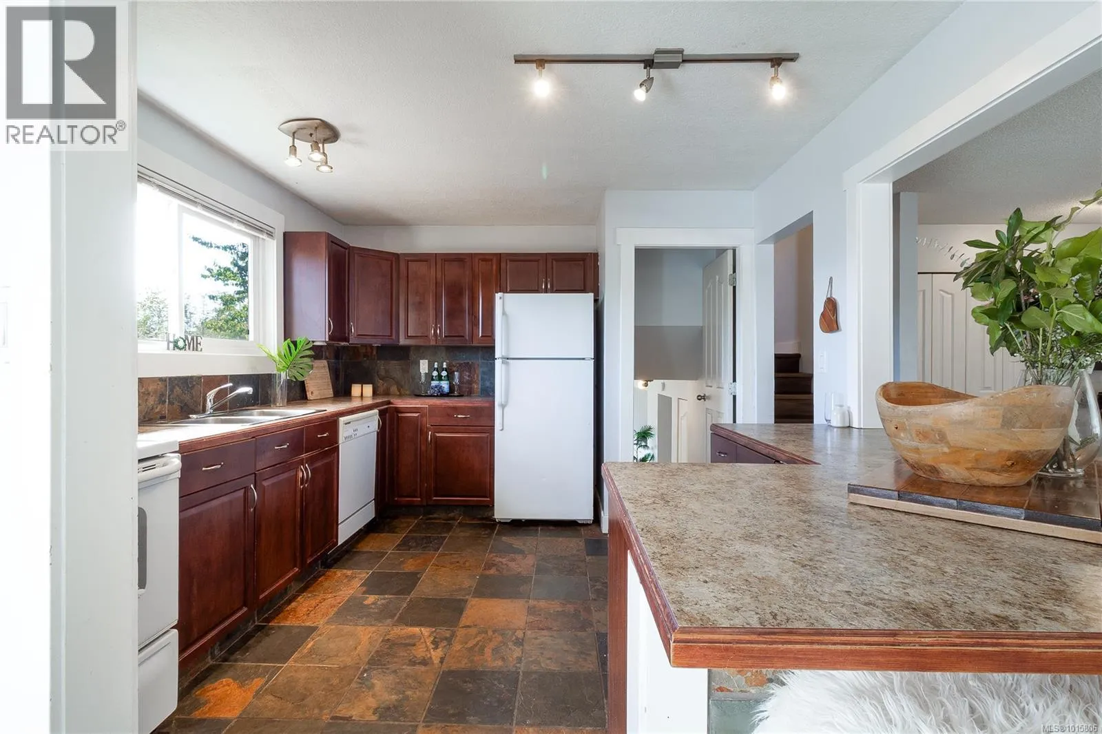 Welcome to this affordable and versatile single-family home in Central Nanaimo. This 4-bedroom, 2-bath split-level is designed for todayâs busy family lifestyle. The open-concept main floor features a spacious kitchen with a large island/eating bar flowing into the dining and living areasâperfect for gatherings and entertaining. A bonus kitchenette with its own bedroom and entrance adds flexibility for extended family, teens, or a home office. Sliding doors open to a brand-new oversized deck overlooking a large, flat, fenced backyardâideal for kids, pets, summer BBQs, and outdoor fun. Driveway access to the backyard provides space for RVs, boats, or extra vehicles. Updates include new vinyl flooring throughout, energy-efficient vinyl windows, a natural gas furnace, and slate tile in the kitchen and bathrooms. Additional features: charming front porch, low-maintenance landscaping, stacking washer/dryer, and crawlspace storage. The location is central and convenient: a short walk to Forest Park Elementary, minutes to Beban Park (golf, tennis, swimming, playgrounds, events), shopping at Beban Plaza, bus routes, and easy highway access. This home offers room to grow, space to gather, and a lifestyle that blends comfort, function, and convenience. Perfect for young families, extended relatives, or anyone seeking versatility in a prime Nanaimo location. (id:27476)
