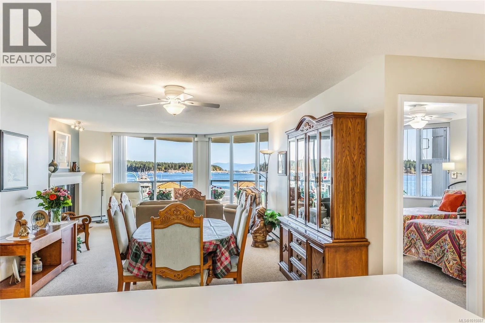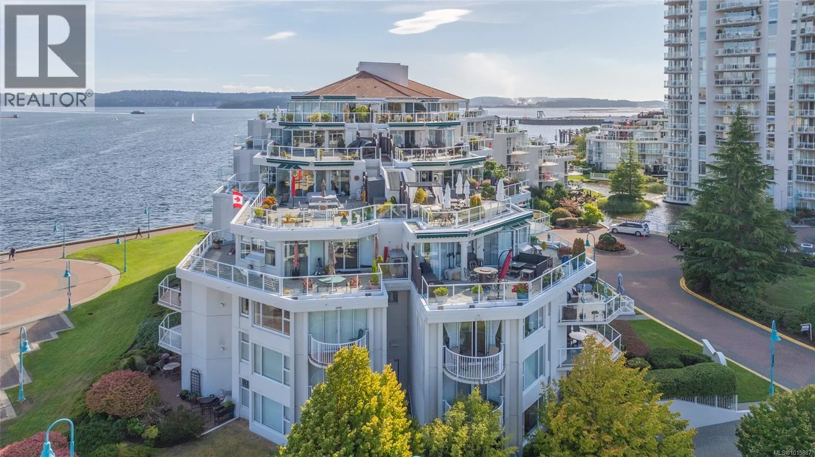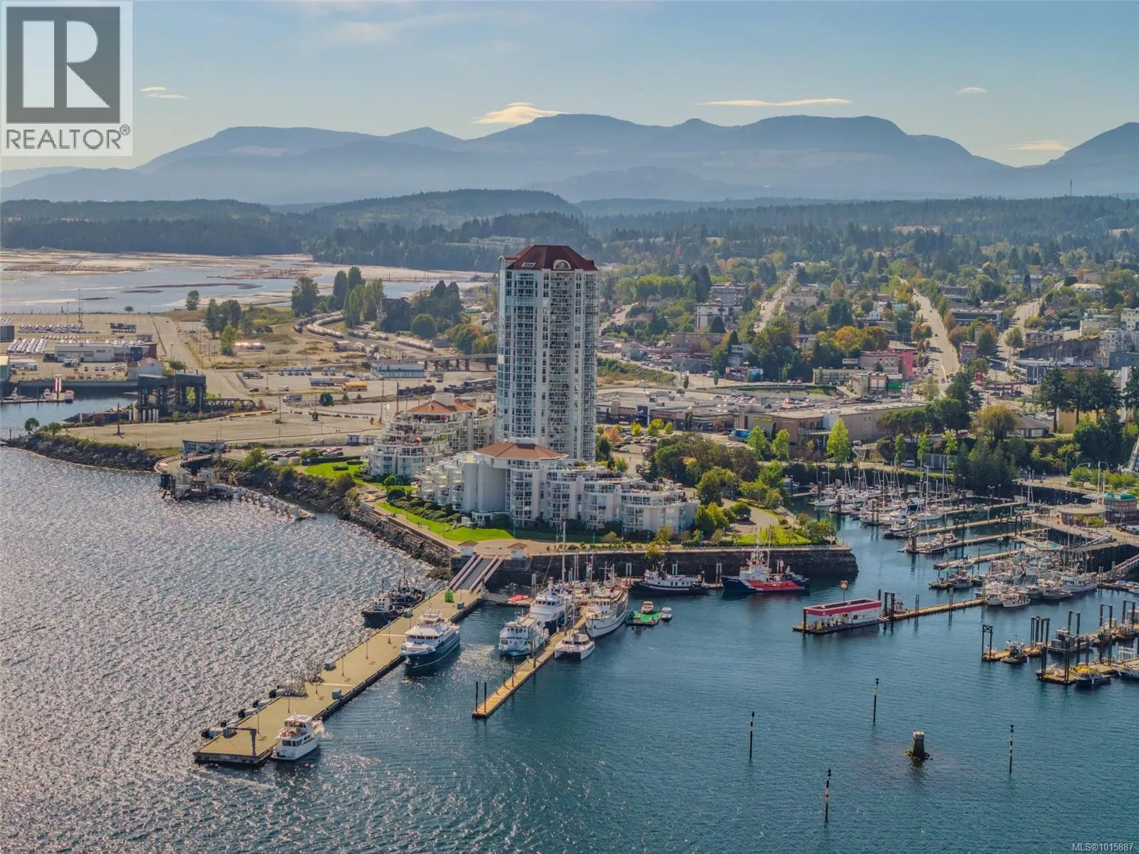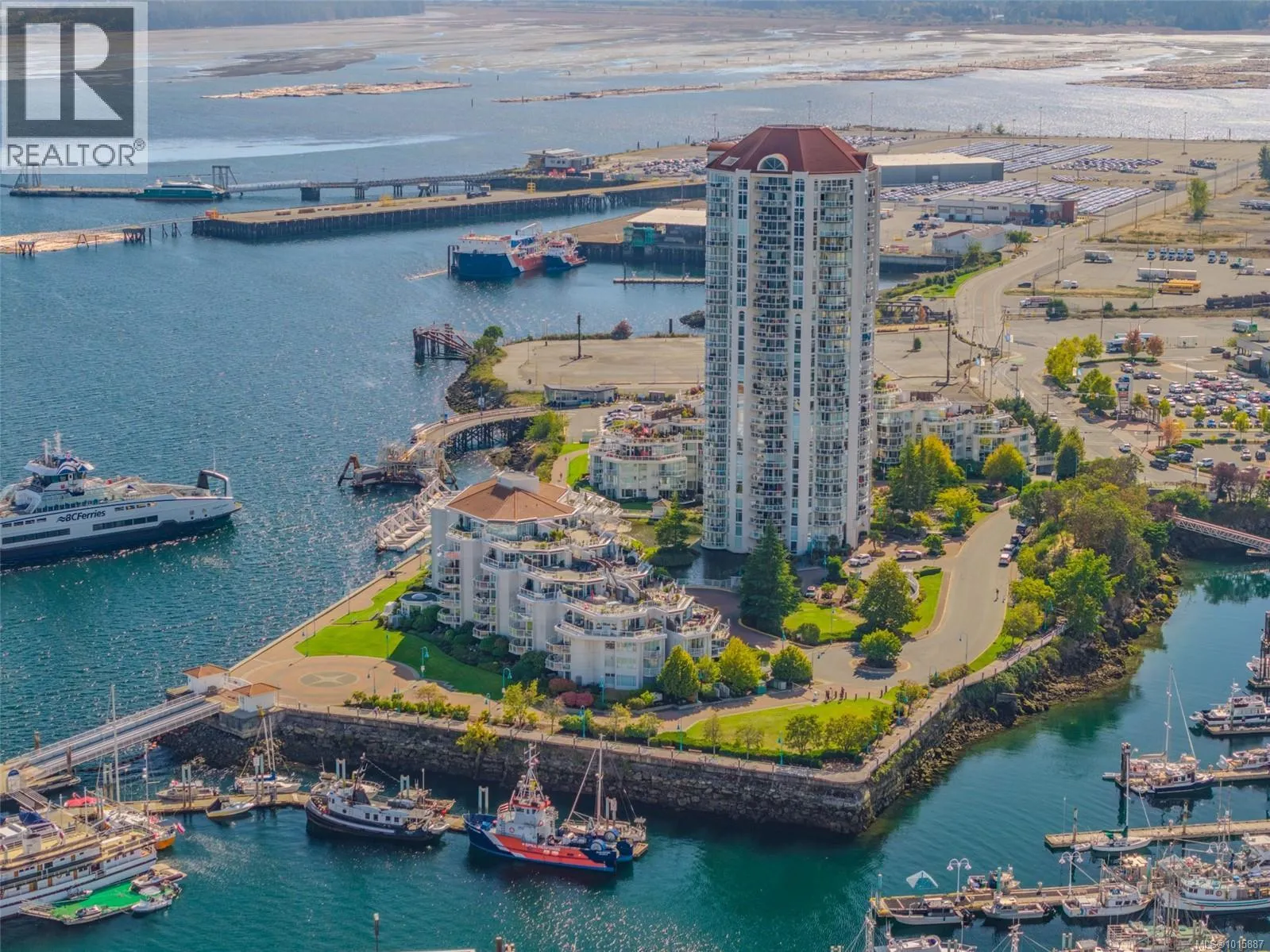 It's all about the View! The ultimate Waterfront location overlooking Nanaimo Harbour, Protection & Newcastle Islands can be yours. From the moment you step inside this bright & airy suite you can see the ocean. This spacious 2 bedroom & 2 bathroom unit is move-in ready & features many custom upgrades. The all white kitchen is open to the living & dining areas & all rooms enjoy the views. Appliances all new in 2025 including an electric flat top range, Whirlpool Fridge with bottom freezer & Whirlpool dishwasher. The living room features a new gas fireplace with a dramatic feature wall & tile face. Three new ceiling fans capture & circulate the ocean breeze & the windows & doors are screened & have new verticle blinds. The primary bedroom has a French door to the balcony with retractable screen,ensuite with new walk in shower, new tile floors & custom sink & vanity. The 3 pc main bath with hidden laundry & new Miele stacking washer/dryer. 2 underground parking spots. No Pets. (id:27476)