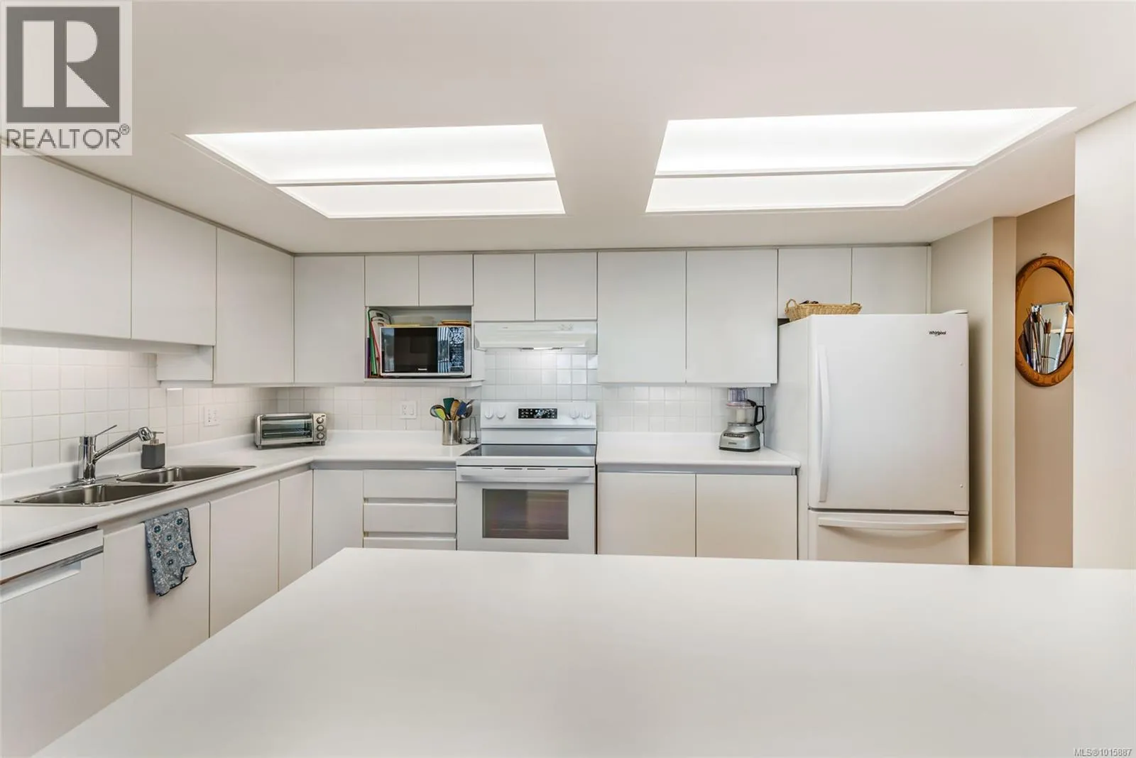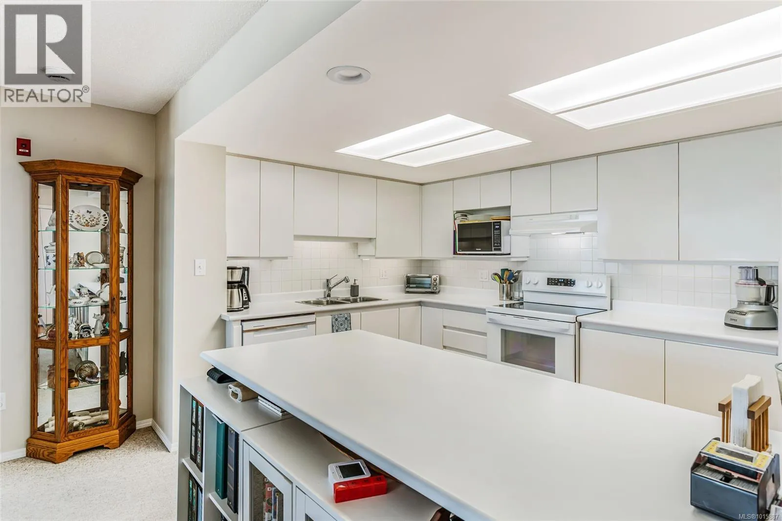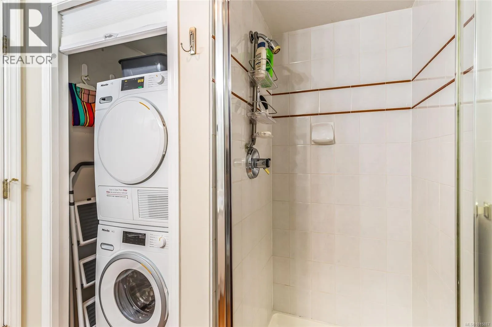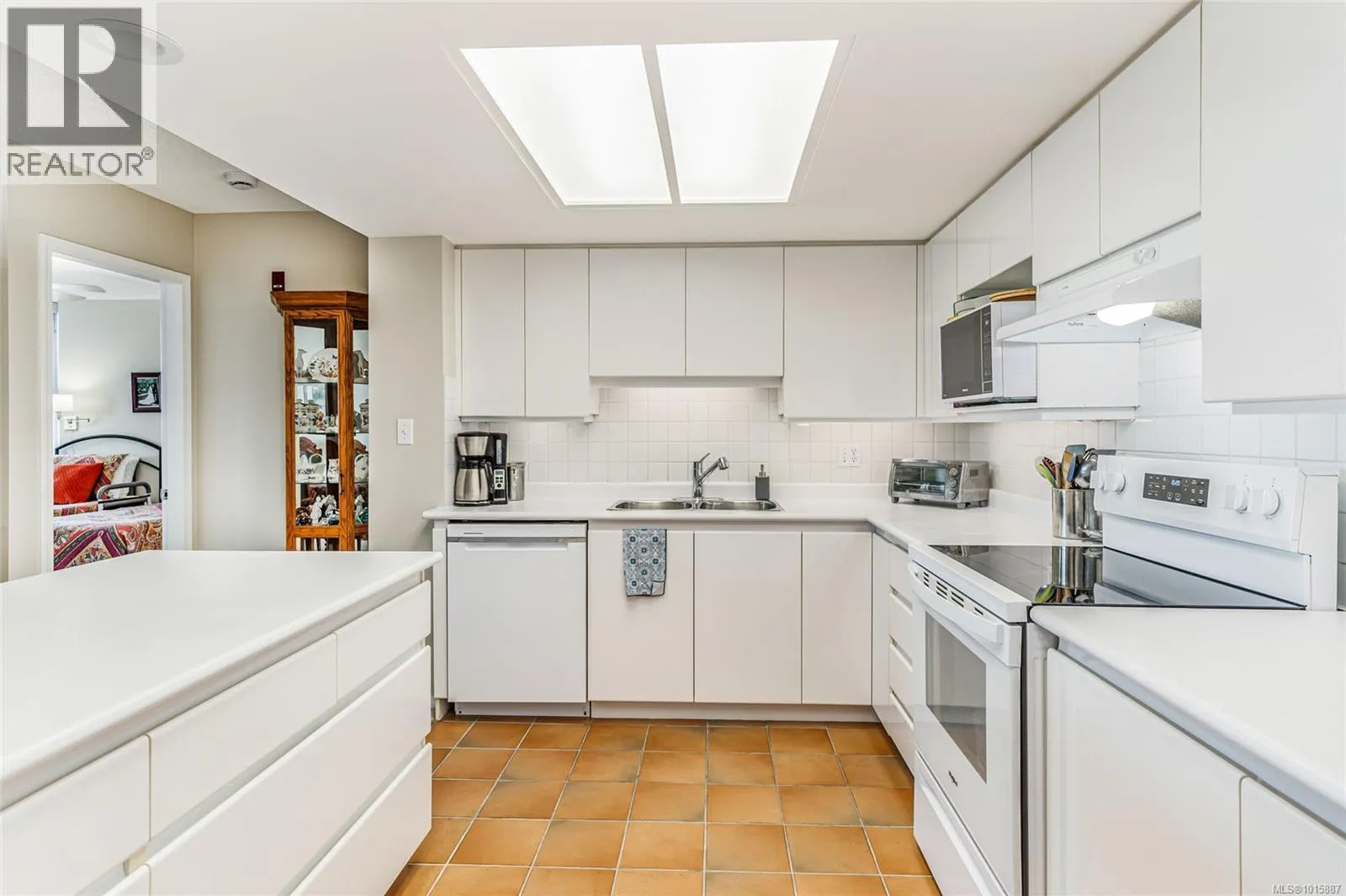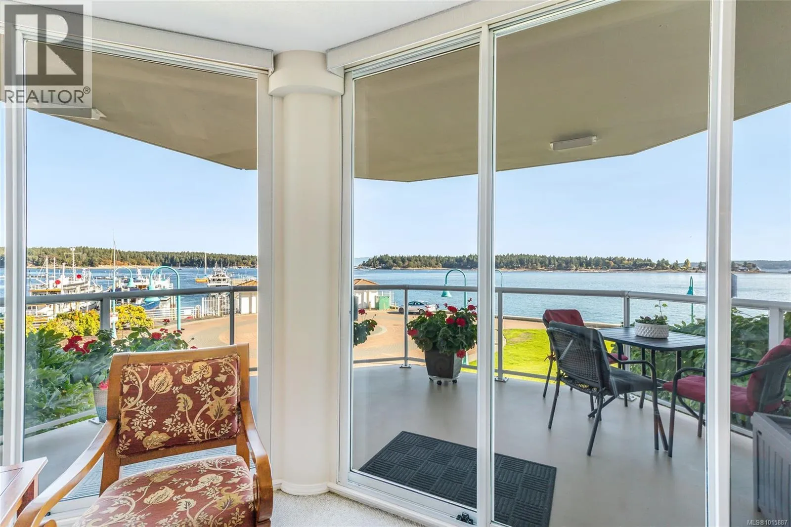 It's all about the View! The ultimate Waterfront location overlooking Nanaimo Harbour, Protection & Newcastle Islands can be yours. From the moment you step inside this bright & airy suite you can see the ocean. This spacious 2 bedroom & 2 bathroom unit is move-in ready & features many custom upgrades. The all white kitchen is open to the living & dining areas & all rooms enjoy the views. Appliances all new in 2025 including an electric flat top range, Whirlpool Fridge with bottom freezer & Whirlpool dishwasher. The living room features a new gas fireplace with a dramatic feature wall & tile face. Three new ceiling fans capture & circulate the ocean breeze & the windows & doors are screened & have new verticle blinds. The primary bedroom has a French door to the balcony with retractable screen,ensuite with new walk in shower, new tile floors & custom sink & vanity. The 3 pc main bath with hidden laundry & new Miele stacking washer/dryer. 2 underground parking spots. No Pets. (id:27476)
