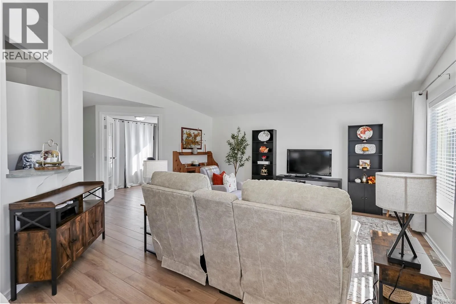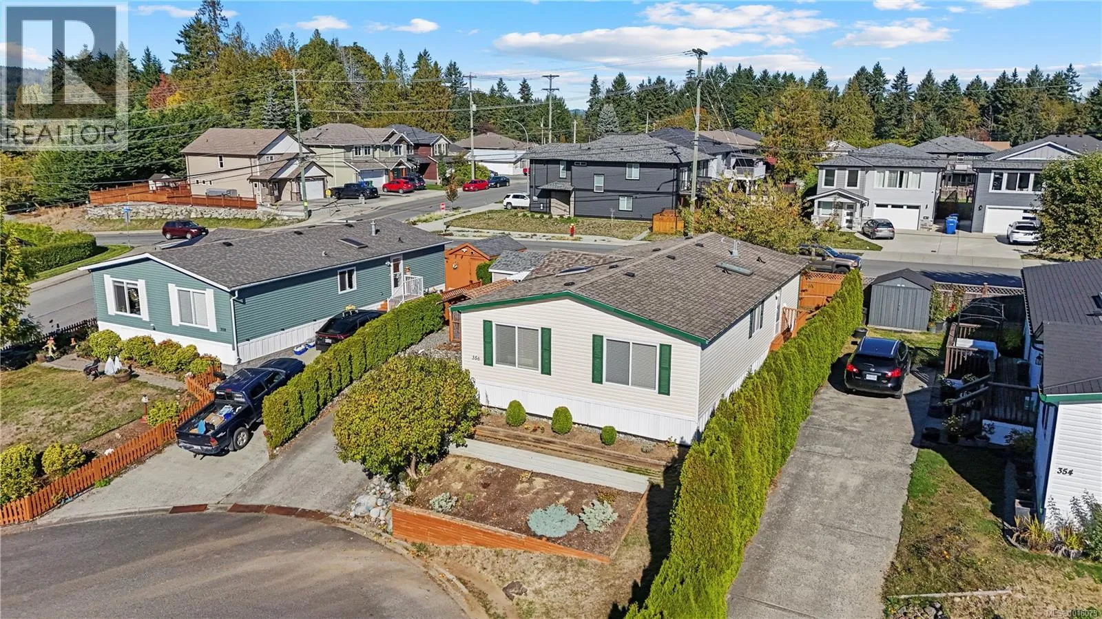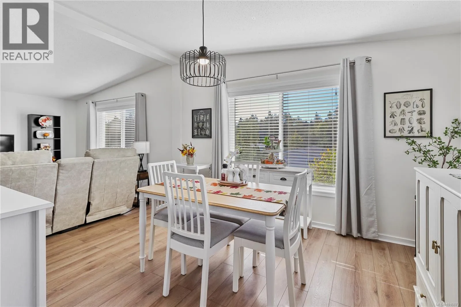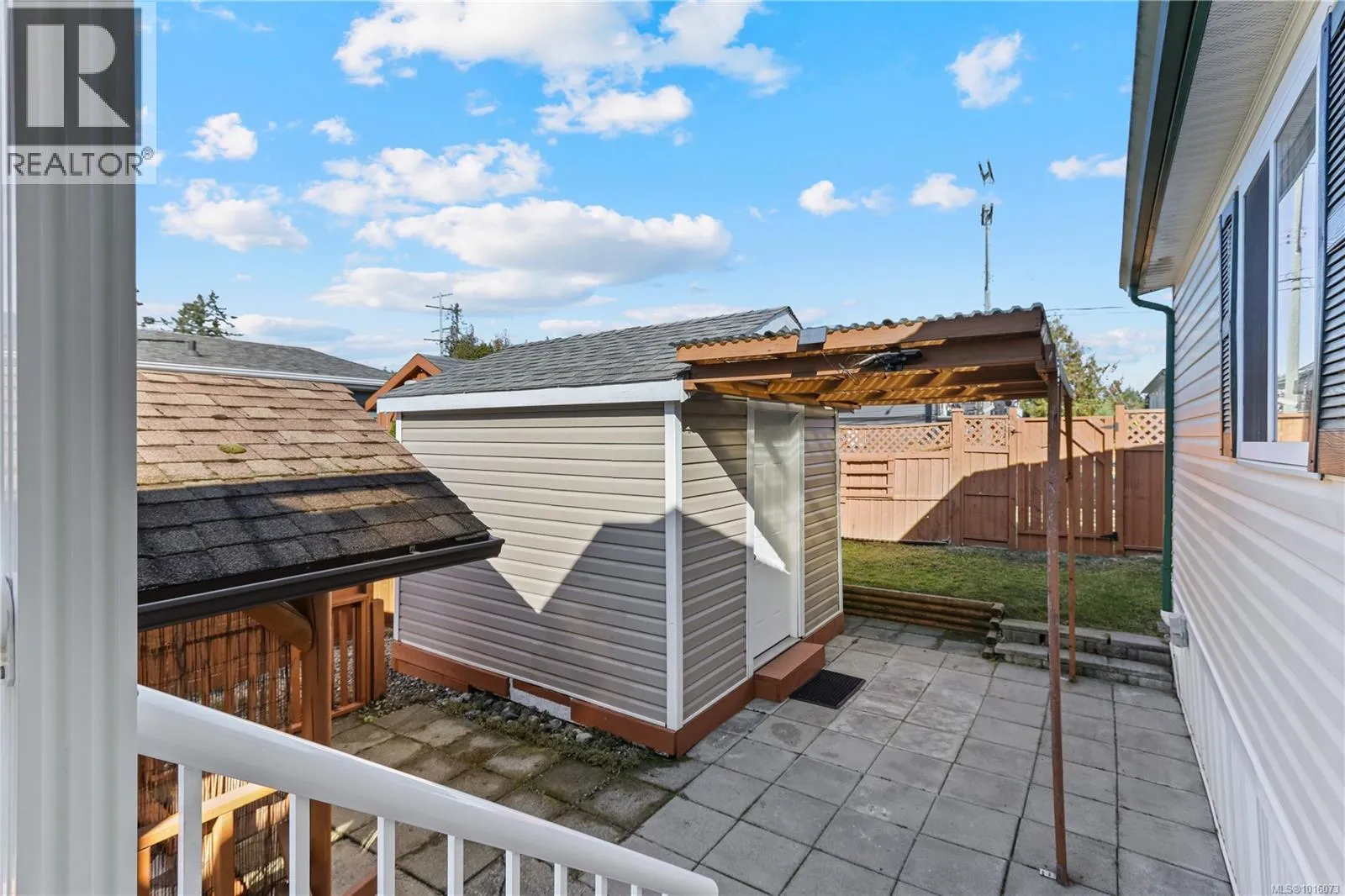 Bright, spacious, and impeccably maintained, this home sits high on its lot with beautiful south-facing views of forest and sky. The private setting features mature landscaping, a welcoming patio area, a cabana/tiki hut, workshop, and space for gardens. Inside, the home feels open and airy with a spacious living and dining area, large windows, and two skylights that fill the space with natural light. The kitchen showcases stylish white cabinetry, stainless steel appliancesâincluding a new dishwasherâand newer flooring that ties the space together beautifully. The primary bedroom includes a 4-piece ensuite, while the cozy guest room and den (with French doors) provide great flexibility. Recent updates add peace of mind, including a new furnace, washer and dryer, and CO2/smoke detector. Additional features include a heat pump for efficient heating and cooling. Located in Meadow Ridge Estates, a tidy and well-managed park, this home offers a peaceful setting just minutes from groceries and everyday amenities. A high fence with gate access opens to a grassy boulevardâperfect for dog walks or catching the nearby bus. Two small pets are welcome, and thereâs even a secure compound for RV or boat storage. This home has been beautifully maintained and stylishly updatedâcome see for yourself what makes it such a special find! (id:27476)