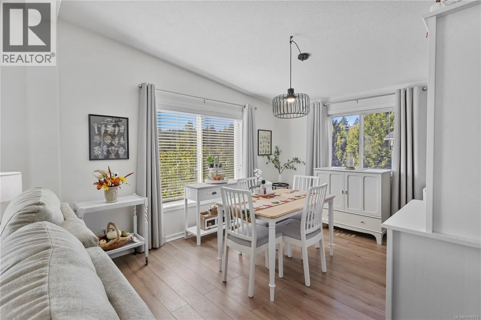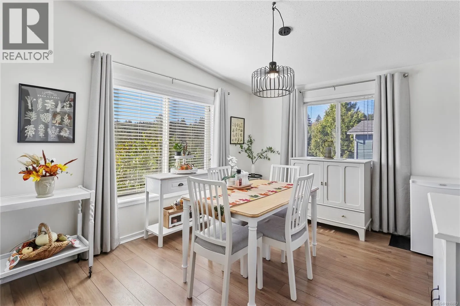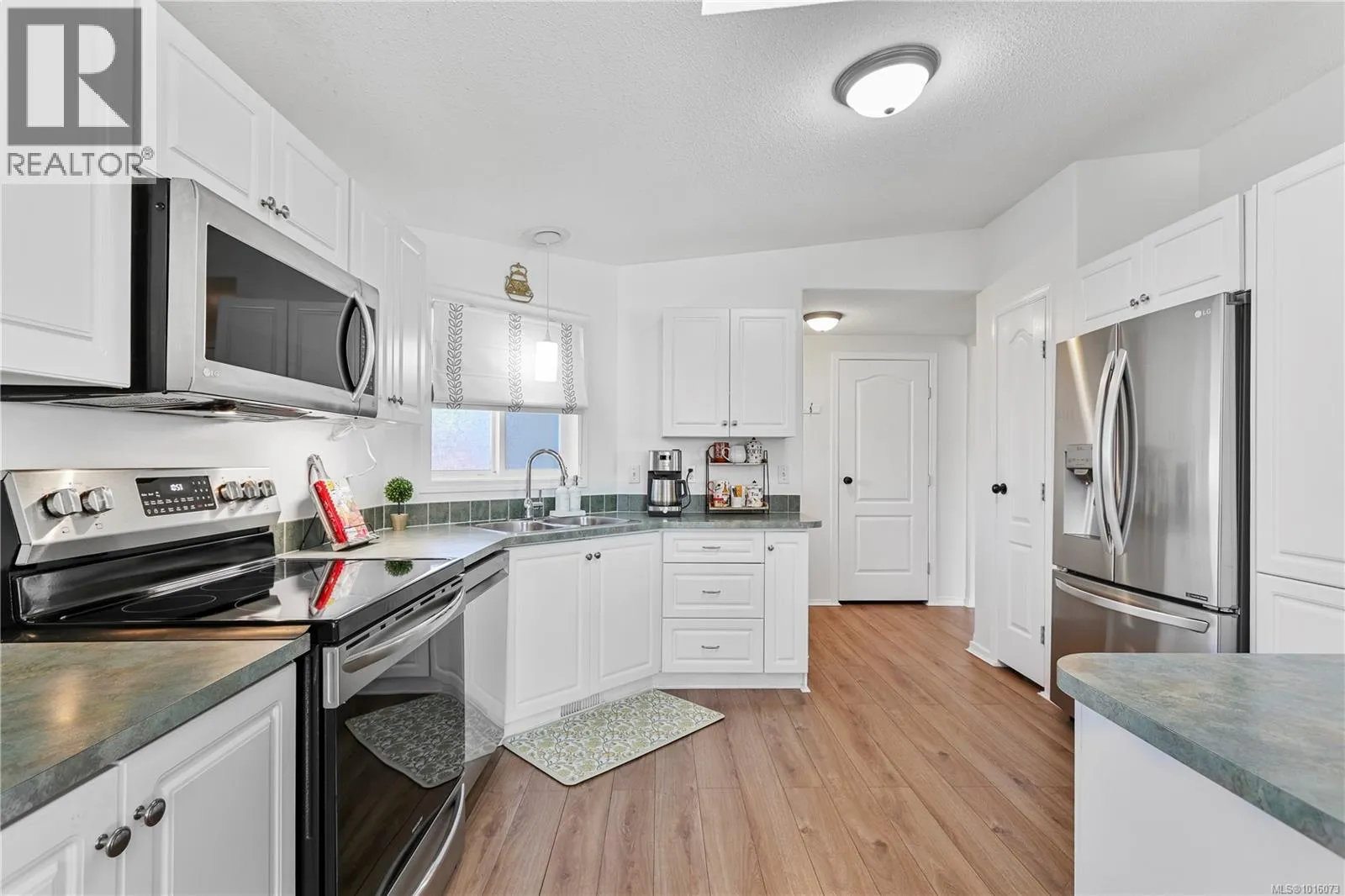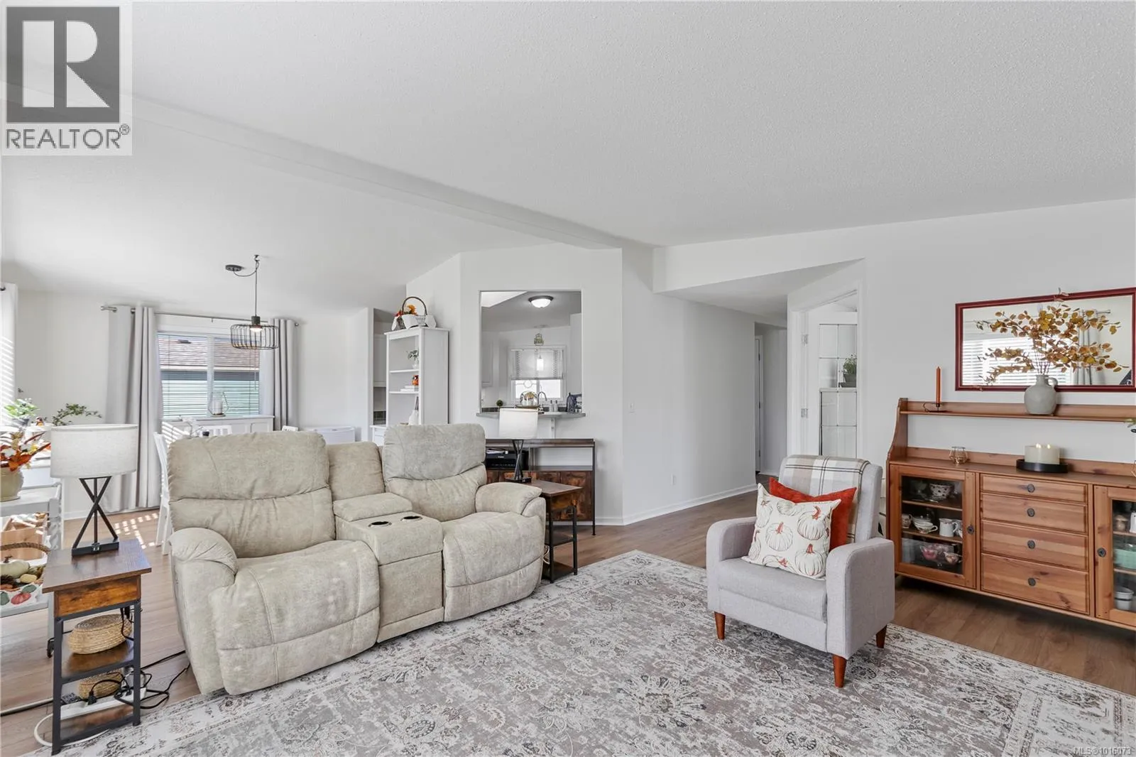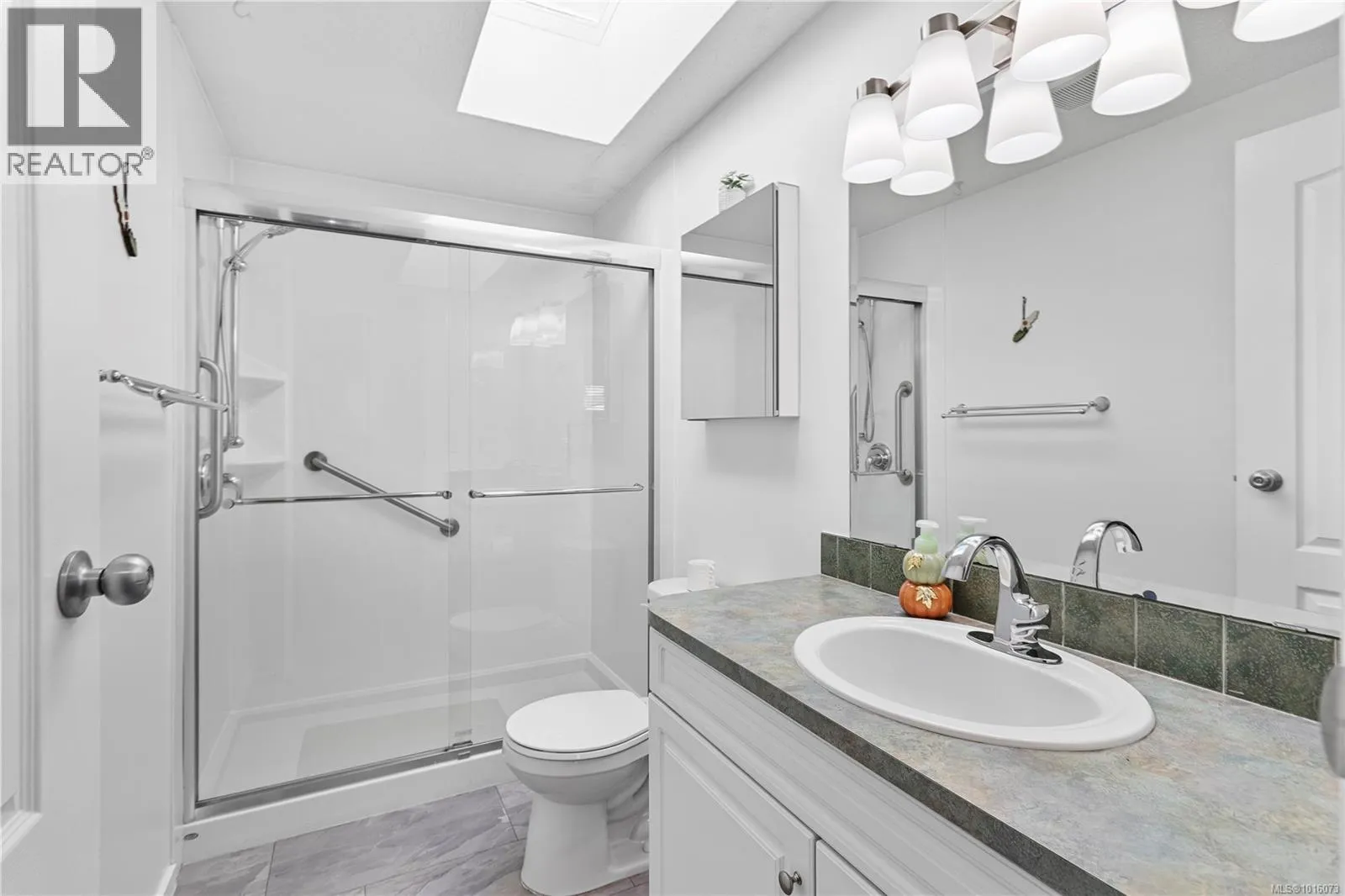 Bright, spacious, and impeccably maintained, this home sits high on its lot with beautiful south-facing views of forest and sky. The private setting features mature landscaping, a welcoming patio area, a cabana/tiki hut, workshop, and space for gardens. Inside, the home feels open and airy with a spacious living and dining area, large windows, and two skylights that fill the space with natural light. The kitchen showcases stylish white cabinetry, stainless steel appliancesâincluding a new dishwasherâand newer flooring that ties the space together beautifully. The primary bedroom includes a 4-piece ensuite, while the cozy guest room and den (with French doors) provide great flexibility. Recent updates add peace of mind, including a new furnace, washer and dryer, and CO2/smoke detector. Additional features include a heat pump for efficient heating and cooling. Located in Meadow Ridge Estates, a tidy and well-managed park, this home offers a peaceful setting just minutes from groceries and everyday amenities. A high fence with gate access opens to a grassy boulevardâperfect for dog walks or catching the nearby bus. Two small pets are welcome, and thereâs even a secure compound for RV or boat storage. This home has been beautifully maintained and stylishly updatedâcome see for yourself what makes it such a special find! (id:27476)
