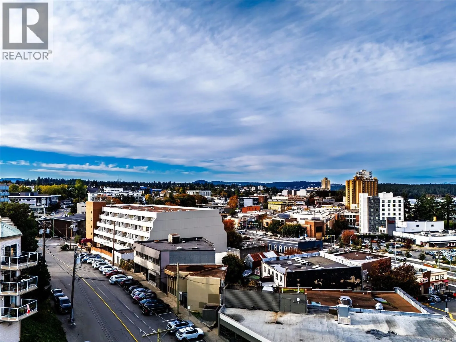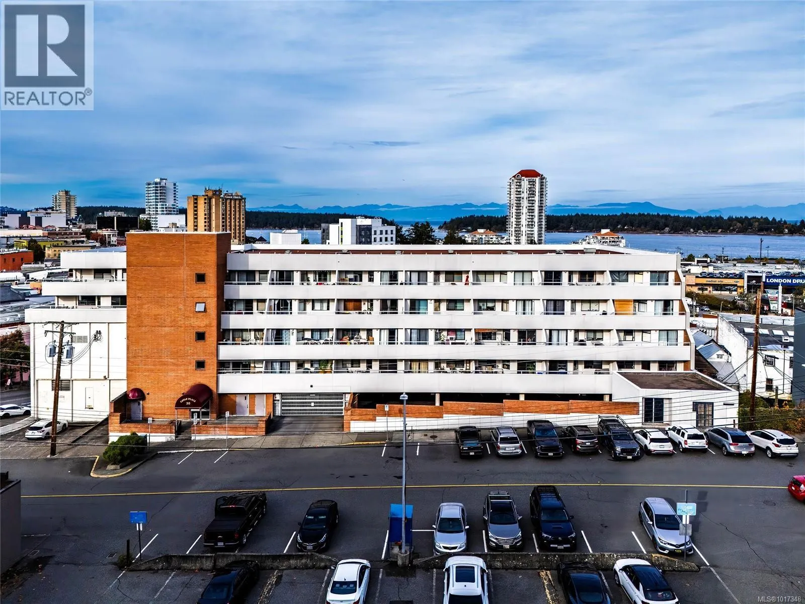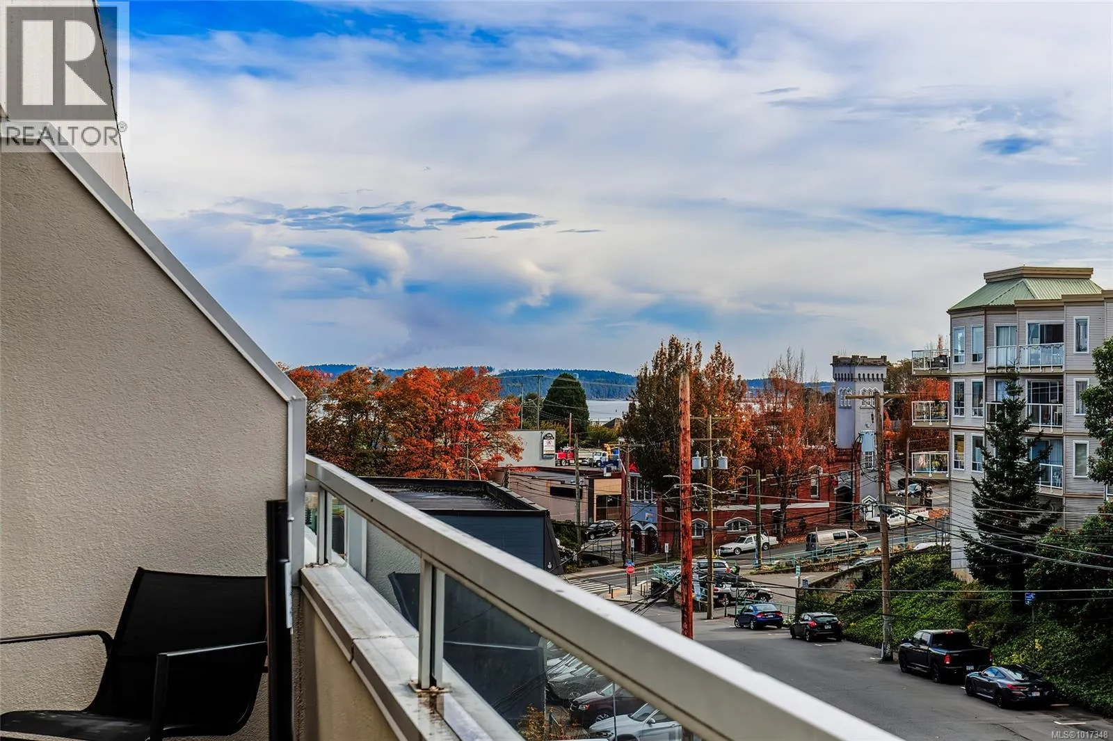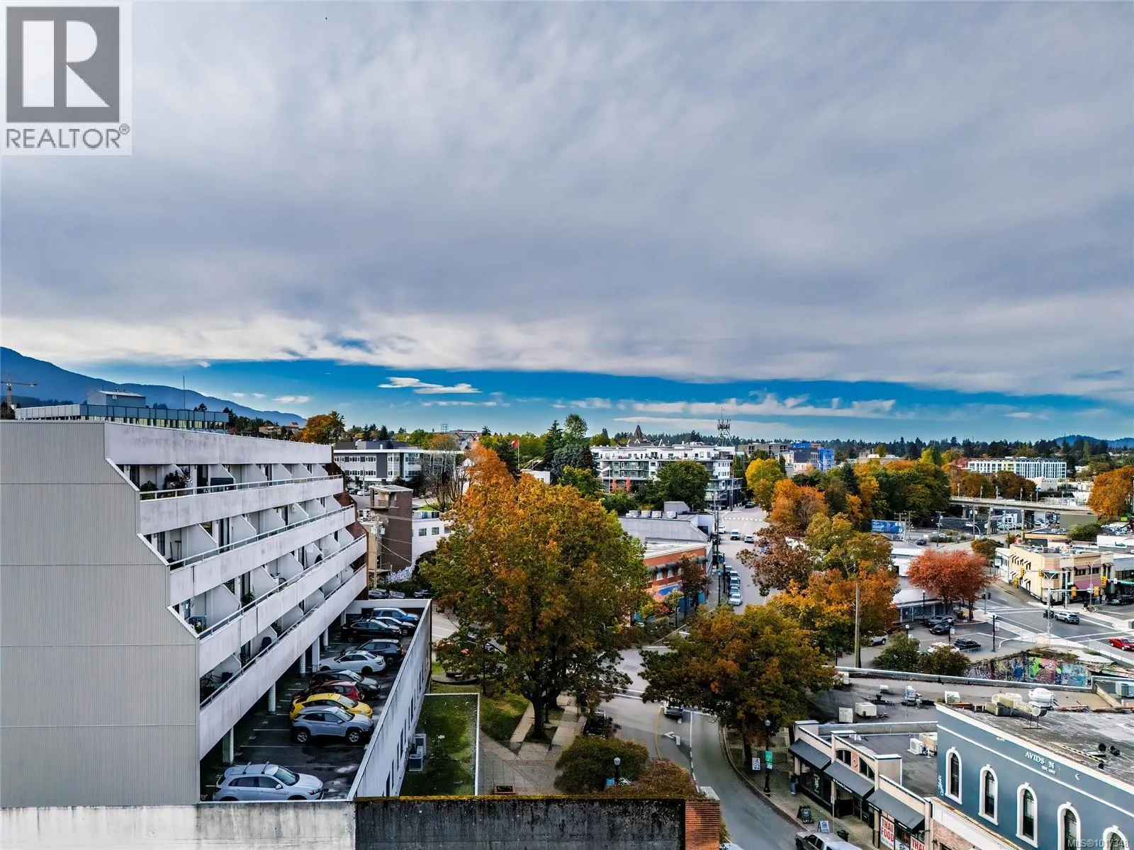 Downtown living with an affordable price tag, you donât want to miss this top floor unit. Located in a concrete building in the heart of the city centre, Cavan Place is perfect for buyers looking to embrace the best of urban living. Enjoy a morning walk on the seawall, an afternoon exploring the shops on Commercial Street, or an evening dining out at some of the Old City Quarterâs revered restaurants - all just steps from the building. With an open concept layout leading out to a generously sized balcony, this suite takes advantage of Mt. Benson views, lovely southern exposure & peek a boo ocean views from the deck. 2 bedrooms (or 1 + den) make this unit suitable for a wide variety of buyers. In suite laundry & secured parking (subject to availability) are also highlights. Please note, no pets are permitted. All meas approx pls verify. (id:27476)