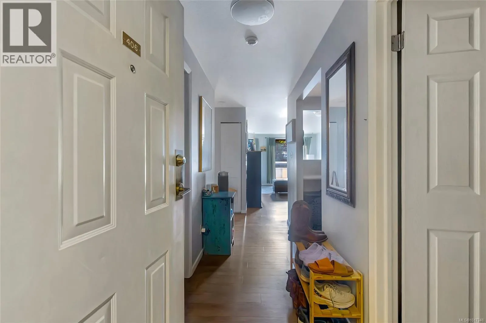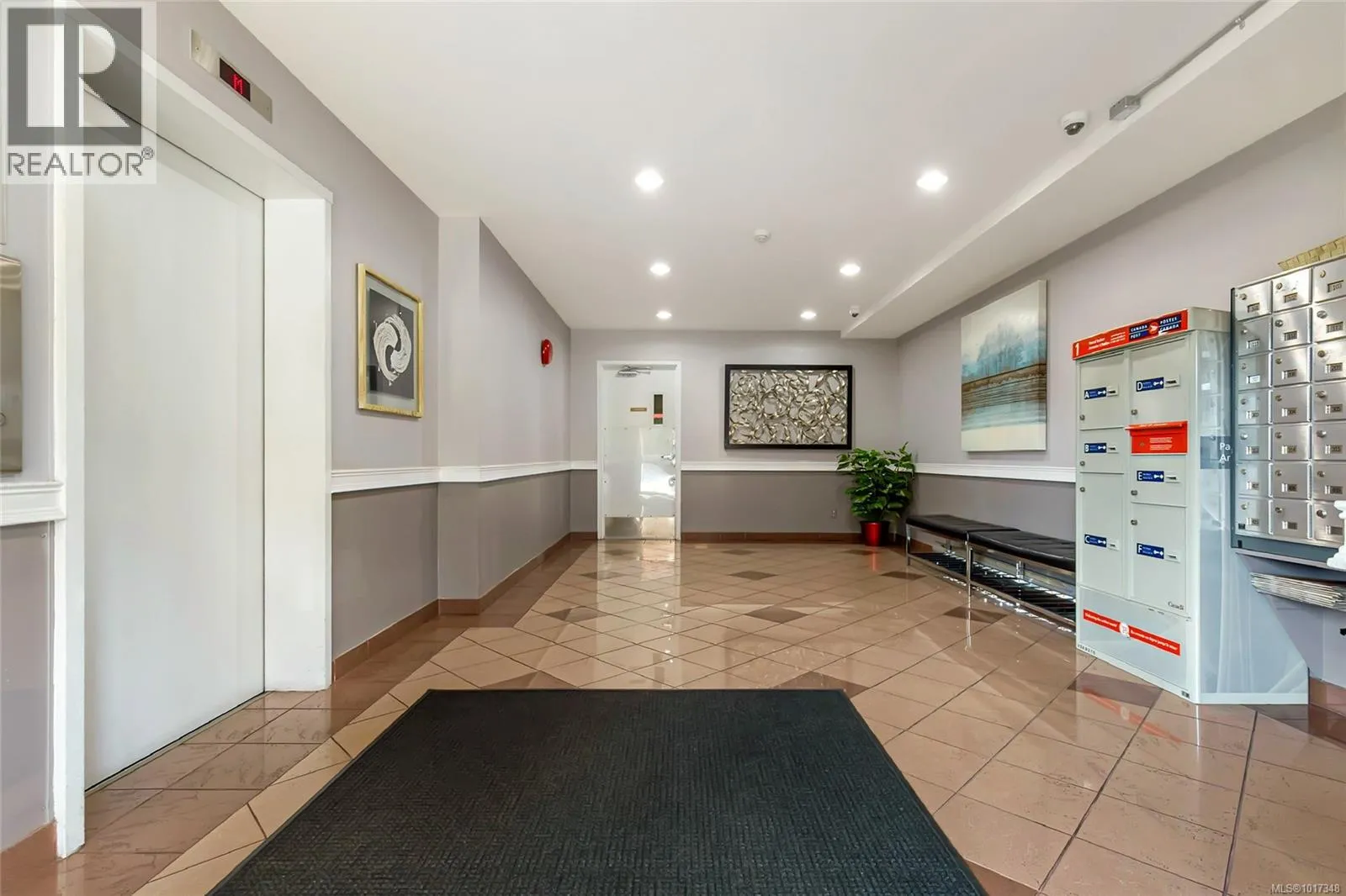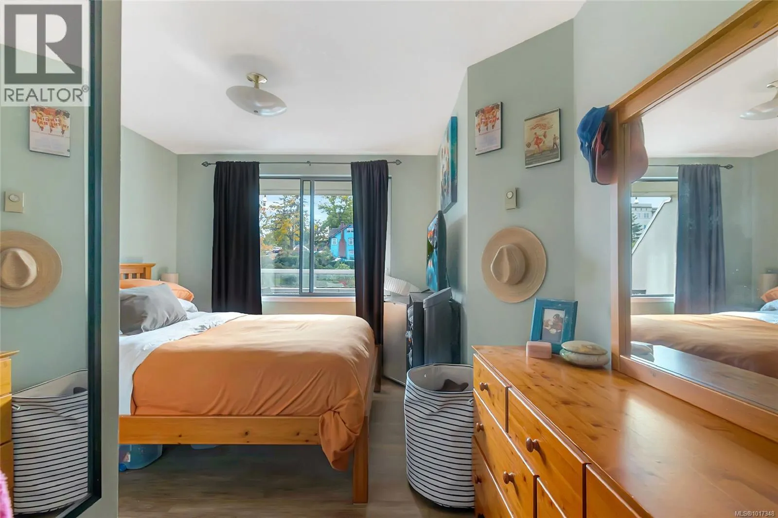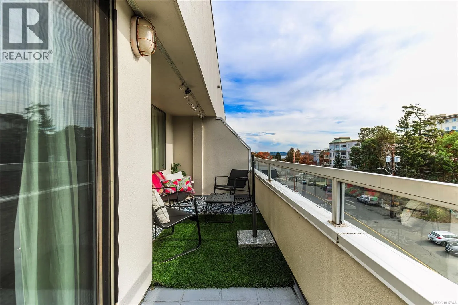 Downtown living with an affordable price tag, you donât want to miss this top floor unit. Located in a concrete building in the heart of the city centre, Cavan Place is perfect for buyers looking to embrace the best of urban living. Enjoy a morning walk on the seawall, an afternoon exploring the shops on Commercial Street, or an evening dining out at some of the Old City Quarterâs revered restaurants - all just steps from the building. With an open concept layout leading out to a generously sized balcony, this suite takes advantage of Mt. Benson views, lovely southern exposure & peek a boo ocean views from the deck. 2 bedrooms (or 1 + den) make this unit suitable for a wide variety of buyers. In suite laundry & secured parking (subject to availability) are also highlights. Please note, no pets are permitted. All meas approx pls verify. (id:27476)