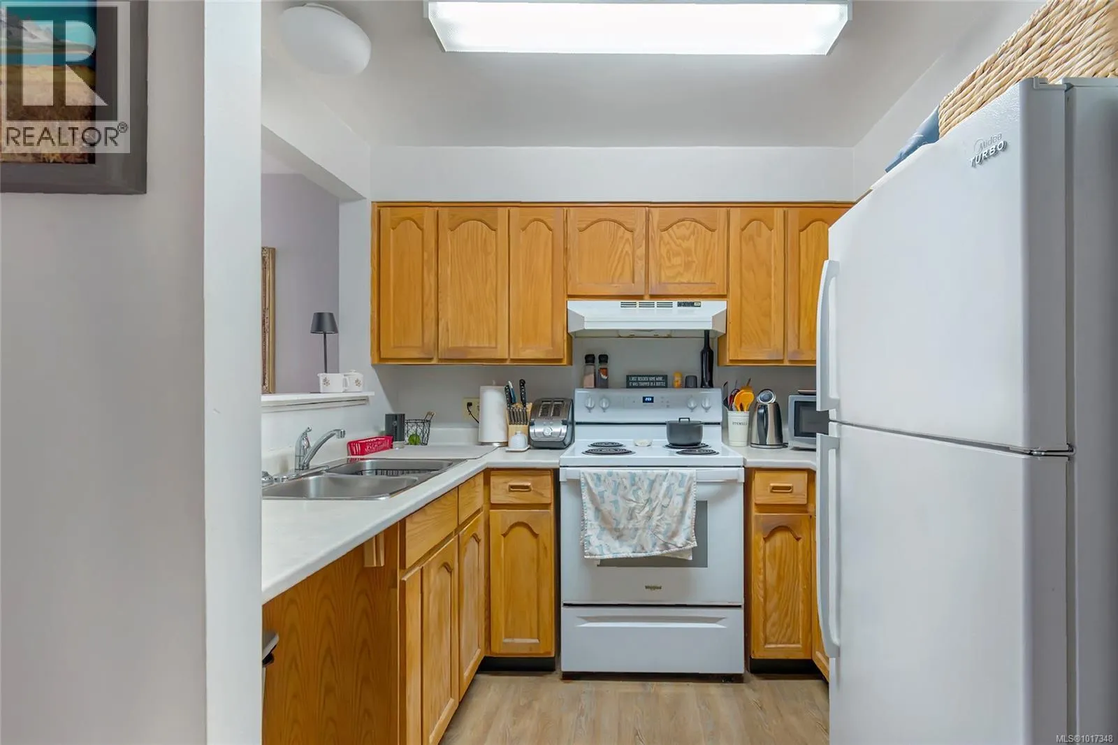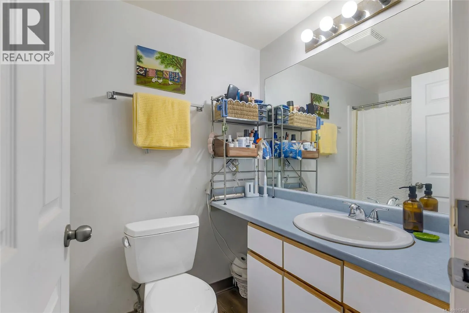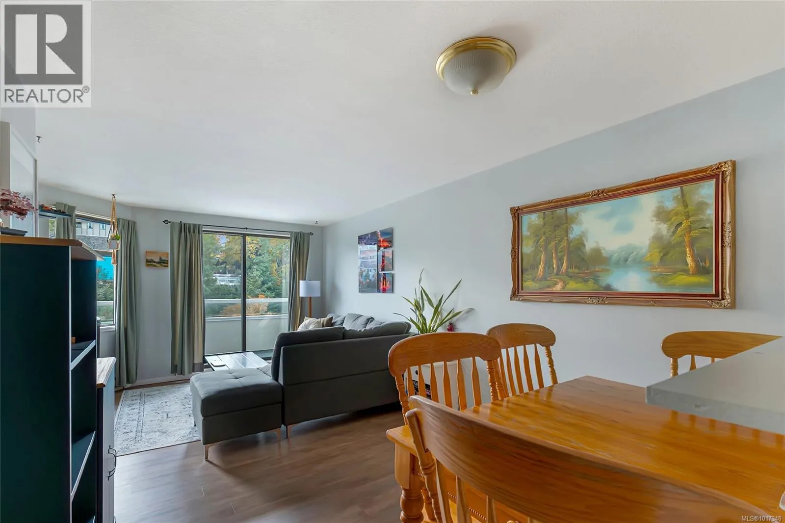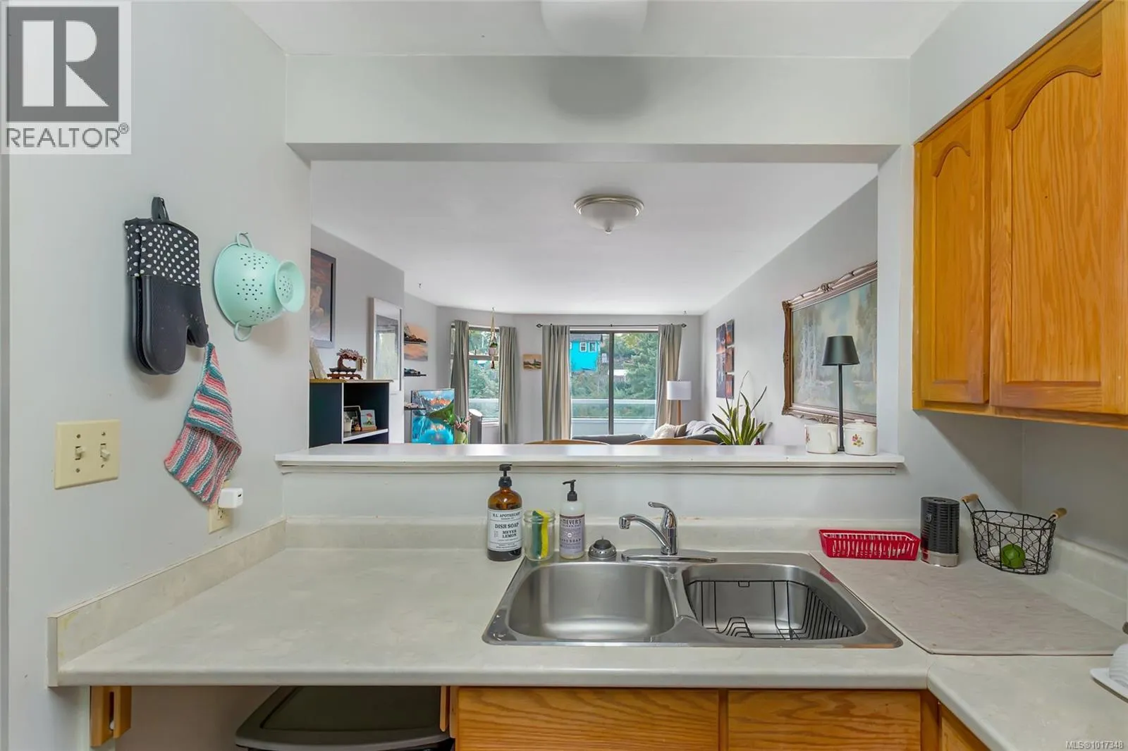 Downtown living with an affordable price tag, you donât want to miss this top floor unit. Located in a concrete building in the heart of the city centre, Cavan Place is perfect for buyers looking to embrace the best of urban living. Enjoy a morning walk on the seawall, an afternoon exploring the shops on Commercial Street, or an evening dining out at some of the Old City Quarterâs revered restaurants - all just steps from the building. With an open concept layout leading out to a generously sized balcony, this suite takes advantage of Mt. Benson views, lovely southern exposure & peek a boo ocean views from the deck. 2 bedrooms (or 1 + den) make this unit suitable for a wide variety of buyers. In suite laundry & secured parking (subject to availability) are also highlights. Please note, no pets are permitted. All meas approx pls verify. (id:27476)
