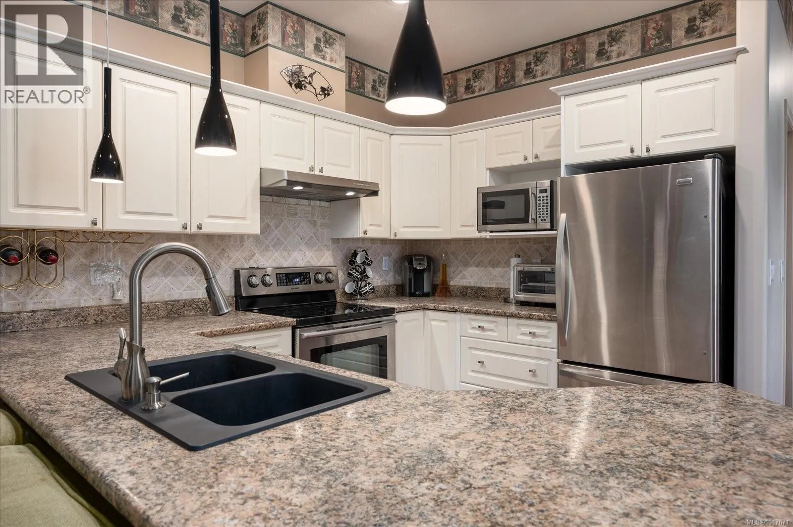 Perhaps the best home in the entire complex, I present to you 130 Ocean Walk Drive! Located at the far back of the complex looking onto the green fields, you have more yard and patio space here than probably any other unit. Aside from all the quiet and privacy, the layout of this offering is terrific with plenty of entertaining room, an open concept kitchen and huge comfortable spaces throughout. There is a two car garage, 2 full bathrooms, 2 bedrooms and even 2 living rooms! Enjoy your cozy gas fireplace in the winter, step out of your sliding glass doors onto your lawn in the summer and enjoy all that this much loved location offers! Did I mention that there is an easy access attic for all your storage? A very well run strata, there is an active social calendar at the clubhouse and you are only a short walk to the best amenities of the north end. One of Nanaimo's finest patio home communities, all you'll need to do is put your own stamp on the walls and enjoy the good life! (id:27476)