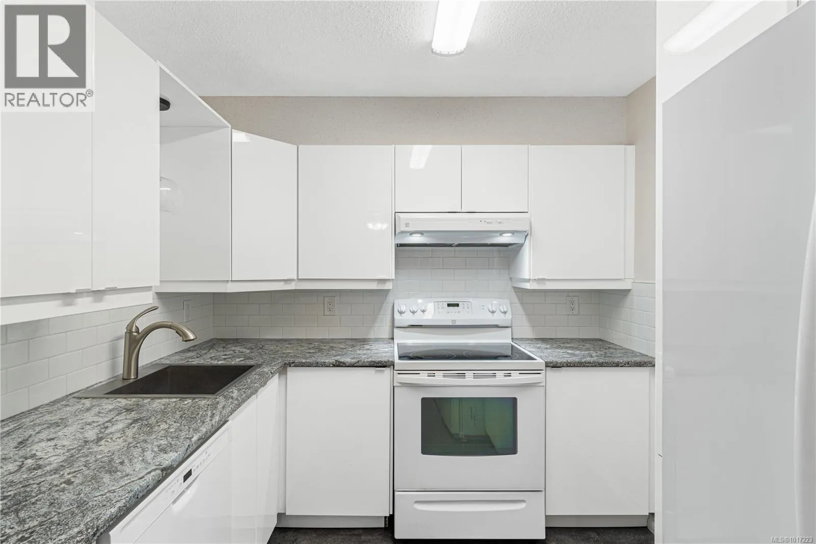 Welcome to 307â6715 Dover Road! This beautifully maintained 2-bedroom, 2-bathroom condominium offers just over 900 sq ft of comfortable modern living inside, plus a 65 sq.ft Balcony in a desirable North Nanaimo location. Step inside to find a bright, open layout featuring updated flooring in the front entrance, dining area, and kitchen. The kitchen has been tastefully refreshed in 2016 with modern cupboards, stylish backsplash, and updated appliancesâperfect for everyday living and entertaining alike. Enjoy the convenience of in-suite laundry that includes a Hot Water Tank that was installed in October, 2020. A well-managed building just steps from parks, shopping, and the waterfront. Whether youâre a first-time buyer, downsizing, or investor, this condo offers excellent value and move-in-ready appeal. (id:27476)