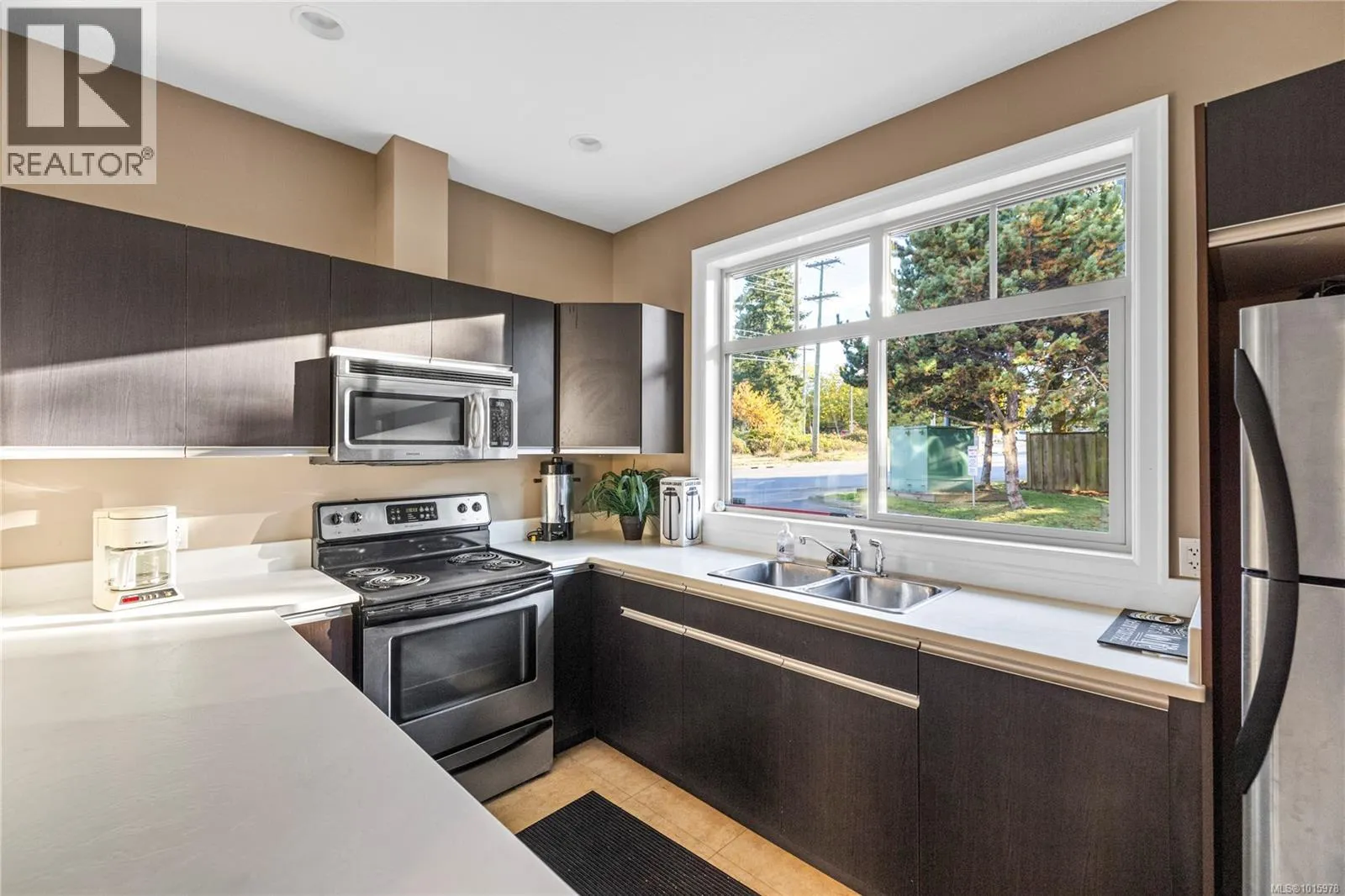 This bright & spacious corner unit offers 851 sq ft of well-designed living space with 9-foot ceilings & large windows that fill the home with natural light. The southwest exposure captures glimpses of Mount Benson & provides a covered deck perfect for year-round enjoyment. Inside, youâll find 1 large bedroom with double closets & ensuite access, plus a versatile nook ideal for an office, den, extra storage, or a cozy media space. Freshly painted & move-in ready, this home is part of a well-managed strata built in 2012 with a healthy contingency fund. Rentals & pets are permitted & there are no age restrictions â making this a fantastic opportunity for first-time buyers, downsizers, or investors. Ideally located along the Bowen Road corridor, this modern complex offers unbeatable convenience with schools, recreation & every shopping amenity just steps away. Beautifully maintained grounds feature a childrenâs playground, while residents enjoy exclusive access to an impressive multi-purpose clubhouse complete with fitness equipment, billiards, a cozy lounge & a large recreation area with kitchen â a rare lifestyle perk in condo living. (id:27476)