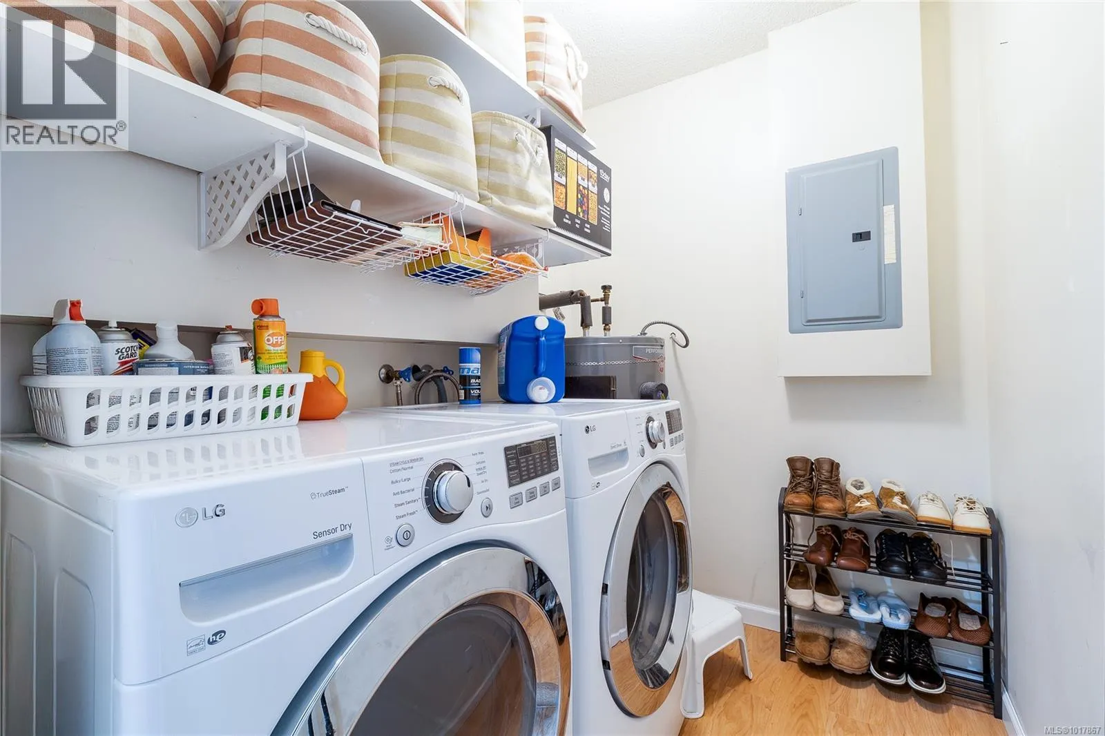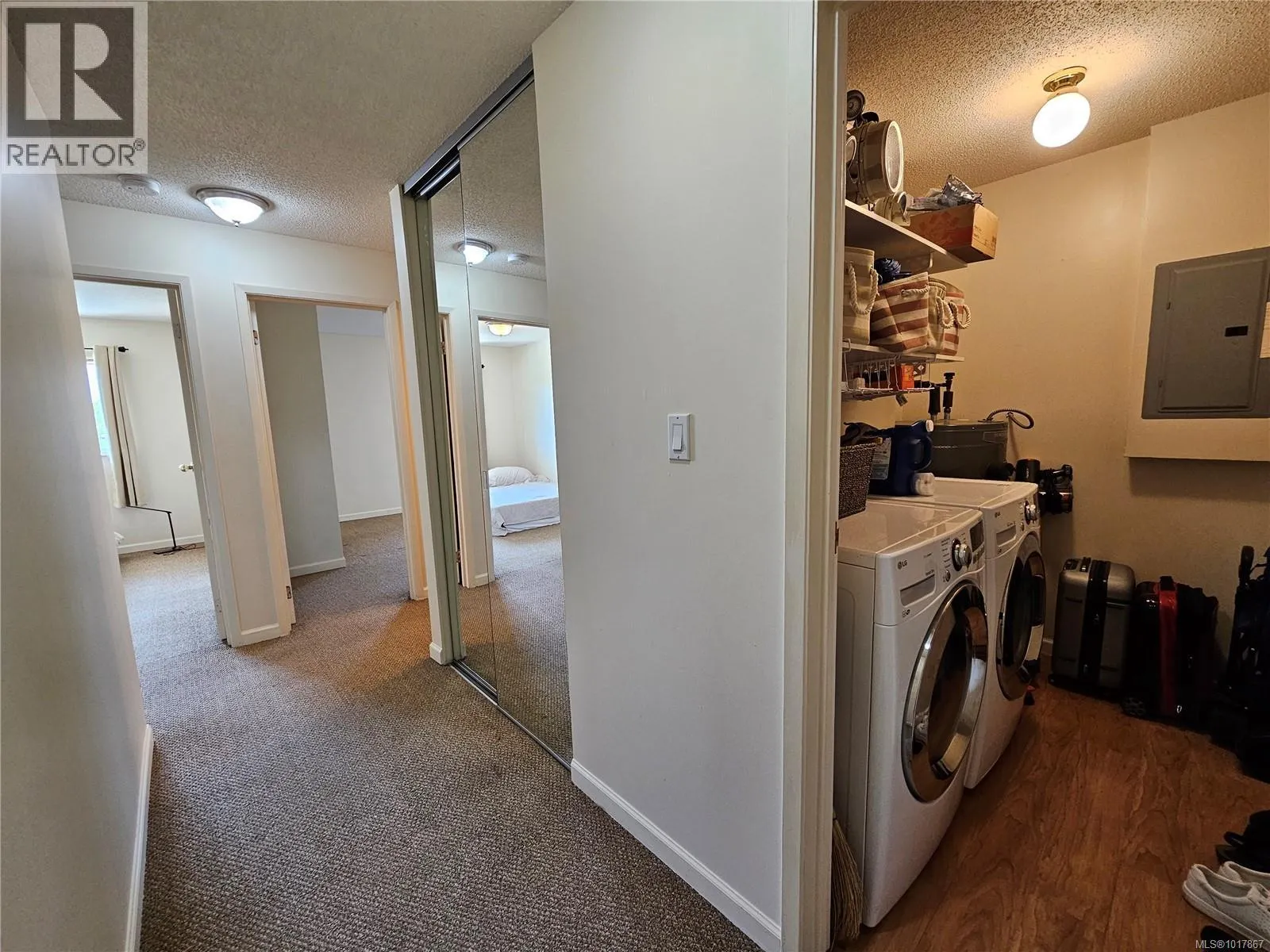 Dover House. Desirable North Nanaimo neighborhood. Top-floor, south-facing 2-bed condo. A blend of comfort & convenience. Generous sized unit 900sqft, thoughtful updates throughout: Kitchen features new appliances & an open layout, enhanced by the removal of a wall to create a bright, flowing floor plan. New windows & sliding doors added this Summer 2025. Bathroom has modern updates. A spacious primary bedroom & in-suite laundry add to the home's appeal. Stunning views of Mnt Benson & Lantzville foothills from every window, abundant natural light throughout. Spacious covered deck is perfect for watching sunsets, BBQ's & growing a small garden. Plant lovers will enjoy thriving indoor & outdoor plants. Separate storage access down the hall, same floor. Ideal for first-time buyers, investors, or downsizers. Walk to: Cabelaâs, Homesense, Costco, Dollar store, Restaurants, coffee shops... Enjoy nearby recreation- tennis courts, Pioneer Park, scenic trails & beach access to enjoy the ocean. (id:27476)
