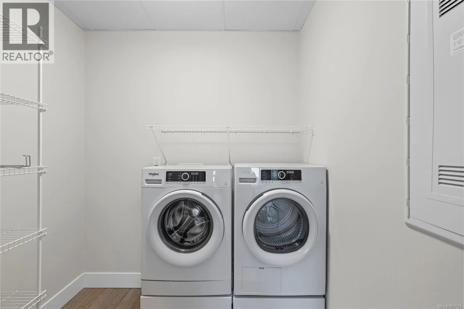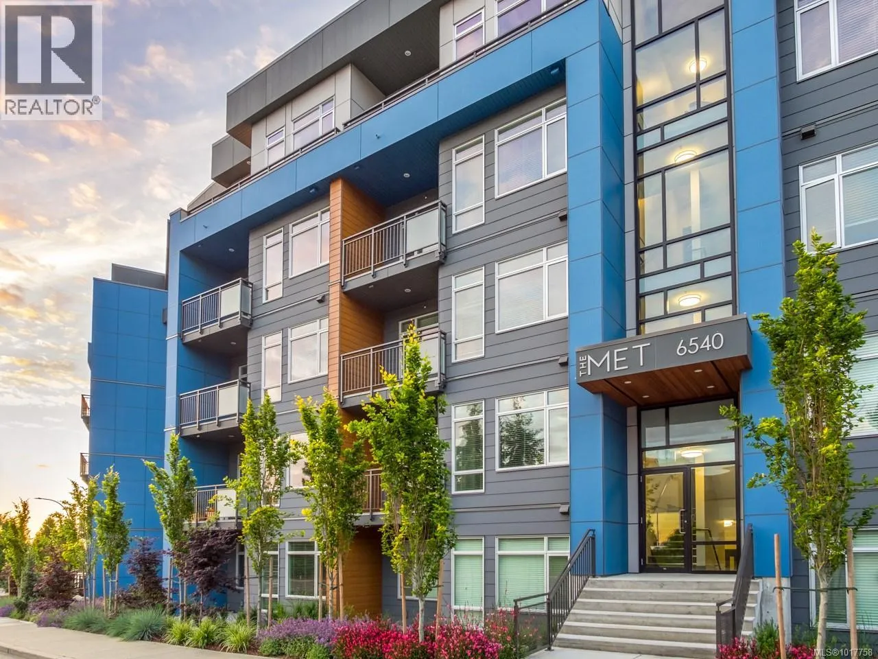 Welcome to this immaculate penthouse at The Metâa 2 bedroom, 2 bathroom top-floor unit offering stunning ocean views and soaring 10 foot ceilings. This bright, open-concept home features floor-to-ceiling windows and a smart, functional layout. Located in one of Nanaimoâs most walkable areas, you're just a short stroll to over 200 amenities, including gyms, pet care, restaurants, grocery stores, a boutique butcher, bakery, and Woodgrove Mall. Includes underground parking and storage. Experience stylish, low-maintenance living with a West Coast vibe. Data and measurements approximate, to be verified if deemed important. (id:27476)