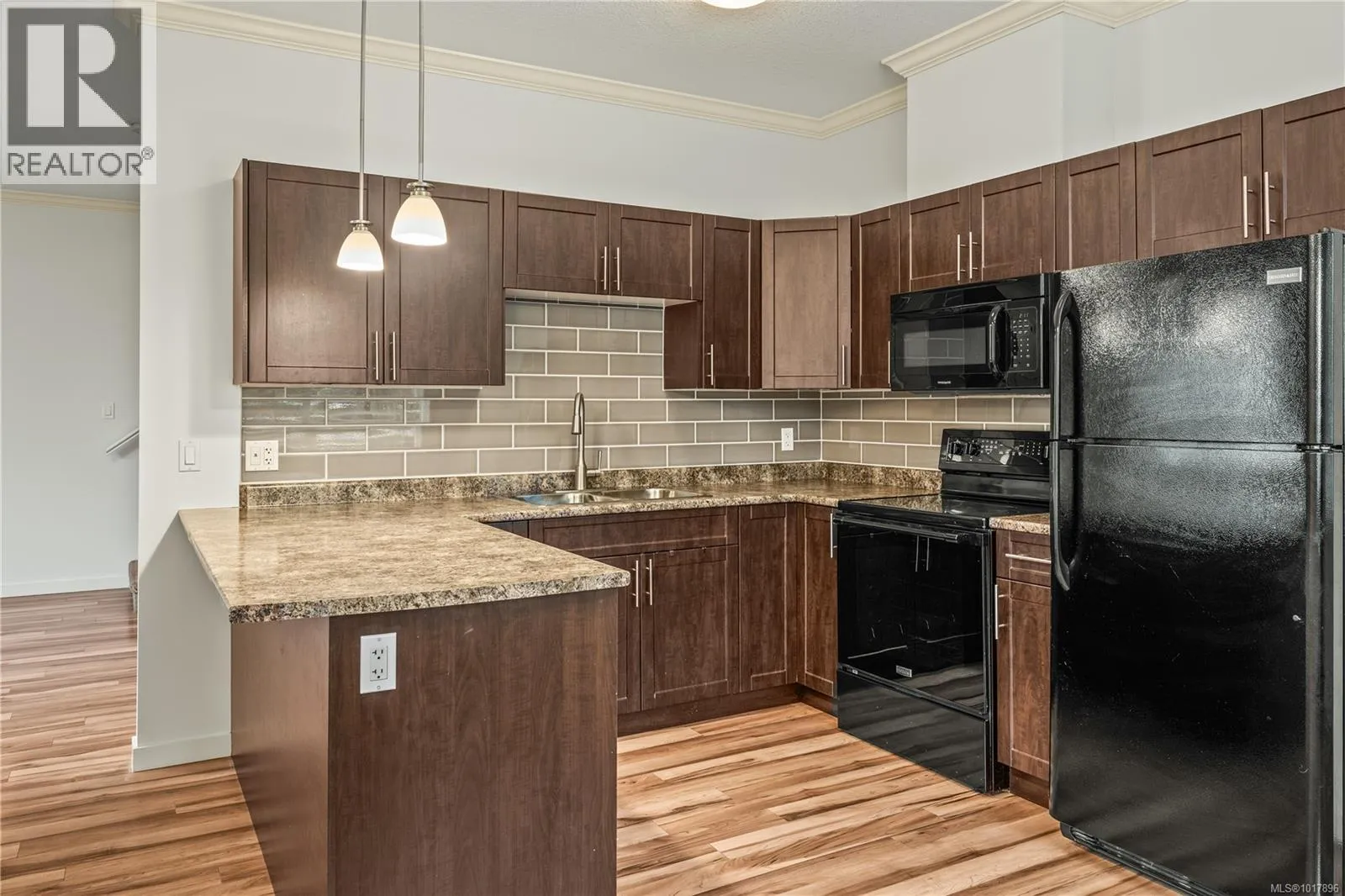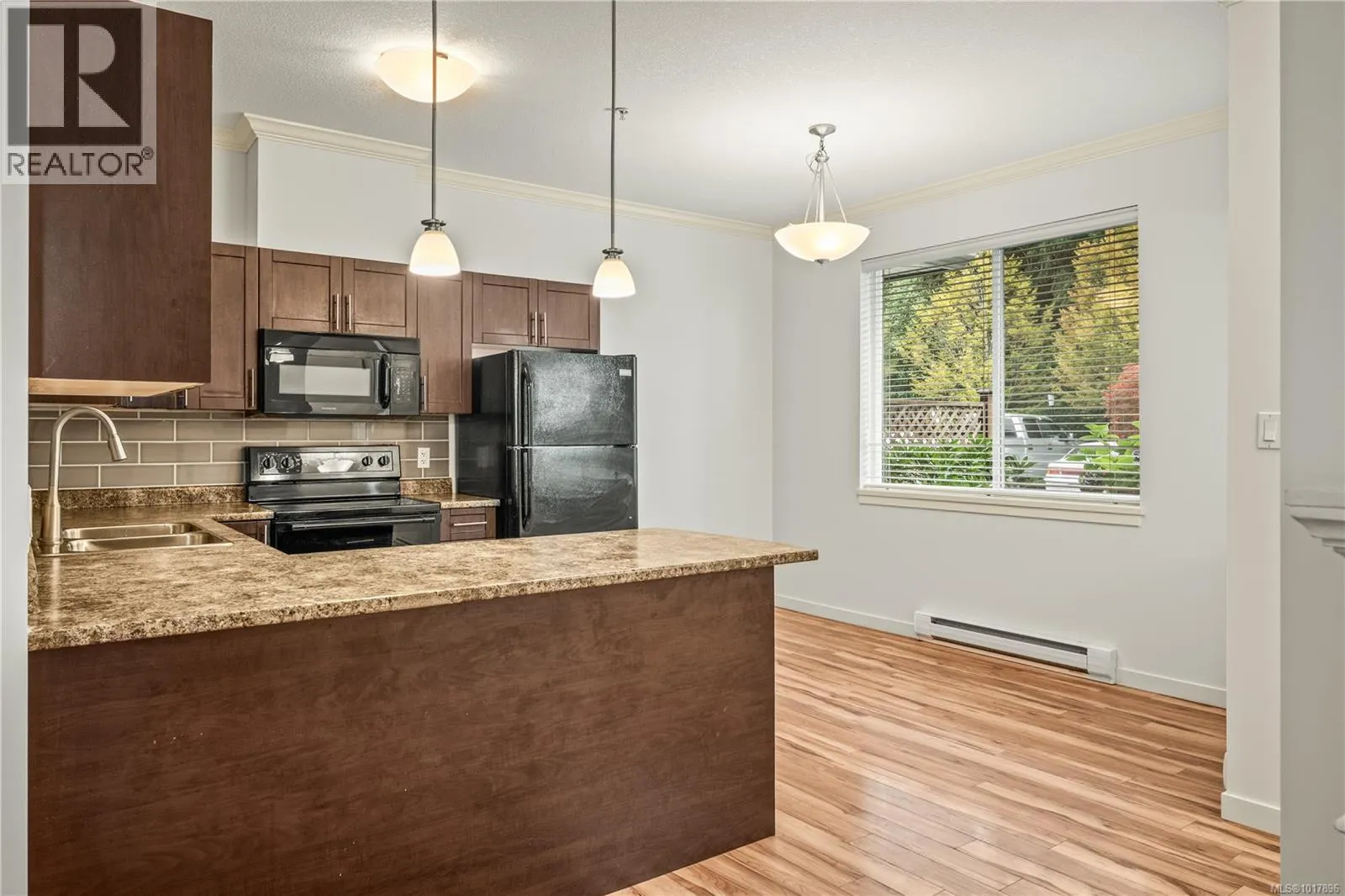 Welcome to Blackcomb Ridge â a quiet, well-kept community in Nanaimoâs desirable Diver Lake area. Freshly painted and move-in ready, this beautifully maintained 1,094 sq.ft. townhome offers the comfort of a single-family home with the ease of strata living. The main level features an open, light-filled layout with high ceilings, durable laminate floors, and a modern kitchen with espresso cabinetry, tile backsplash, and bar seating â perfect for casual dining or entertaining. Upstairs are three spacious bedrooms, a laundry area, and a serene primary suite with a walk-in closet, ensuite, and views of surrounding greenery. Pet-friendly (two allowed, no size restriction) and ideally located near schools, shopping, trails, and Beban Park, this inviting home delivers space, comfort, and convenience in one of Nanaimoâs most sought-after neighbourhoods. (id:27476)