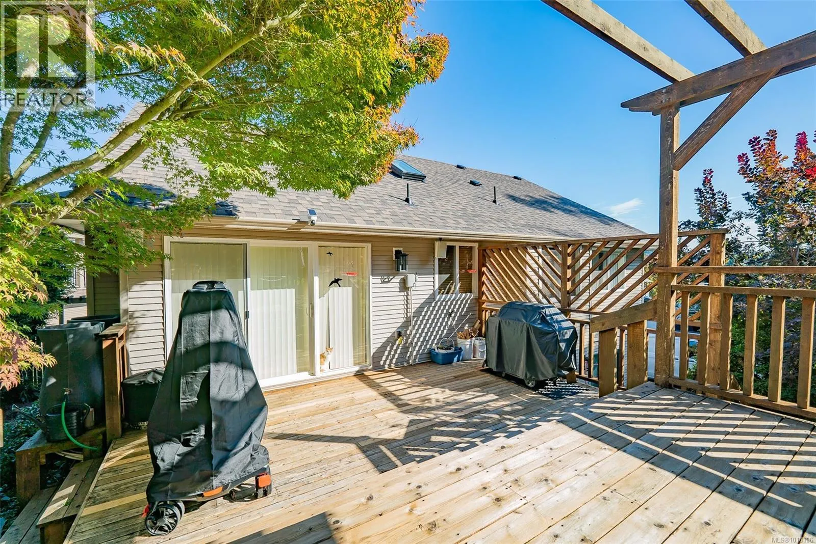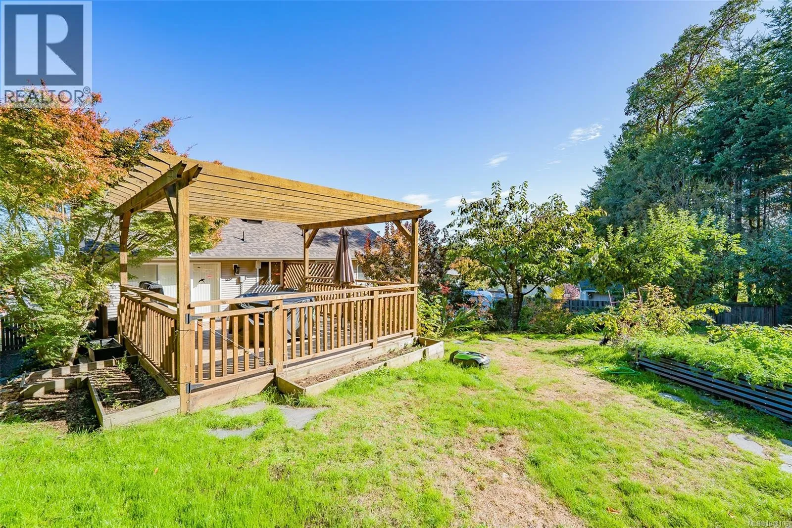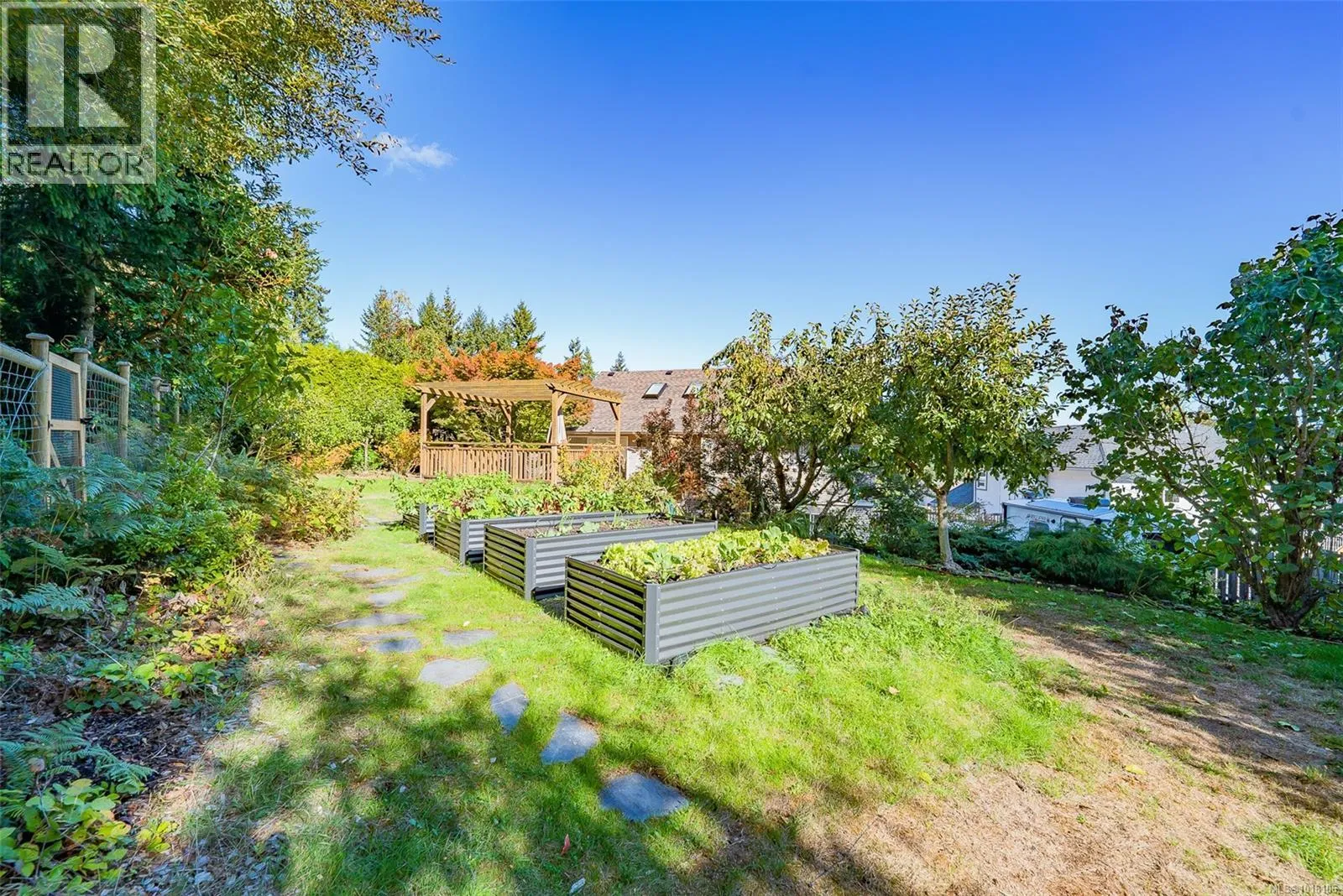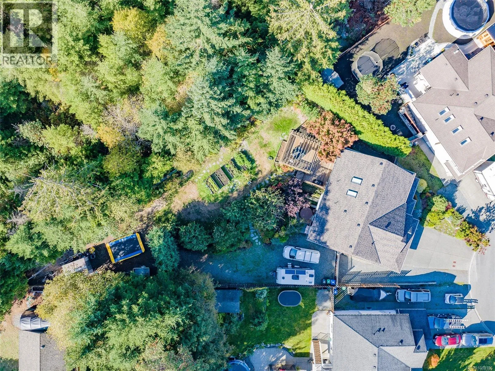 This 4-bedroom home is set back on a large lot, with the main-level living area walking out directly to a custom deck and into the garden area with raised beds and assorted fruit trees. Where can you find a family home backing onto bike and walking trails? Or add RV or boat parking to the list. The backyard is fully fenced, and a gate leads into the network of trails, the kids will also love the built-in Trampoline! The owner chose Canadian Red Oak for flooring throughout the kitchen and living space. This area is open and bright with high vaulted ceilings, as is the master bedroom. A split heat pump provided efficient heating and cooling throughout the home in the summer. The upstairs includes 3 bedrooms, including the primary with a walk-in closet and an ensuite bathroom with heated tile floors. The whole home is wired with speakers for a centralized sound system. Downstairs, another bedroom and a huge living space, used as a theatre and music room. This area is so big that it could easily be used as a suite with plumbing already installed in the necessary locations. The owners have owned the home since new, and their pride and high maintenance are evidentâfrom their newly installed roof and heat pump to the meticulous landscaping, EV plug in the garage, they even have a rainwater collection system. If you are looking for a very well-kept family home in a sought-after area, this is it! (id:27476)