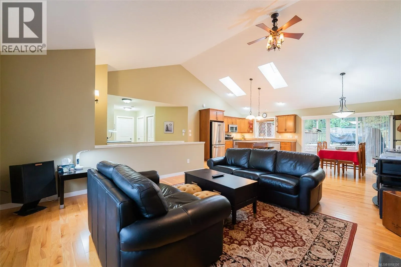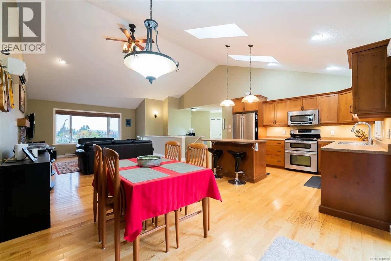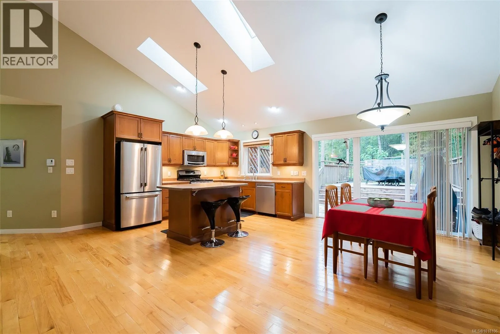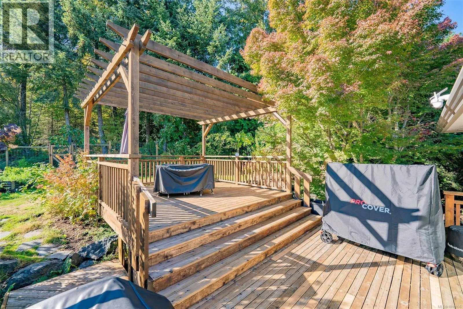 This 4-bedroom home is set back on a large lot, with the main-level living area walking out directly to a custom deck and into the garden area with raised beds and assorted fruit trees. Where can you find a family home backing onto bike and walking trails? Or add RV or boat parking to the list. The backyard is fully fenced, and a gate leads into the network of trails, the kids will also love the built-in Trampoline! The owner chose Canadian Red Oak for flooring throughout the kitchen and living space. This area is open and bright with high vaulted ceilings, as is the master bedroom. A split heat pump provided efficient heating and cooling throughout the home in the summer. The upstairs includes 3 bedrooms, including the primary with a walk-in closet and an ensuite bathroom with heated tile floors. The whole home is wired with speakers for a centralized sound system. Downstairs, another bedroom and a huge living space, used as a theatre and music room. This area is so big that it could easily be used as a suite with plumbing already installed in the necessary locations. The owners have owned the home since new, and their pride and high maintenance are evidentâfrom their newly installed roof and heat pump to the meticulous landscaping, EV plug in the garage, they even have a rainwater collection system. If you are looking for a very well-kept family home in a sought-after area, this is it! (id:27476)