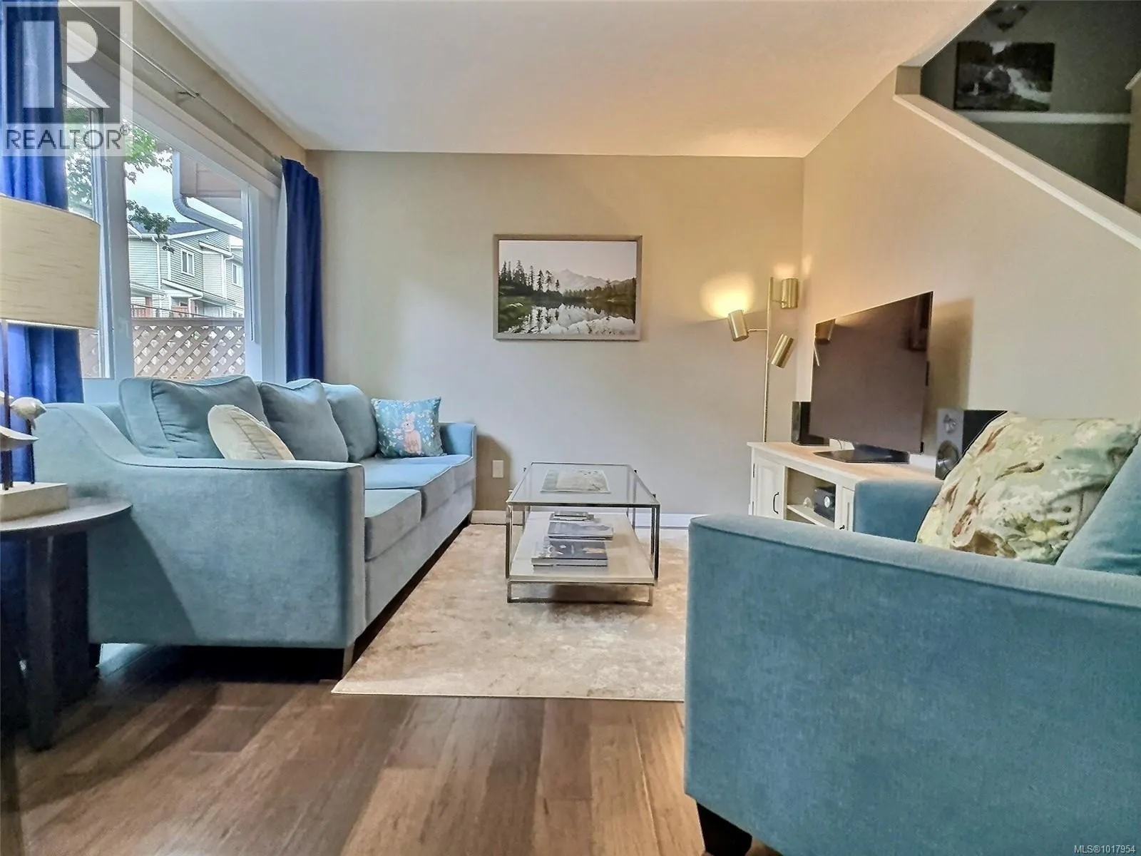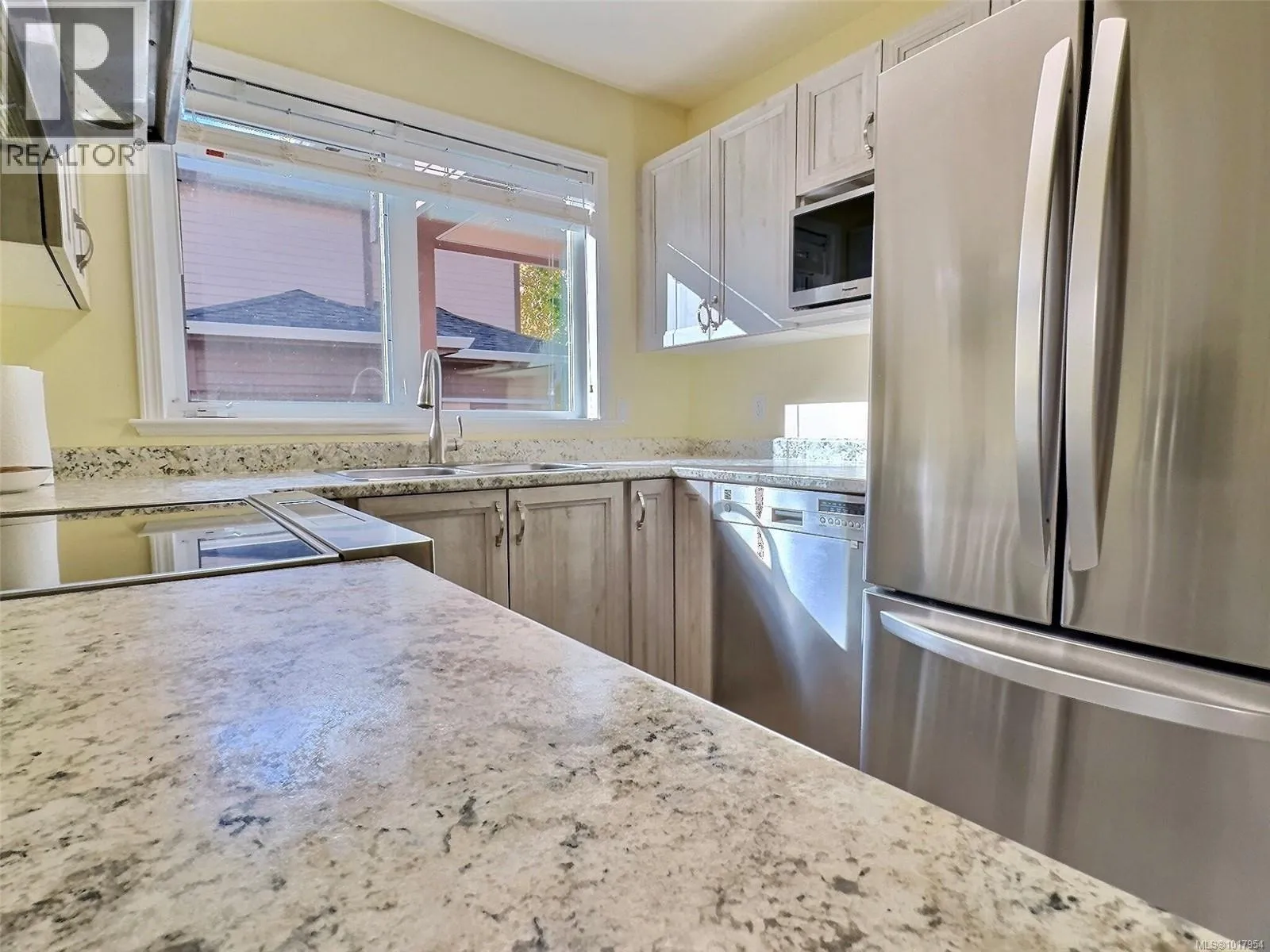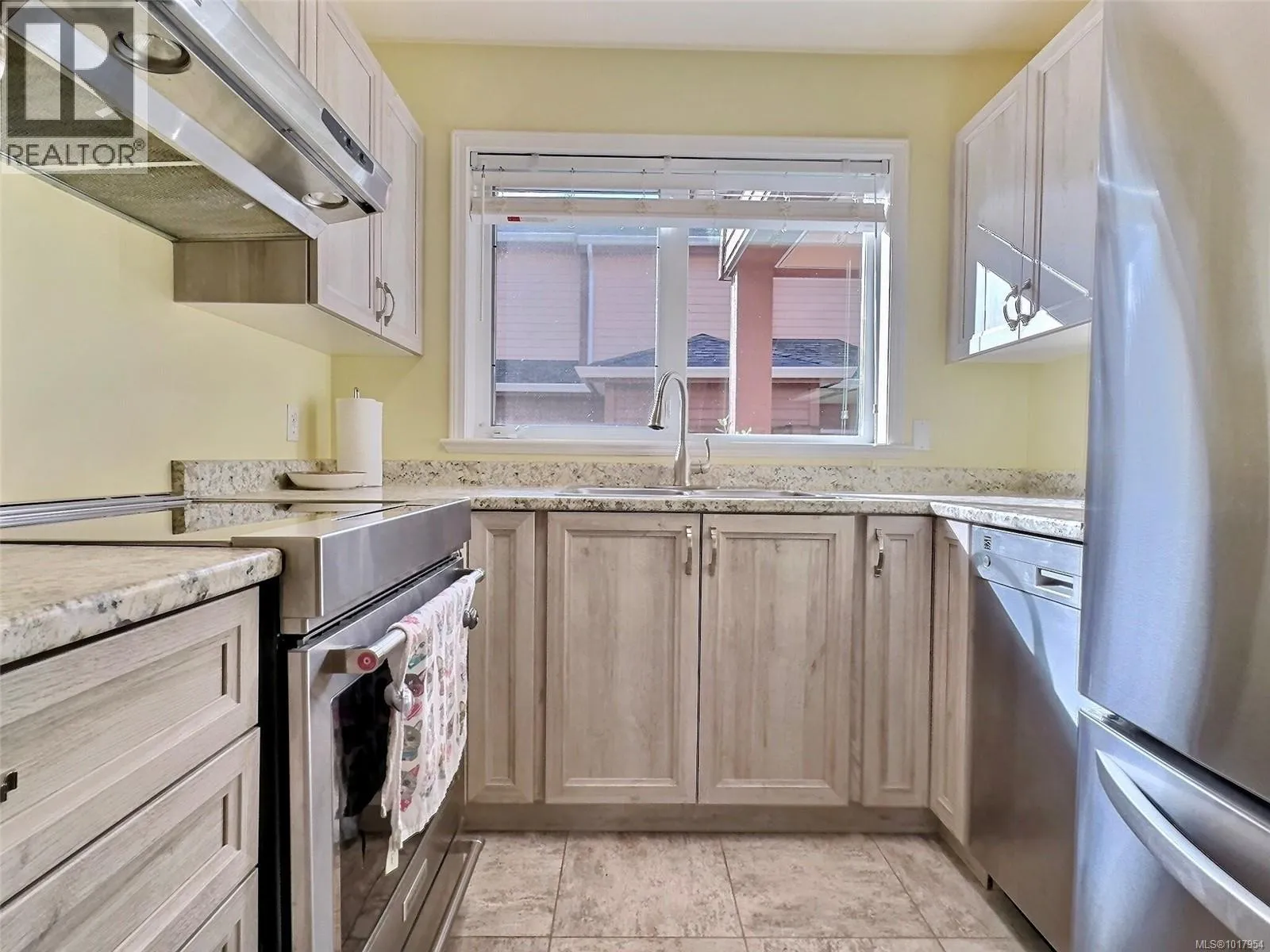 Stylish & Fully Renovated Townhome in Creekside â A Hidden Gem in Central Nanaimo. Welcome to this updated 3 bedroom, 3 bathroom corner townhome located in the sought after Creekside community. Tucked away in a quiet, tree-lined setting, this 1,340 square foot residence offers a rare combination of comfort, style, and convenience. Just minutes from the hospital, Country Grocer, restaurants, parks, and the golf course, this home is perfectly positioned for easy living. Step inside and discover a bright, open concept main level designed for both relaxation and entertaining. The spacious living room features a stunning gas fireplace that adds warmth and character, while the adjacent dining area flows seamlessly into a refreshed kitchen with newer stainless steel appliances, an induction range, updated cabinetry, and modern countertops. A cheerful eating nook is perfect for casual meals or morning coffee. A stylish 2-piece powder room completes the main floor. Upstairs, you will find three well sized bedrooms including a light filled primary suite with a walk-through closet and private ensuite. The main bathroom has been tastefully updated, and the entire home showcases hand scraped engineered hardwood flooring and thoughtful design touches throughout. As a corner unit, this townhome enjoys abundant natural light and added privacy. Surrounded by mature landscaping and located in a peaceful, well-maintained strata, it offers a welcoming environment for professionals, families, or downsizers alike. With nothing left to do but move in, this home is a standout opportunity in one of Nanaimoâs most convenient and charming neighbourhoods. (id:27476)