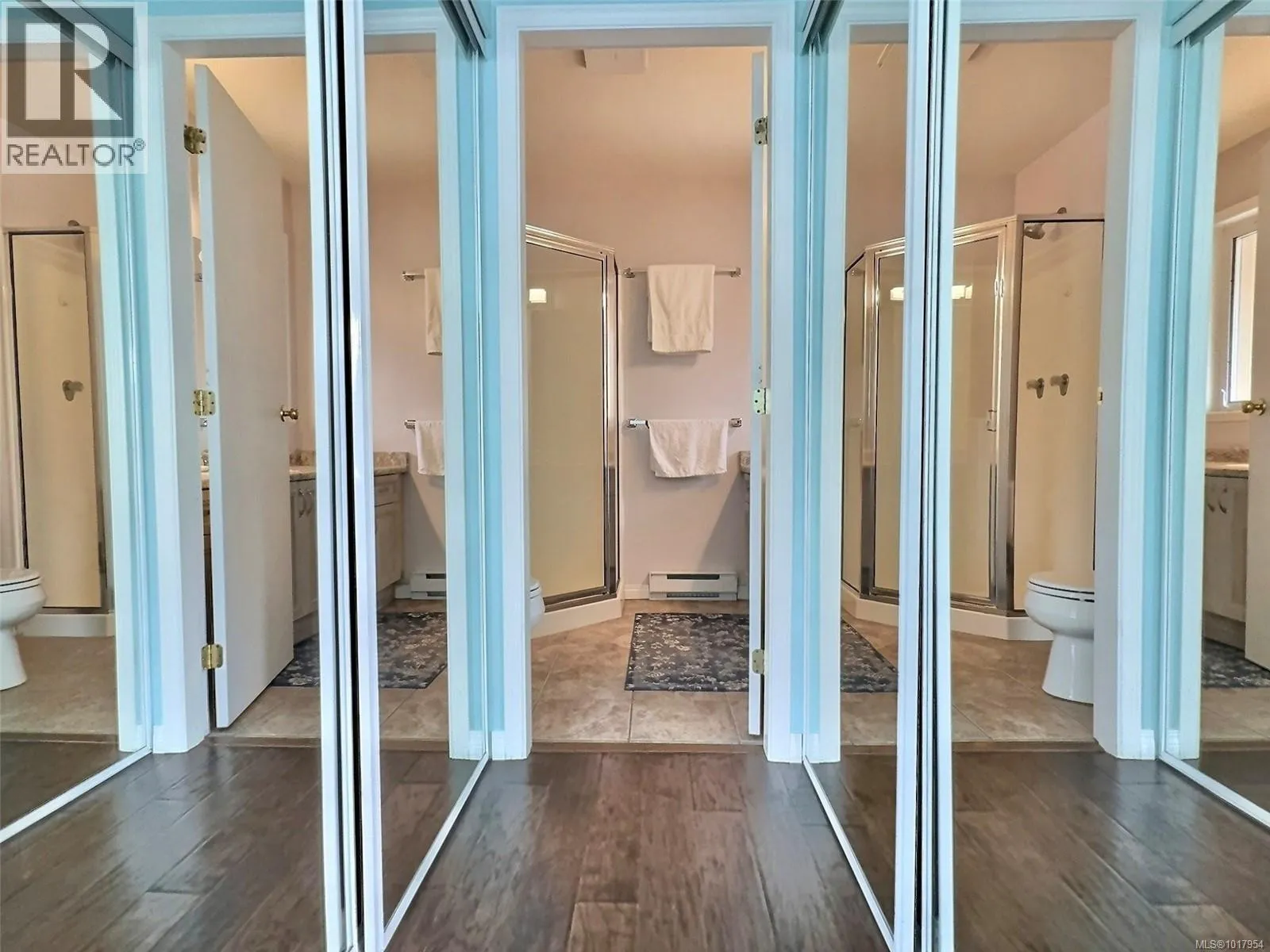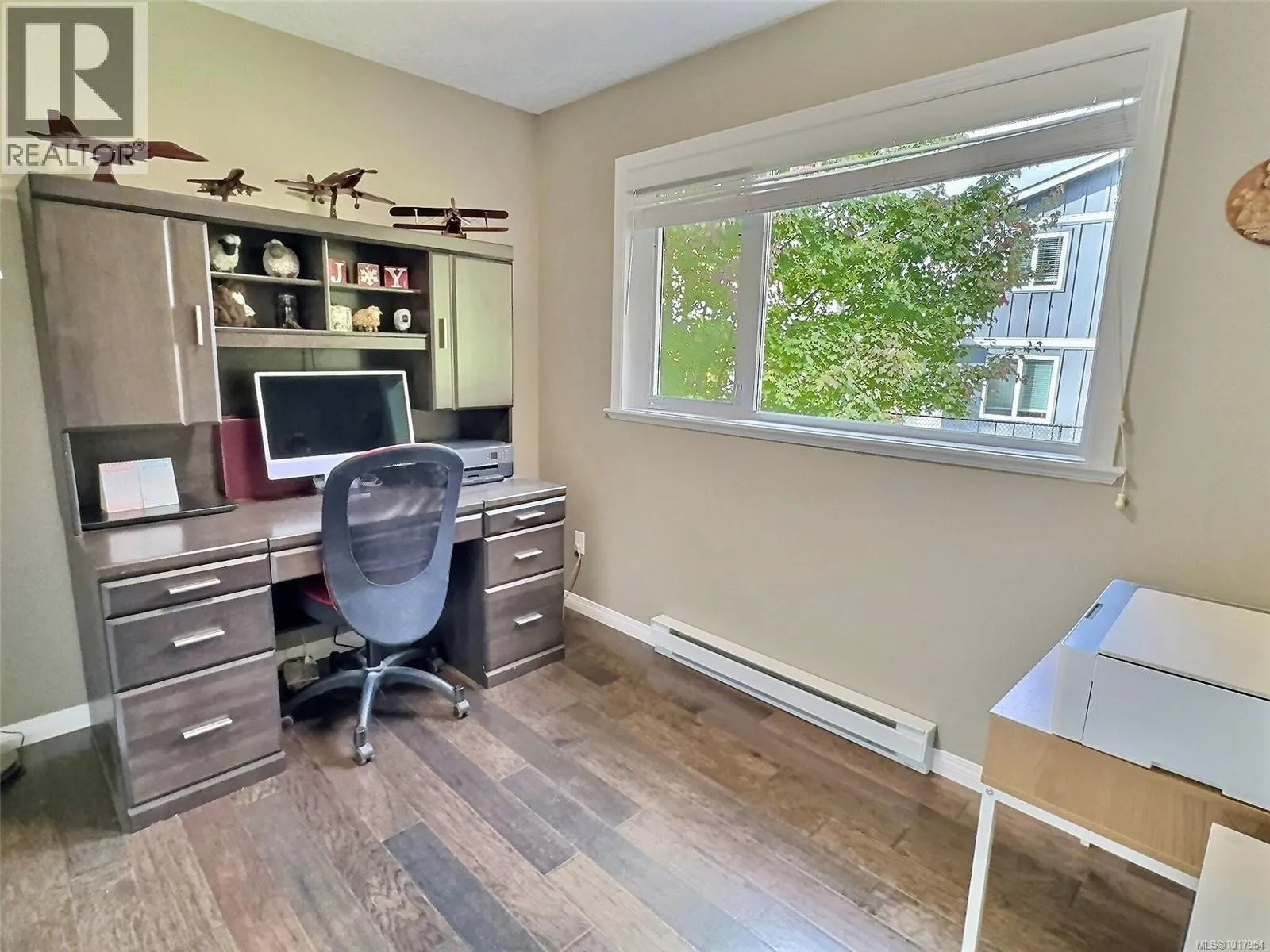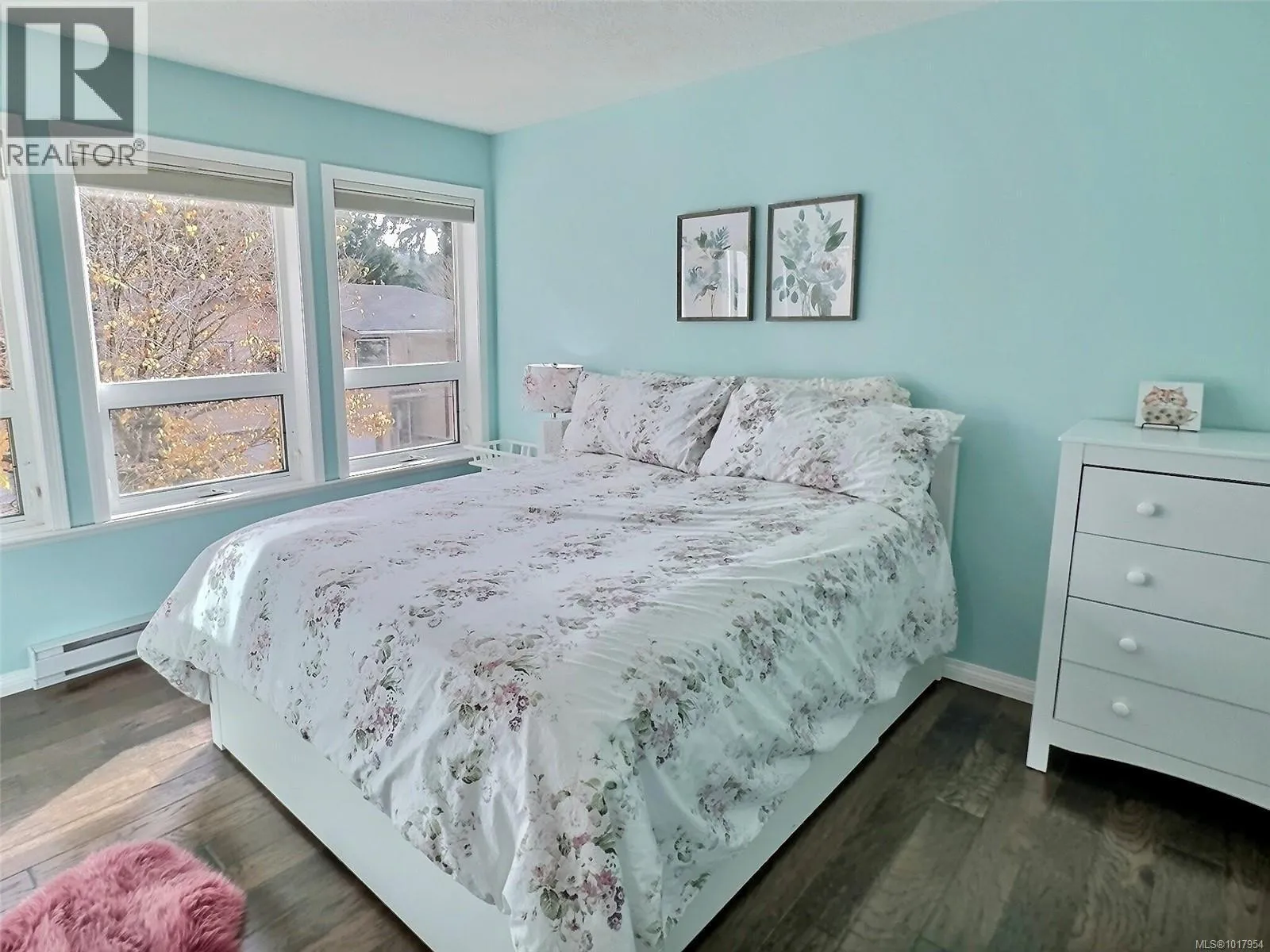 Stylish & Fully Renovated Townhome in Creekside â A Hidden Gem in Central Nanaimo. Welcome to this updated 3 bedroom, 3 bathroom corner townhome located in the sought after Creekside community. Tucked away in a quiet, tree-lined setting, this 1,340 square foot residence offers a rare combination of comfort, style, and convenience. Just minutes from the hospital, Country Grocer, restaurants, parks, and the golf course, this home is perfectly positioned for easy living. Step inside and discover a bright, open concept main level designed for both relaxation and entertaining. The spacious living room features a stunning gas fireplace that adds warmth and character, while the adjacent dining area flows seamlessly into a refreshed kitchen with newer stainless steel appliances, an induction range, updated cabinetry, and modern countertops. A cheerful eating nook is perfect for casual meals or morning coffee. A stylish 2-piece powder room completes the main floor. Upstairs, you will find three well sized bedrooms including a light filled primary suite with a walk-through closet and private ensuite. The main bathroom has been tastefully updated, and the entire home showcases hand scraped engineered hardwood flooring and thoughtful design touches throughout. As a corner unit, this townhome enjoys abundant natural light and added privacy. Surrounded by mature landscaping and located in a peaceful, well-maintained strata, it offers a welcoming environment for professionals, families, or downsizers alike. With nothing left to do but move in, this home is a standout opportunity in one of Nanaimoâs most convenient and charming neighbourhoods. (id:27476)