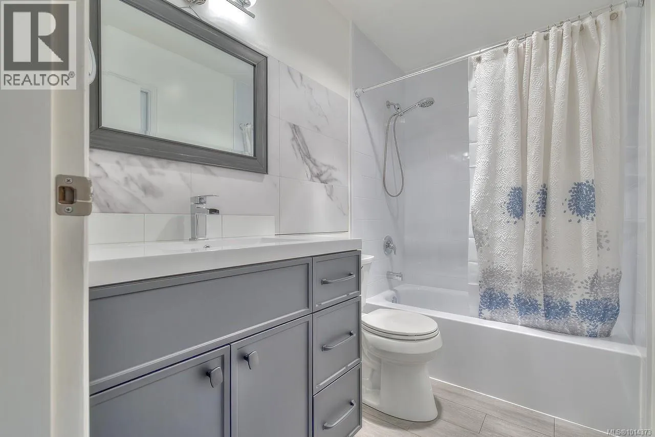 Nicely updated and move in ready best describes this 3 bedroom, 2 bathroom townhouse located in Millstream Creek Complex. This family complex is well run & beautifully landscaped and features lots of parking plus an on-site daycare. Pets allowed, please inquire for specific size requirements. The 1277 sq foot townhouse features 2 fully renovated bathrooms with a new bath fitter tub surround, 1 car garage and a cozy gas fireplace. Main level living with your own private fenced patio/courtyard. Upstairs has 3 bedrooms, 2 yr old stacking washer/dryer & a full bath. Enjoy convenient access to Country Grocer, the hospital, schools and a golf course. This unit is move in ready for your enjoyment. All measurements approximate and should be verified if important. (id:27476)