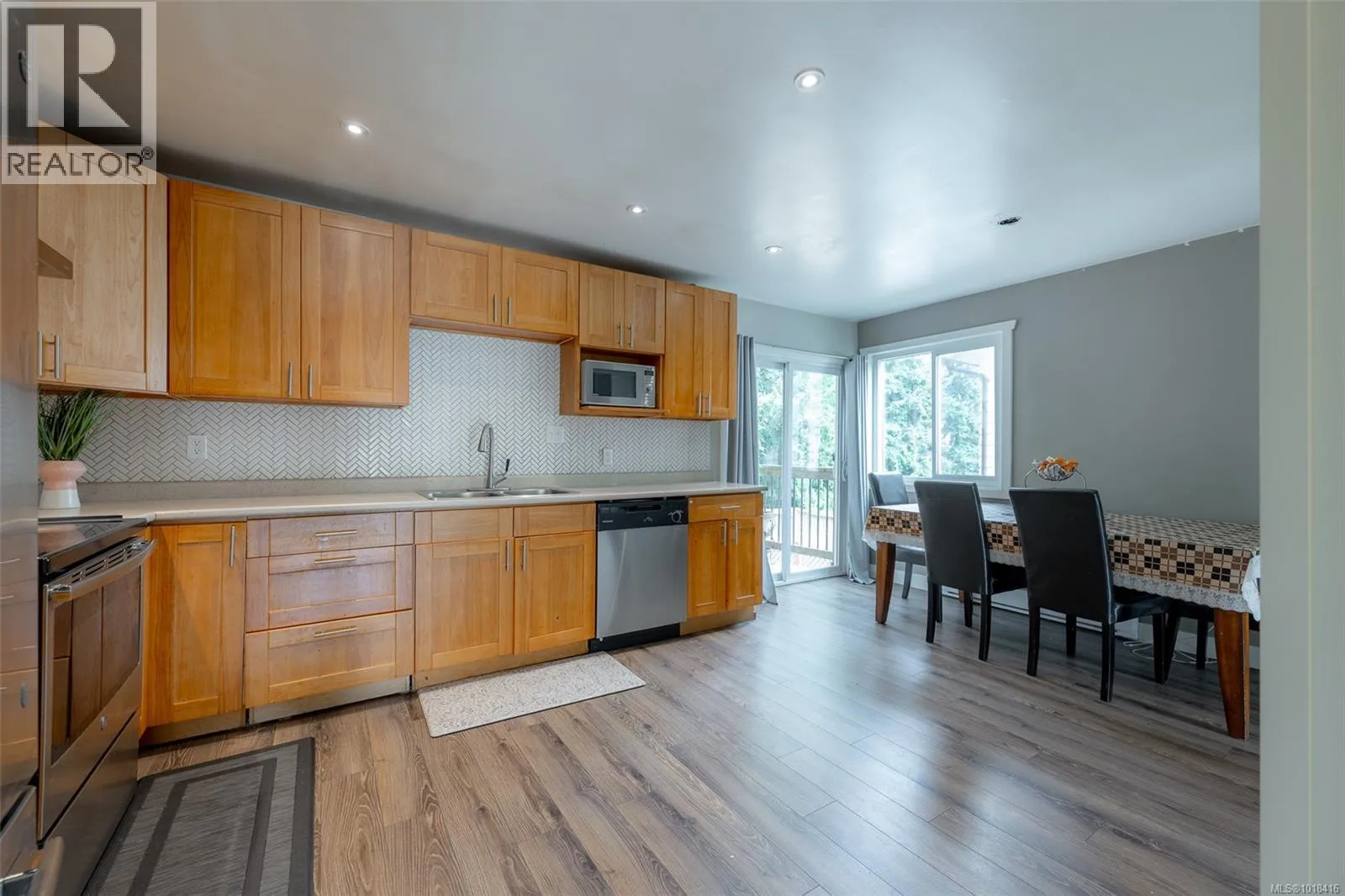 Welcome to this beautiful home with well used space & exceptional value. The main floor offers a well-designed layout with a large living area, defined dining space, & big kitchen featuring stainless steel appliances & plenty of cabinetry. A convenient 2-piece bathroom, laundry & storage under the stairs add functionality to this level. Upstairs, you'll find three generous size bedrooms & the 5-piece main bathroom. Hot water tank was changed in June 2025. Step outside to a large, fully fenced private backyardâideal for children, pets, gardening, or relaxing in the summer sun. Located in a quiet spot at the end of a road, few minutes from VIU, Colliery Dam, University Village Mall, schools, amazing play parks for the kids and key transit routes, this home offers great value in a desirable neighborhood. all measurements are taken from a reliable source. Buyers to do their due diligence. Don't miss the opportunity to own this beautiful home. (id:27476)