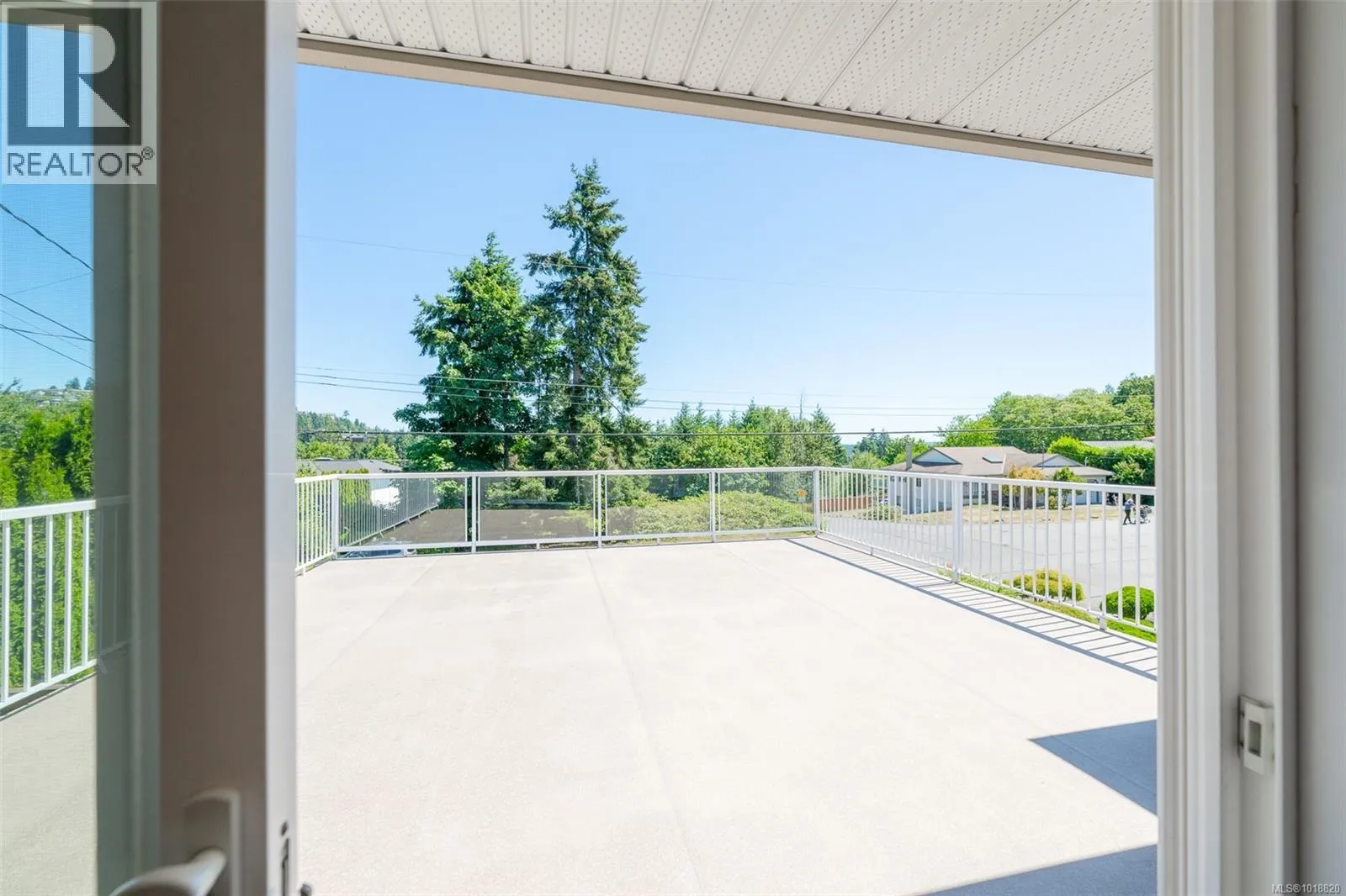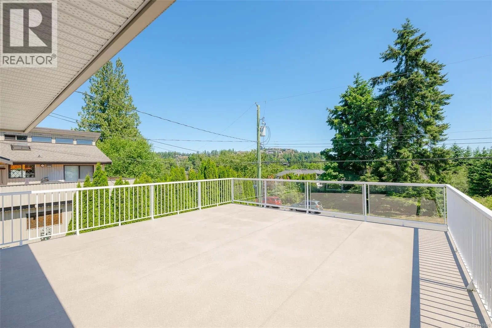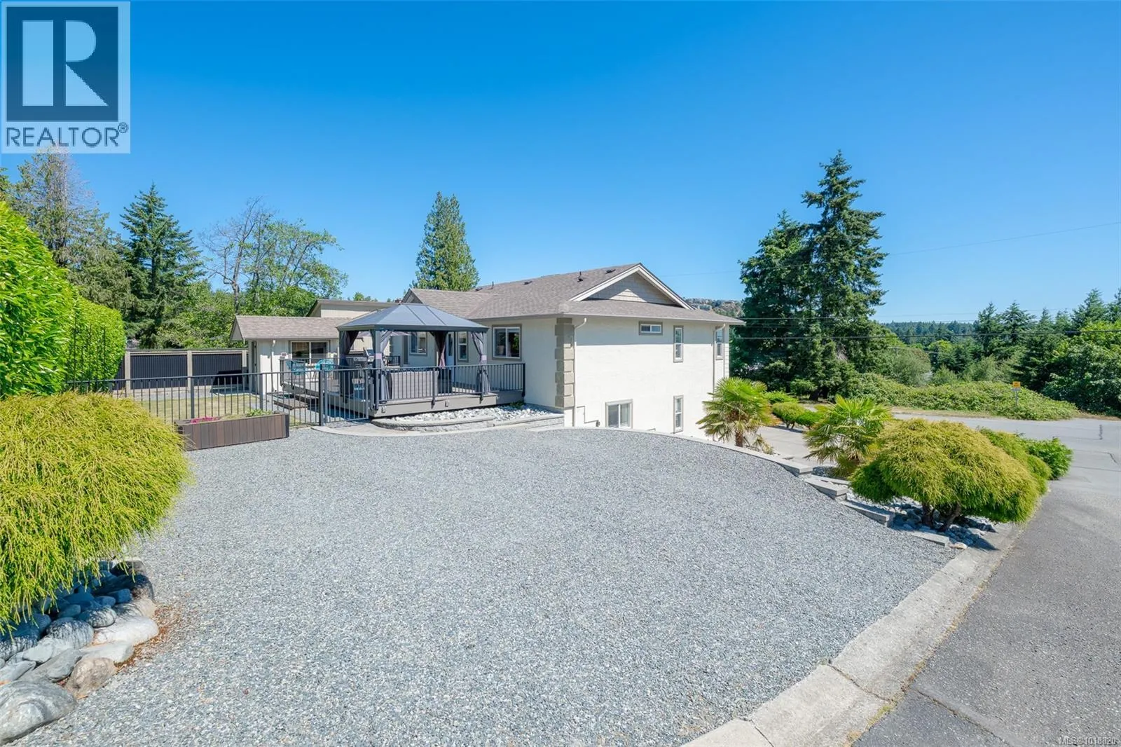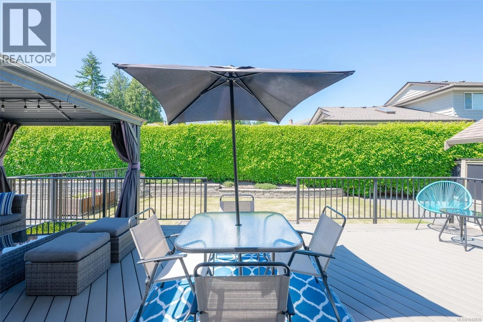 Set in a quiet, private neighborhood, this beautifully updated sunny Departure Bay home blends comfort, style, and energy efficiency. Inside, enjoy hardwood and engineered hardwood throughout, with heated tile in the kitchen and ensuite. The bright kitchen features quartz countertops, stainless steel appliances, and a central islandâideal for entertaining. The main level includes a bedroom, full bathroom, and laundry, while upstairs offers three additional bedroomsâincluding a spacious primary suite with a spa-like custom ensuiteâand a family room with access to a sunny upper deck. A second large rear patio provides even more outdoor living space. Walk to beaches, cafés, and enjoy the convenience of being just five minutes from shopping, schools, and other amenities. RV parking and low-maintenance landscaping complete this move-in-ready home. Measurements are approximate, buyers to verify if important. (id:27476)