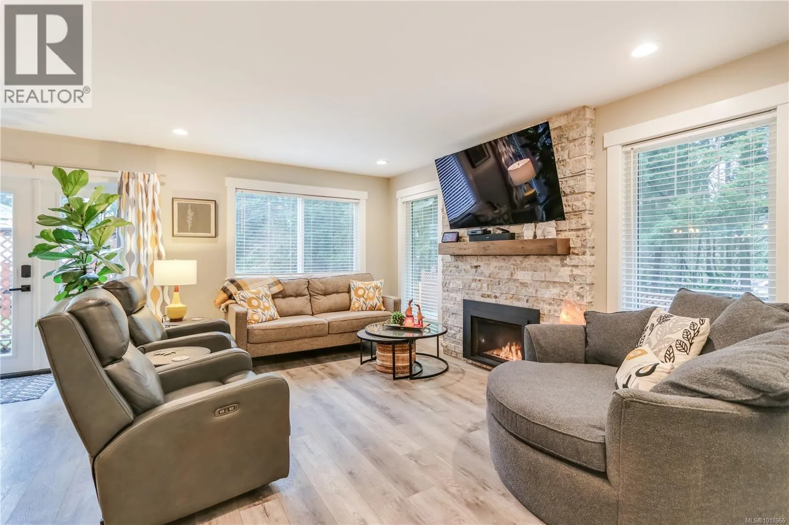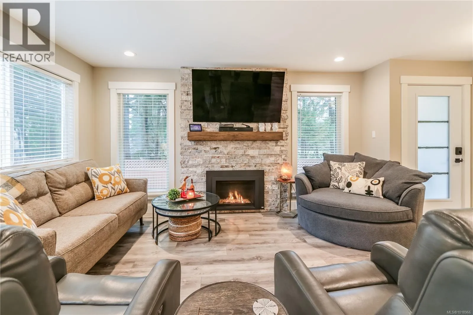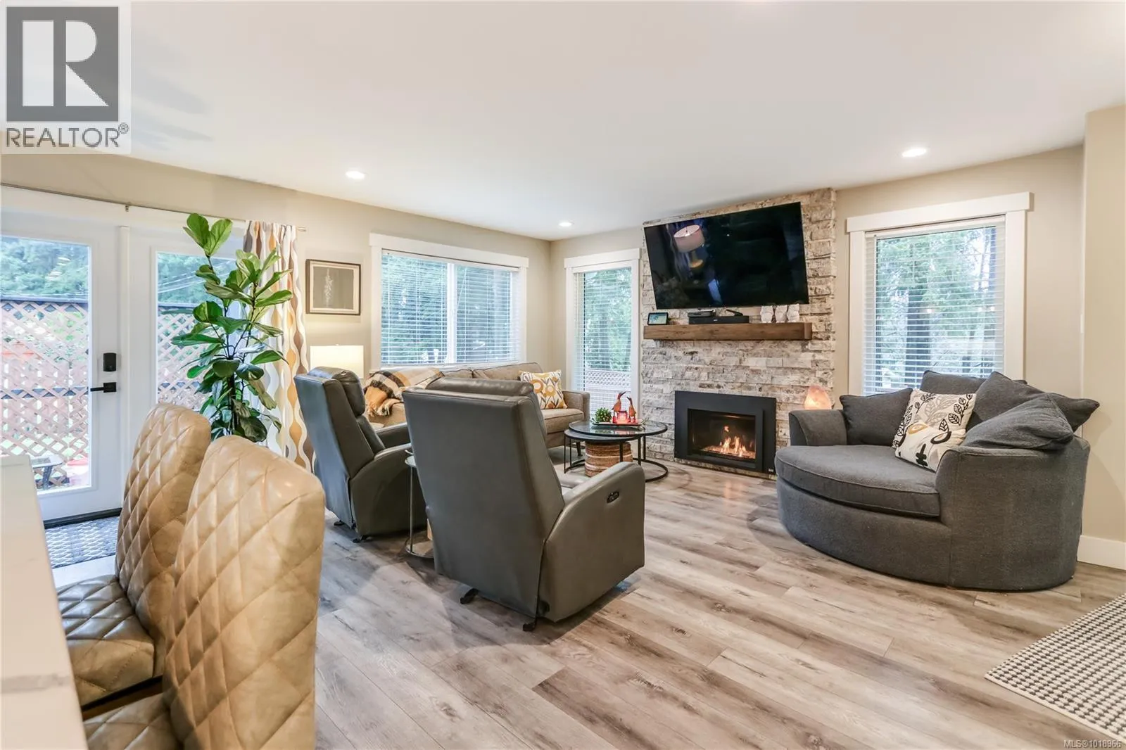 Welcome to your dream home! This stunning and fully renovated 3 bedroom, 2 bathroom rancher is nestled in the lovely North Nanaimo neighbourhood of Pleasant Valley. As you step inside, you'll be captivated by the seamless flow of the open floor plan and designer updates. All new flooring, trim, paint and unique lighting adorn this lovely home. The new and stylish kitchen offers beautiful tile back-splash, quartz counters, stainless steel appliances and island. The living room features a new natural gas fireplace with stone surround and French doors which lead out to the exterior patio. The primary bedroom boasts a 4 piece ensuite with contemporary finishings, heated floors and large walk-in custom shower. 2 additional bedrooms, tastefully renovated main bathroom and laundry finish off this well appointed home. Outside you'll discover a fully fenced and spacious backyard. Don't miss the new heat pump and Natural Gas furnace for efficient heating and cooling, vinyl windows, Fully refurbished crawl space by Island Basement Systems and the convenient location which provides easy access to schools, parks, shopping and restaurants! (id:27476)