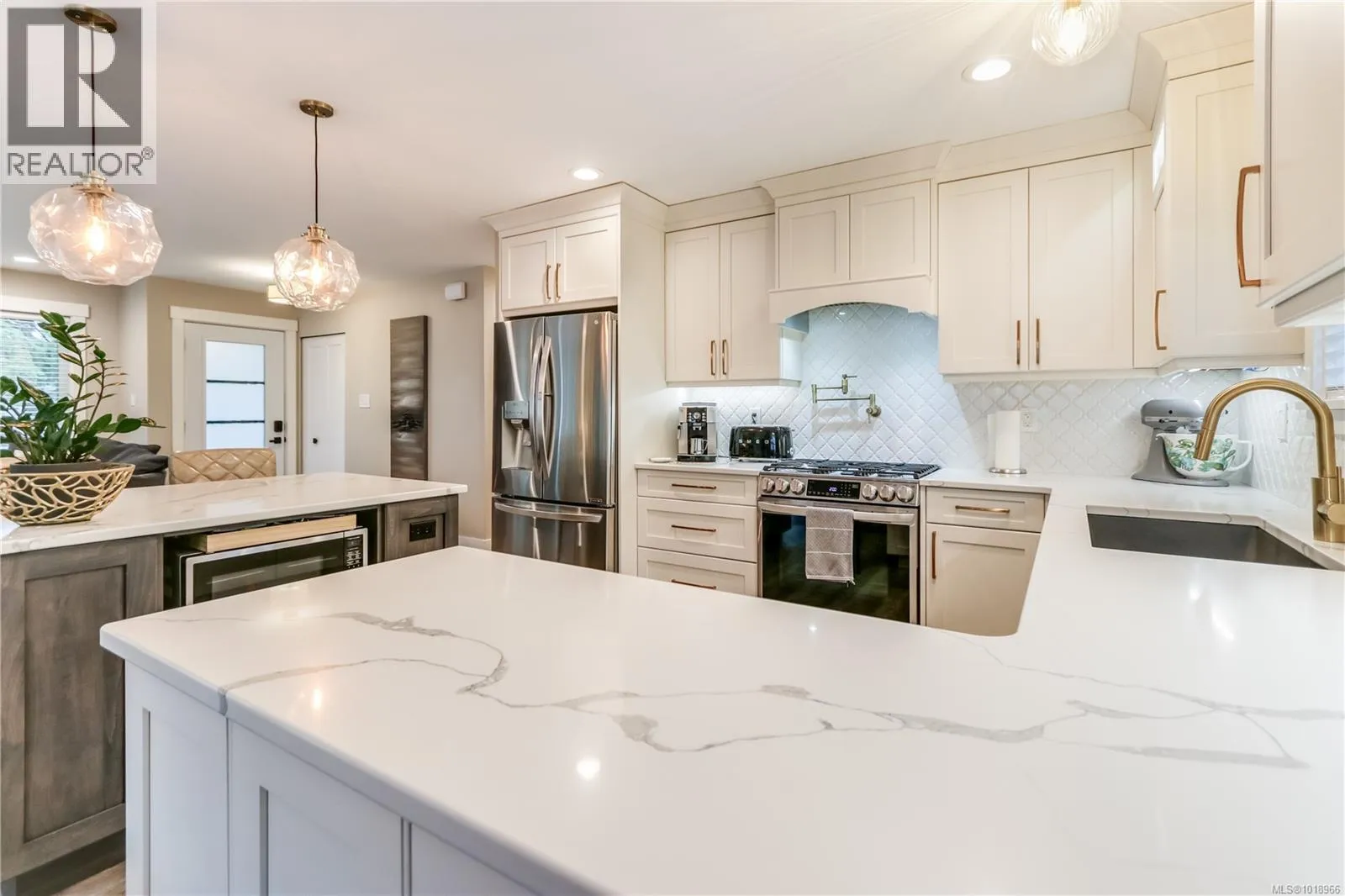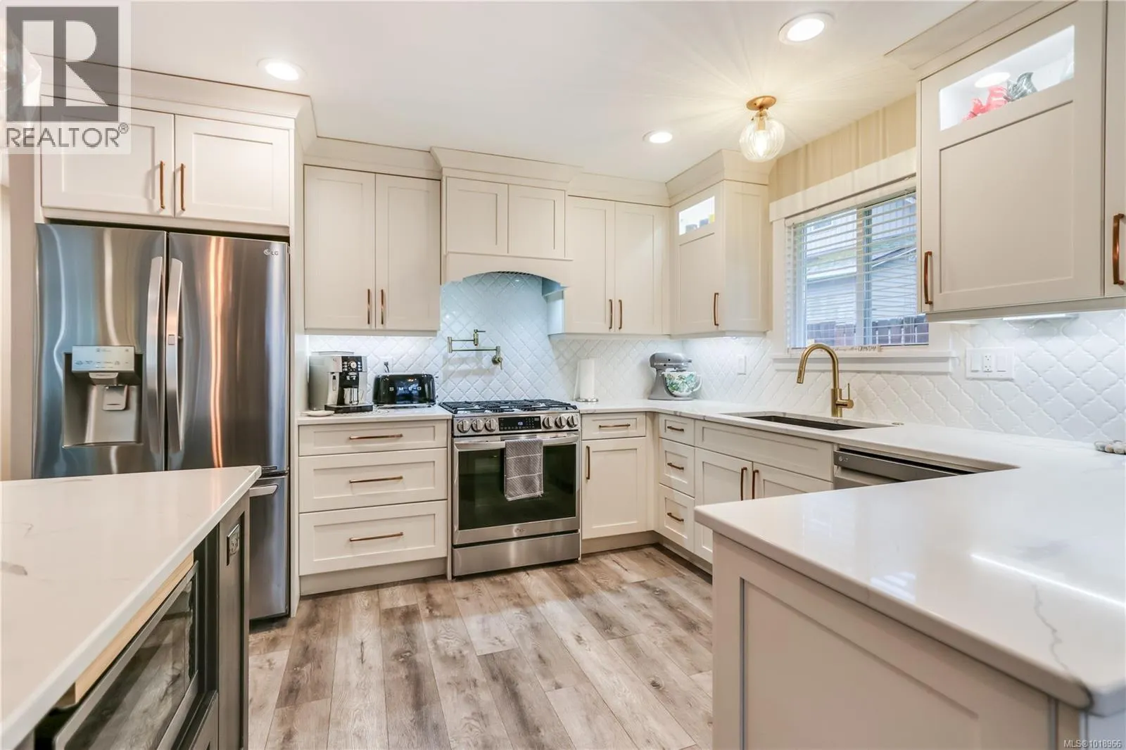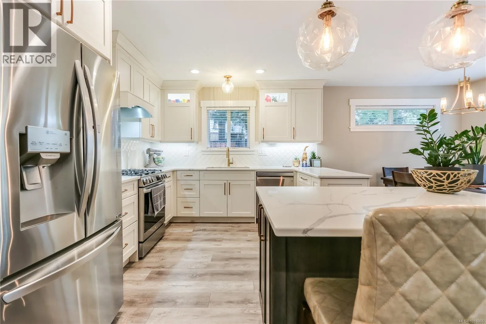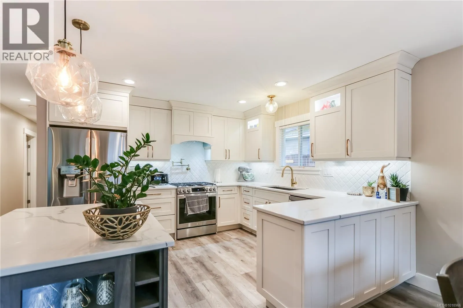 Welcome to your dream home! This stunning and fully renovated 3 bedroom, 2 bathroom rancher is nestled in the lovely North Nanaimo neighbourhood of Pleasant Valley. As you step inside, you'll be captivated by the seamless flow of the open floor plan and designer updates. All new flooring, trim, paint and unique lighting adorn this lovely home. The new and stylish kitchen offers beautiful tile back-splash, quartz counters, stainless steel appliances and island. The living room features a new natural gas fireplace with stone surround and French doors which lead out to the exterior patio. The primary bedroom boasts a 4 piece ensuite with contemporary finishings, heated floors and large walk-in custom shower. 2 additional bedrooms, tastefully renovated main bathroom and laundry finish off this well appointed home. Outside you'll discover a fully fenced and spacious backyard. Don't miss the new heat pump and Natural Gas furnace for efficient heating and cooling, vinyl windows, Fully refurbished crawl space by Island Basement Systems and the convenient location which provides easy access to schools, parks, shopping and restaurants! (id:27476)