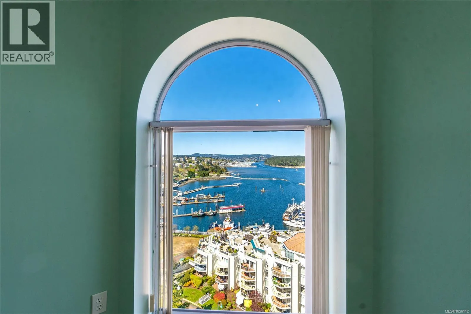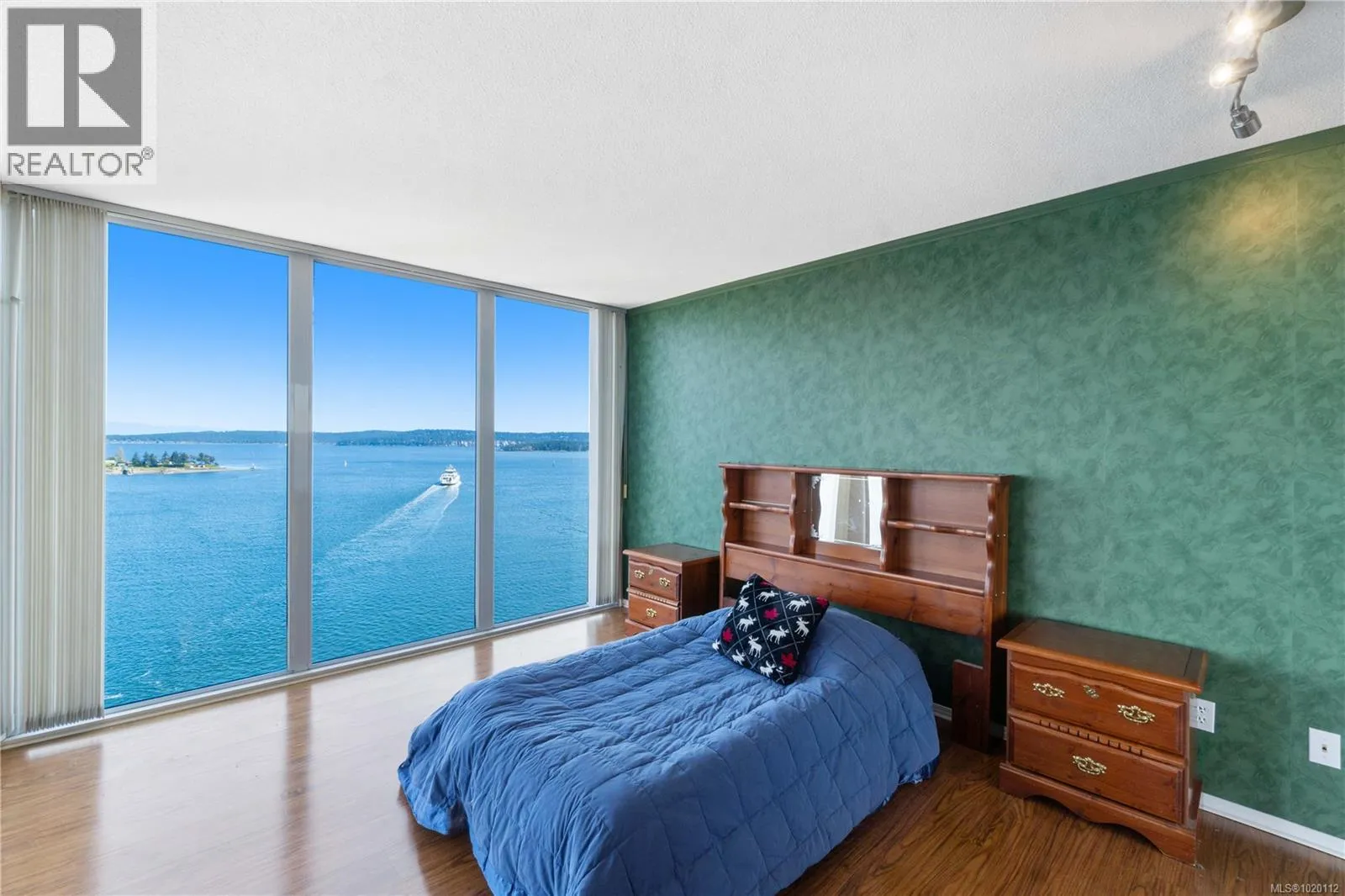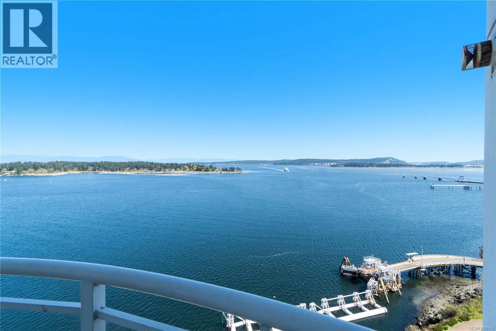 BACK ON MARKET. Welcome to Cameron Island and The Beacon. Situated on the 17th floor, this ''05'' unit showcases the most outstanding views from sunrise to sunset. This 2 bedroom plus den, 2 bath suite features an open floor plan, gas fireplace, separate storage locker and a private balcony. Unlike many other units, 1705 maintains tremendous value with 2 assigned parking stalls, and direct ocean views. The master showcases unobstructed views and a 4 piece en-suite bath. The Beacon also boasts a fitness room, swimming pool and hot tub, party and gathering spaces, and is wheelchair accessible. Recent upgrades include air conditioning to all common hallways, fitness areas and gathering rooms, plus an EV charging system to the parkade.(inquire for details). Located next to a marina, Gabriola Island ferry terminal, and easily accesses transportation, downtown entertainment and shopping districts. (id:27476)