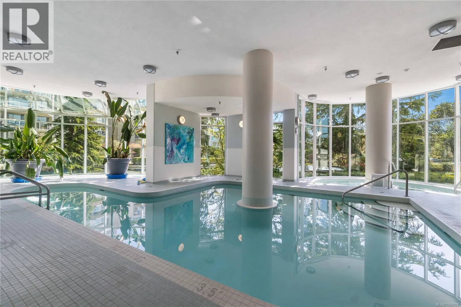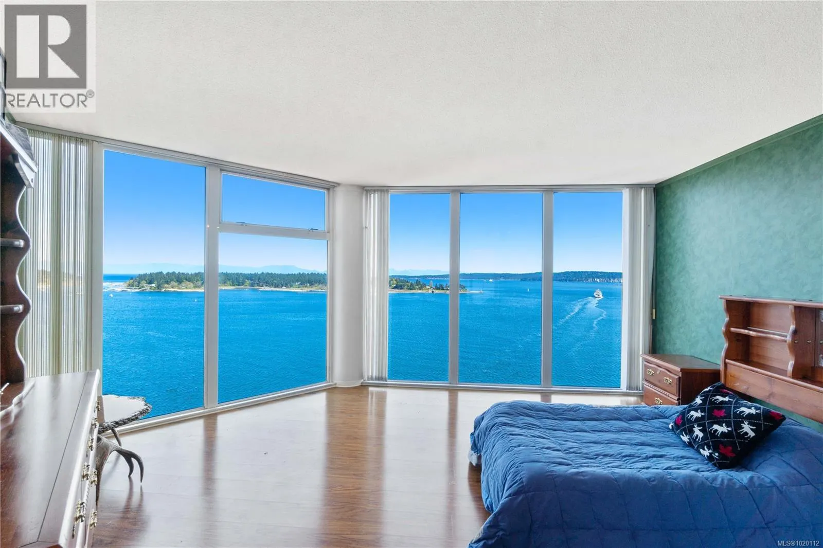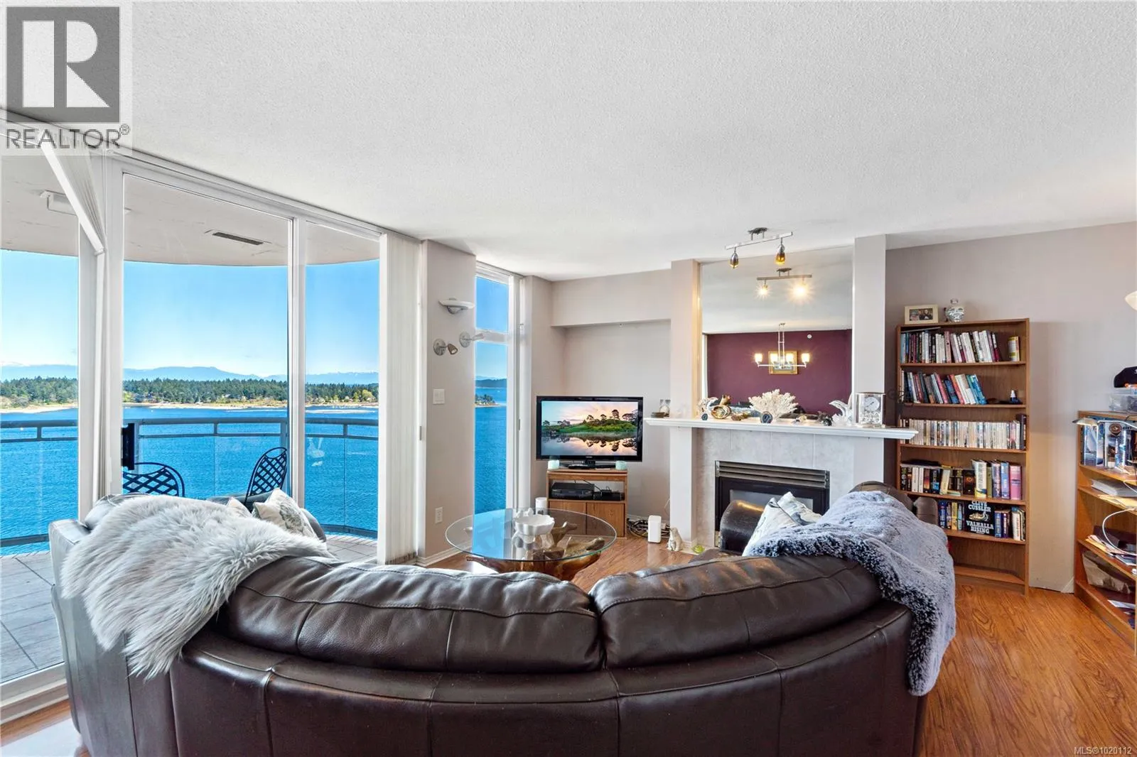 BACK ON MARKET. Welcome to Cameron Island and The Beacon. Situated on the 17th floor, this ''05'' unit showcases the most outstanding views from sunrise to sunset. This 2 bedroom plus den, 2 bath suite features an open floor plan, gas fireplace, separate storage locker and a private balcony. Unlike many other units, 1705 maintains tremendous value with 2 assigned parking stalls, and direct ocean views. The master showcases unobstructed views and a 4 piece en-suite bath. The Beacon also boasts a fitness room, swimming pool and hot tub, party and gathering spaces, and is wheelchair accessible. Recent upgrades include air conditioning to all common hallways, fitness areas and gathering rooms, plus an EV charging system to the parkade.(inquire for details). Located next to a marina, Gabriola Island ferry terminal, and easily accesses transportation, downtown entertainment and shopping districts. (id:27476)