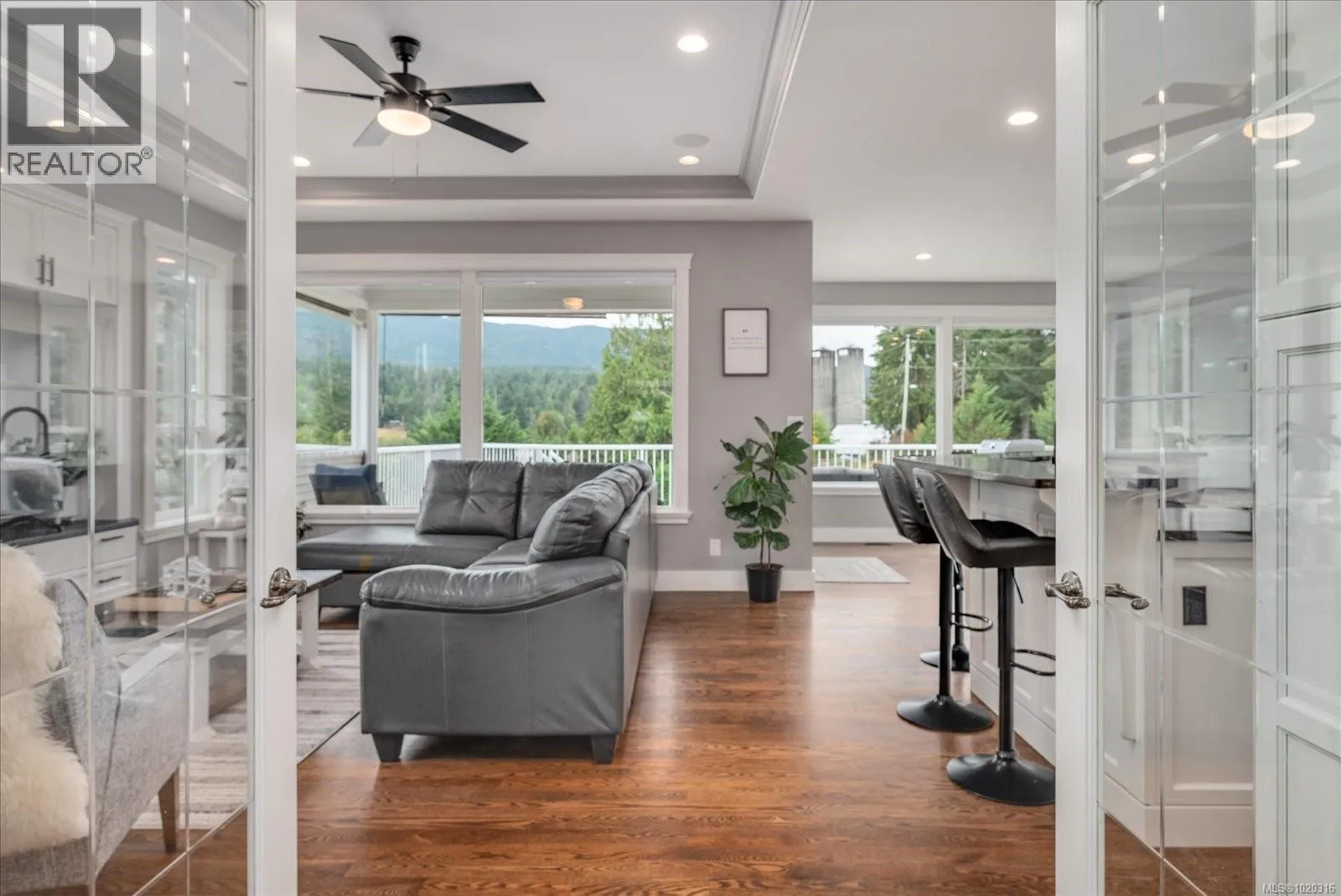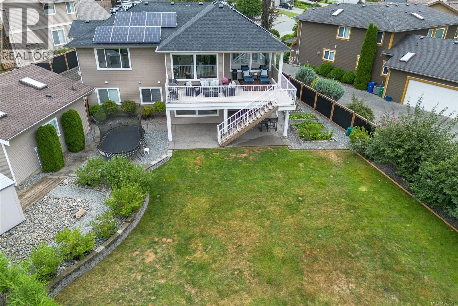 Welcome to what might be the most complete, versatile property in one of Nanaimo's most desired subdivisions! Starting with the main home, this stunning property features a spacious 3,573 sq ft, 2 level home, with 6 beds and 3 baths. Included in this home is a 2 bedroom self contained suite. The main level boasts oak flooring, a beautiful entertainerâs kitchen over looking the oversized deck, acres of farmland and stunning, ever changing views of Mount Benson. Situated on nearly a 1/3 acre lot, the front yard offers easy maintenance and over 2500 sq feet of exposed concrete driving for more parking than one could need for guests or accommodations. The sunny, southern exposed back yard uses every inch of space, with 5 raised garden beds, 7 fruit trees including apple, plum cherry and an amazing peach tree and 7 blueberry plants which produced over 80 lbs in 2024. Fully fenced for your pets, 2 garden sheds (one set up to be a chicken coup with run) plenty of grass and patio space as well, and a 4 year old hot tub. Endless upgrades to this home include a new roof, solar system, 3-year old furnace, heat pump, brand new marathon hot water tank, metal fencing, raised concrete block garden beds, paint, updated kitchen and more. And last there is a second home situated in the right corner of the property, a 523 sq foot fully detached 1 bedroom carriage home currently operating as a legal Airbnb per City of Nanaimo bylaws. Whether its having space for family or living your dream with exceptional added income, they do not come much better than this. (id:27476)