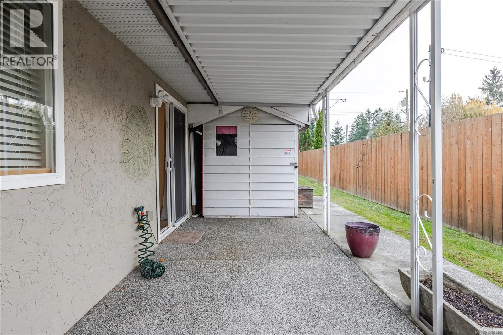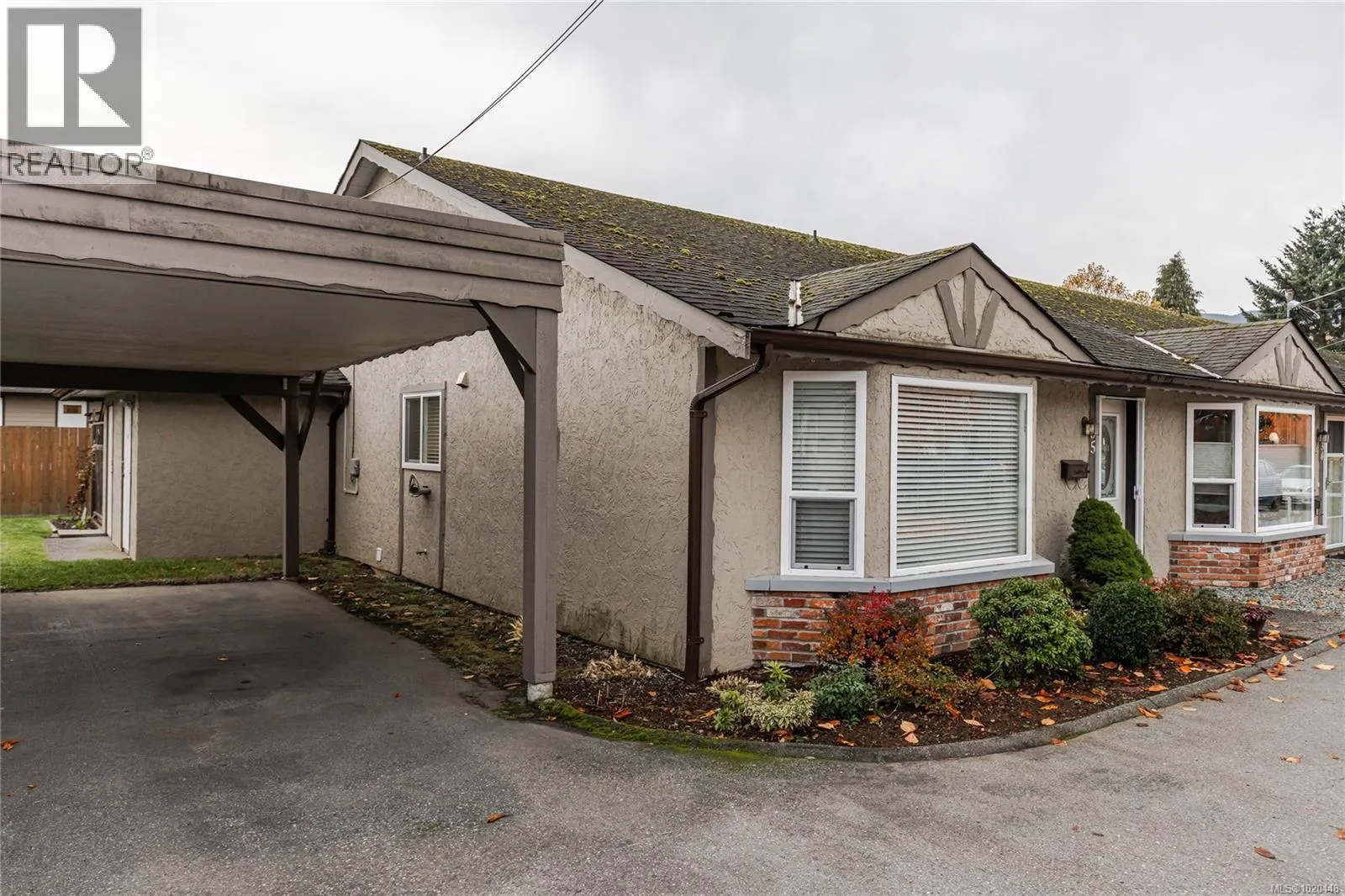 You'll be impressed by this nicely updated patio home located in quiet Ashlar Place. This clean and bright two bedroom end unit features a good sized living area with vaulted ceiling, open eating area, newer kitchen and bathroom renovations and updated flooring throughout. There is a good sized laundry area and as a bonus the storage room has inside access that other units don't have. A nice touch indeed. There is a covered rear patio area along the back with more storage in the outside shed which the seller says is the only one in the complex. There is a covered parking spot right beside the home with visitor parking in front. Overall this is a well maintained home in a quiet 55+ complex in a peaceful but central location (id:27476)
