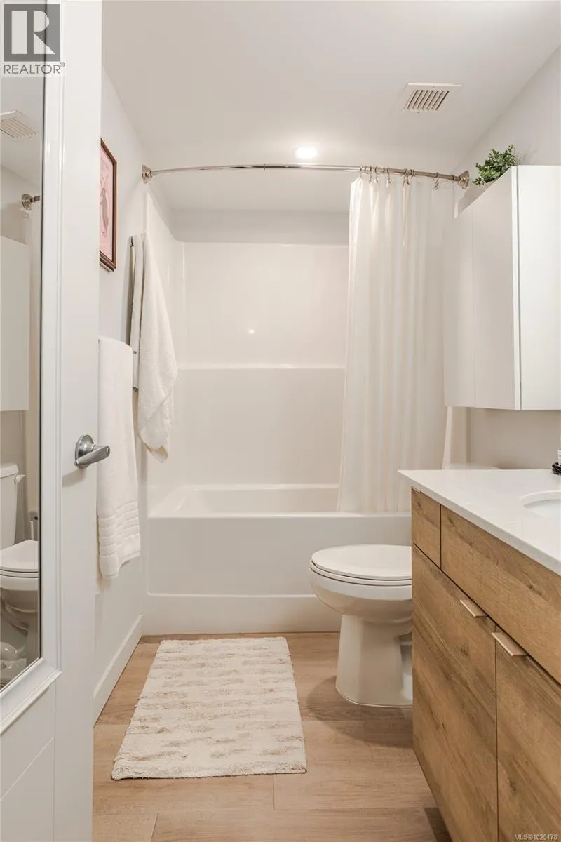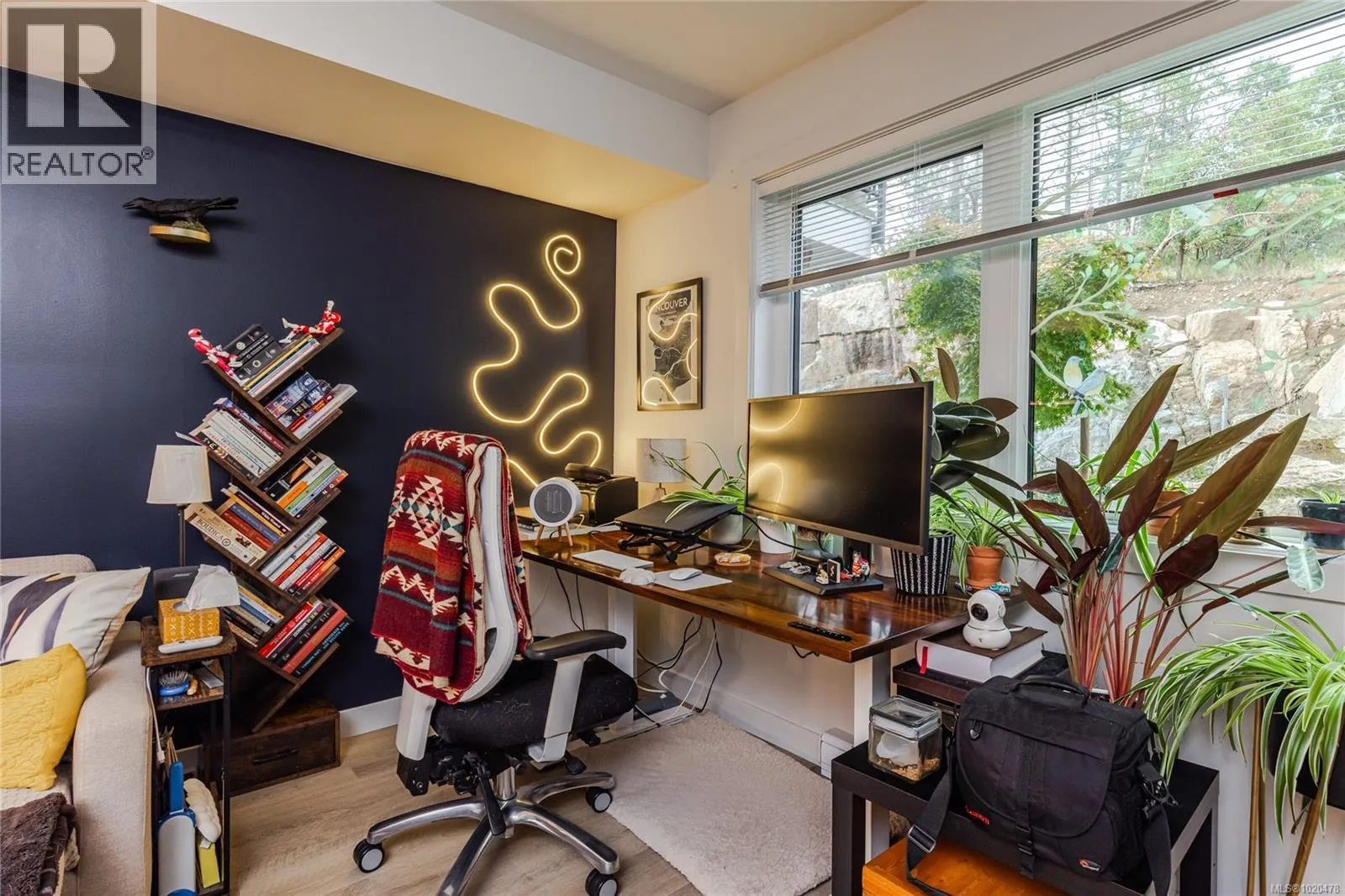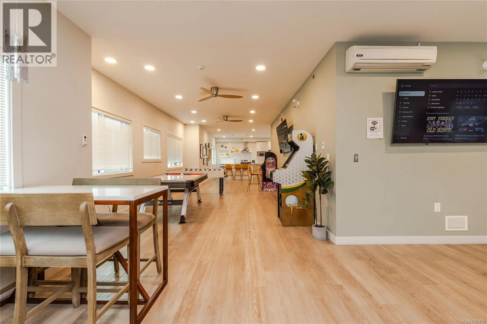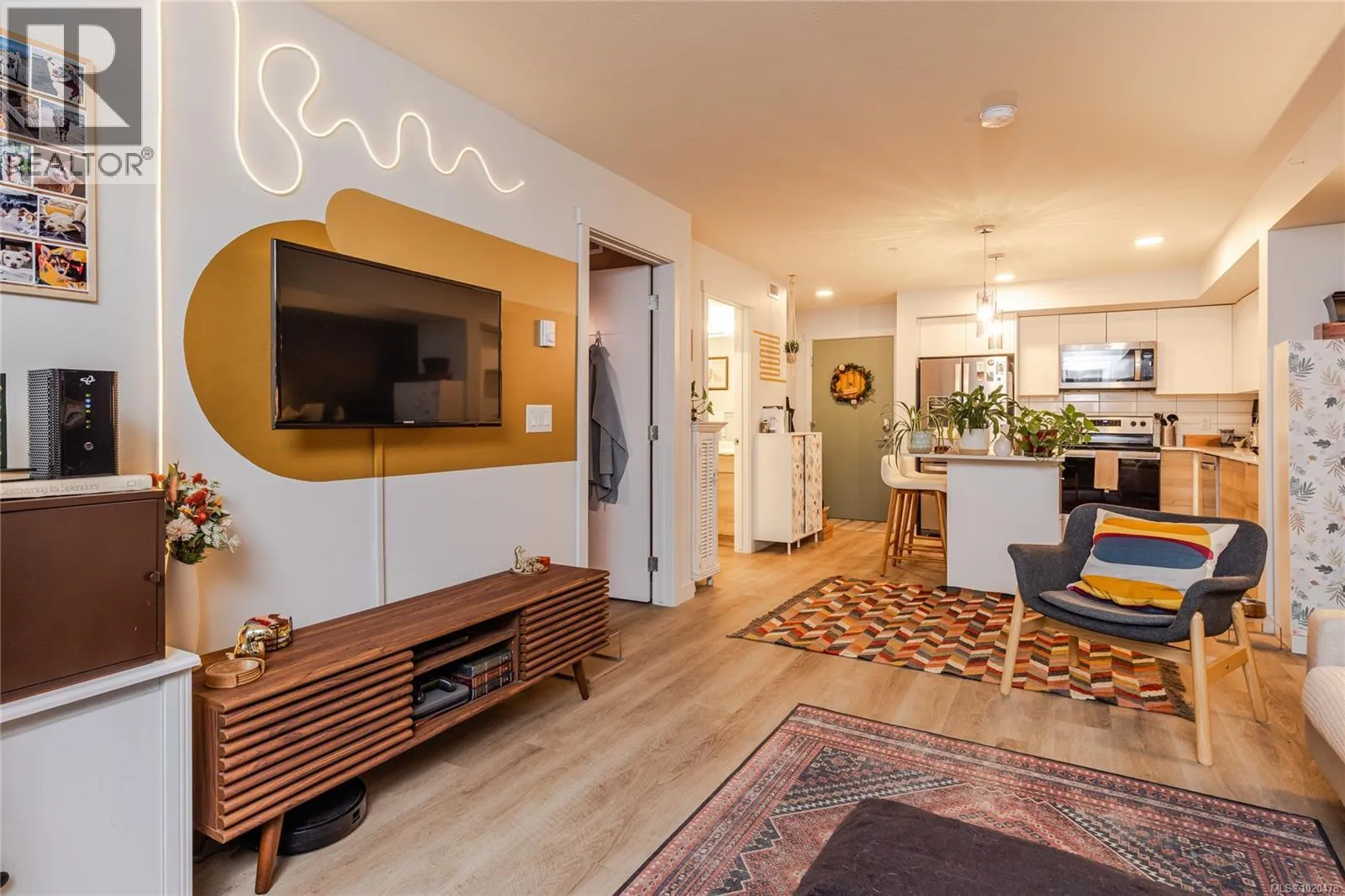 Hers's a modern 1 bedroom 1 bath ground level condominium with its own private entrance off the patio. Offering a large open living area with high ceilings, a beautiful kitchen with quartz countertops and high end cabinetry, spacious bedroom and in-suite laundry. Lakeside Terraces is a Built Green community featuring triple pane windows, solar panels and LED lighting. There is secure underground parking with bike storage and EV capability. The complex also features a large amenity building with a gorgeous lounge, games room, kitchen, gymnasium and even a yoga room. Overall a well built complex and all within a short walk to Long Lake and North Town Center. (id:27476)