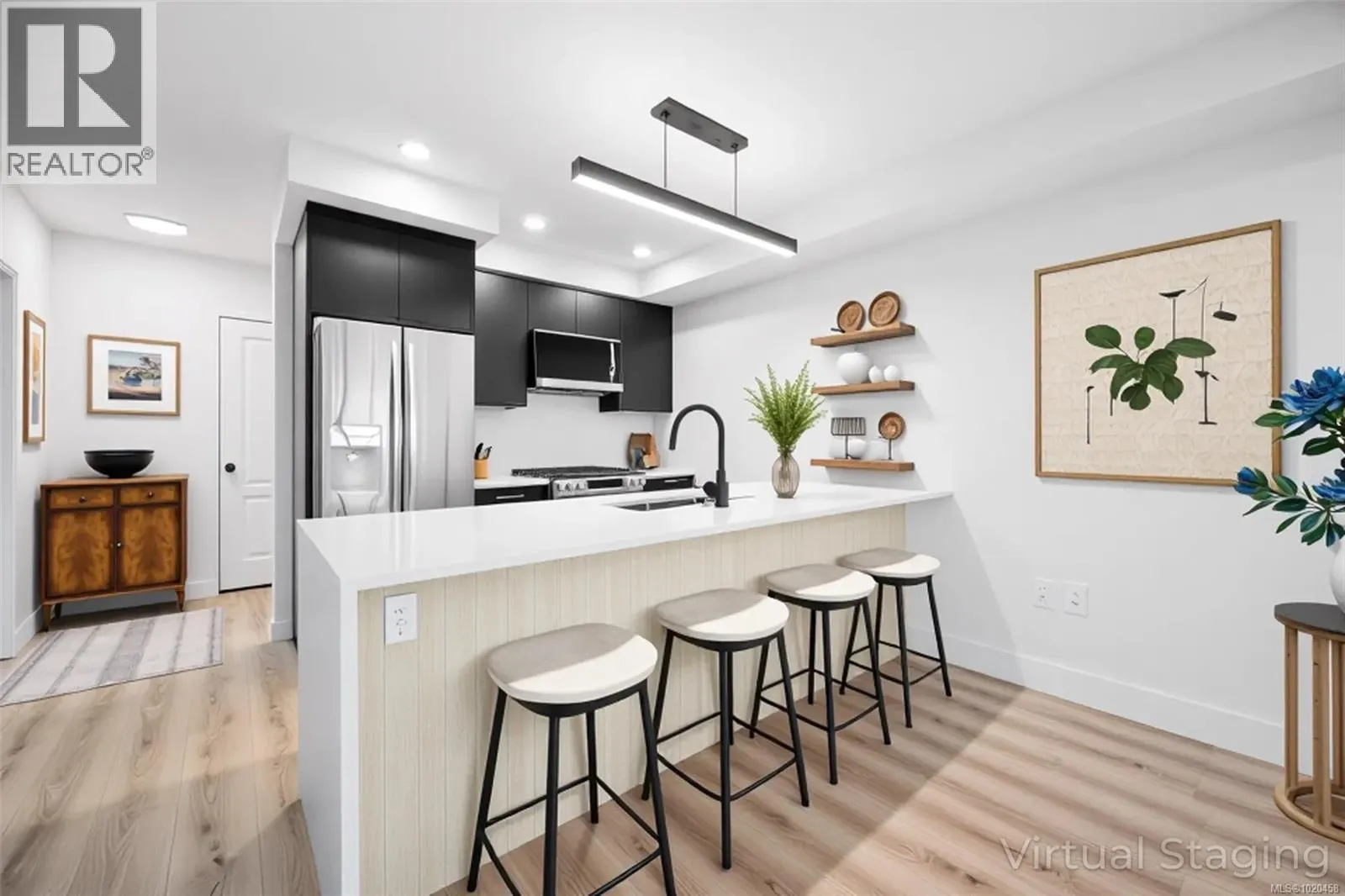 Brand new, never lived in, and best of allâno GST. Welcome to Lumina, one of Nanaimoâs newest modern residential communities. This top-floor corner suite offers stunning ocean views, two bedrooms, two bathrooms, and a bright open-concept layout with high-end finishings throughout. The floor plan is perfect for working professionals or young families who want style, convenience, and low monthly costsâthe strata fee is only $222 per month. Bring your pet along, maybe use the second bedroom as a home office or you can rent this beautiful suite as an investment. Secure underground parking, a gorgeous rooftop terrace to take in some rays and enjoy the endless ocean views, and unbeatable walkability make this home stand out. Youâre steps to the waterfront, ferries, coffee shops, grocery stores, and boutique shopping. A rare opportunity to own a brand-new home in one of Nanaimoâs ideal locations. Book your showing today! All measurements are approximate. (id:27476)