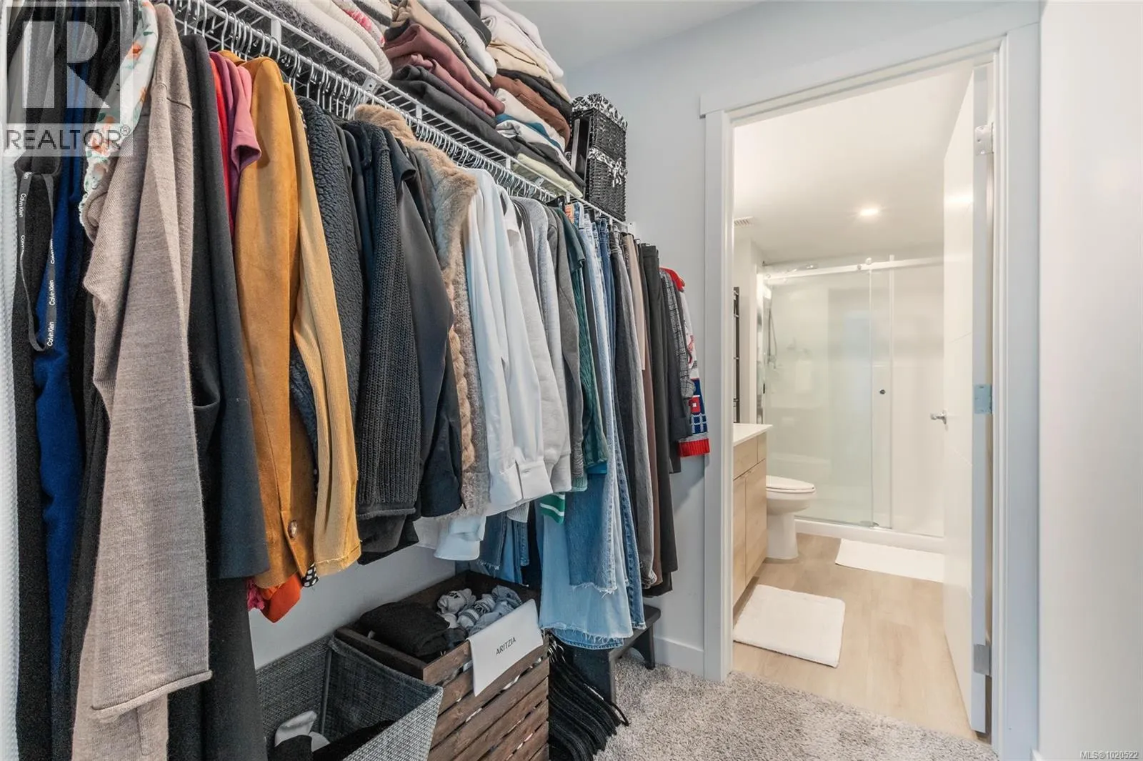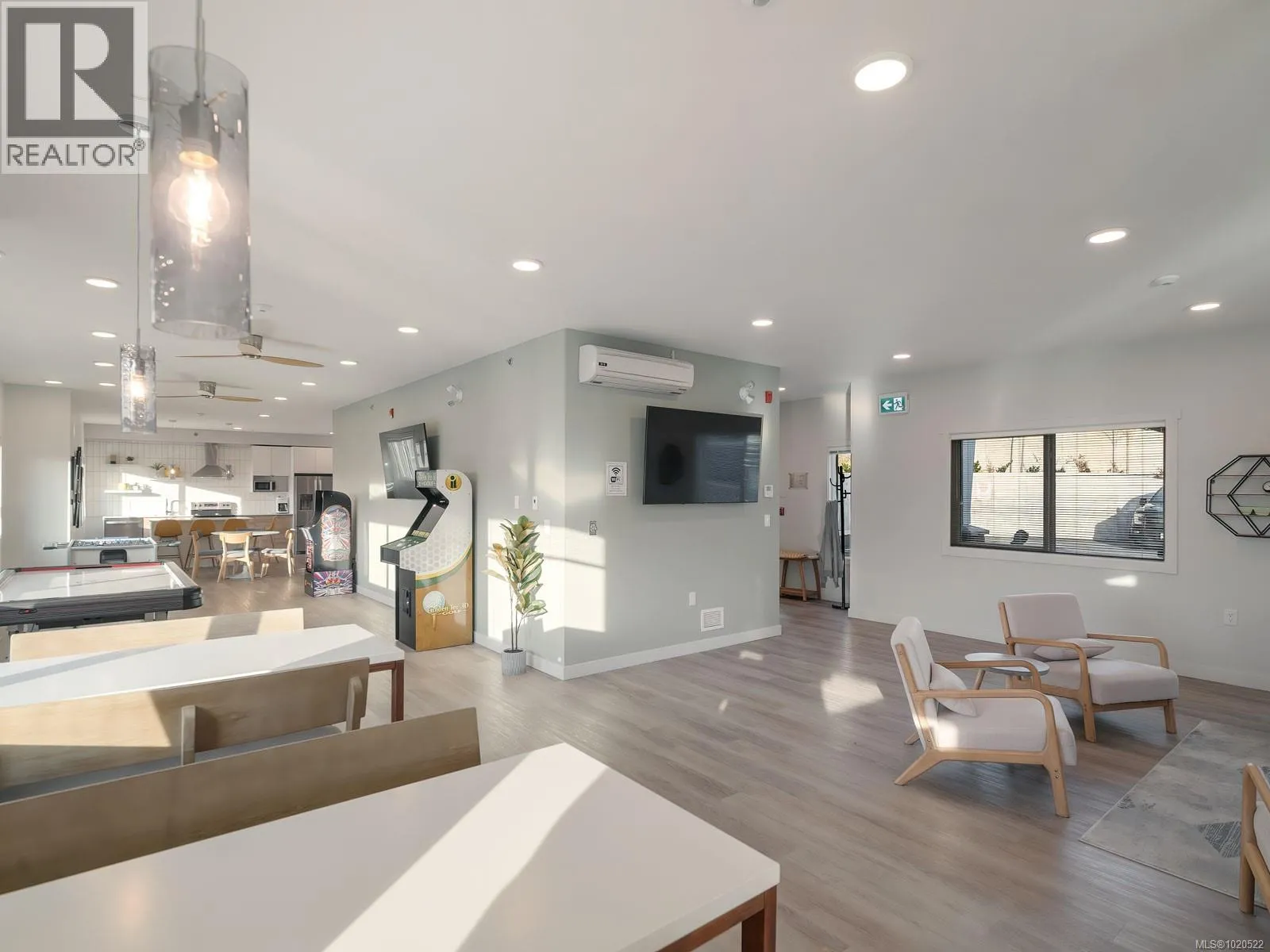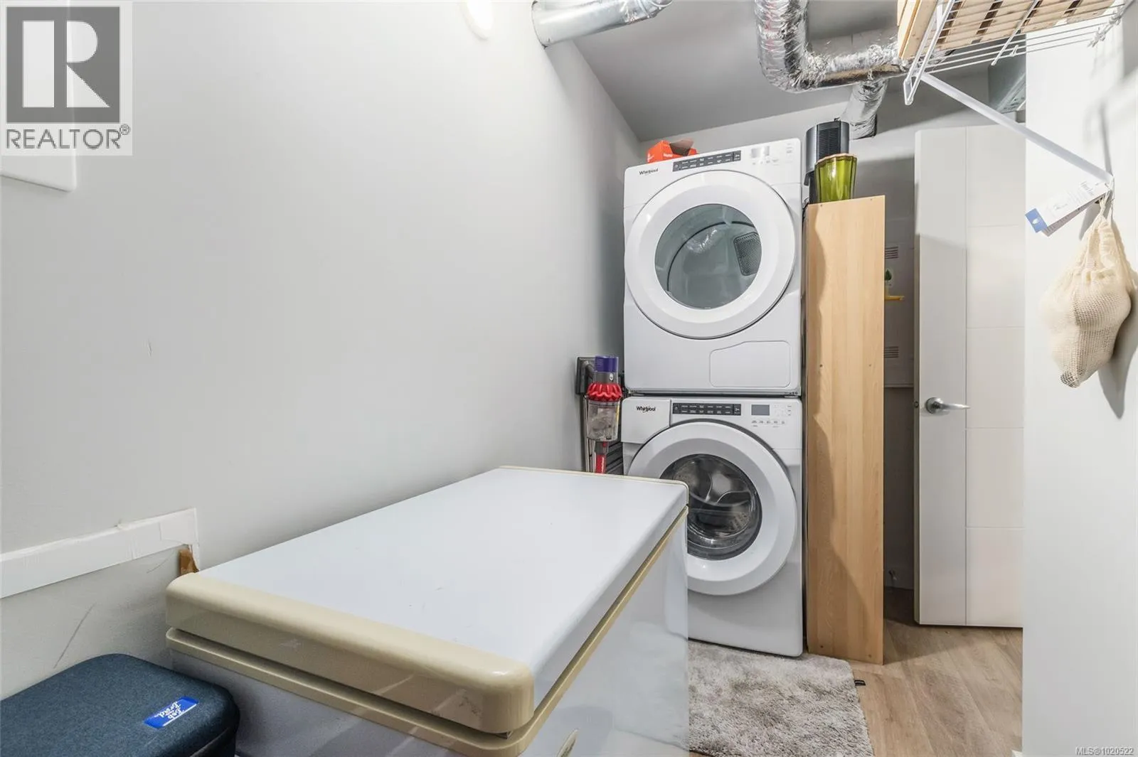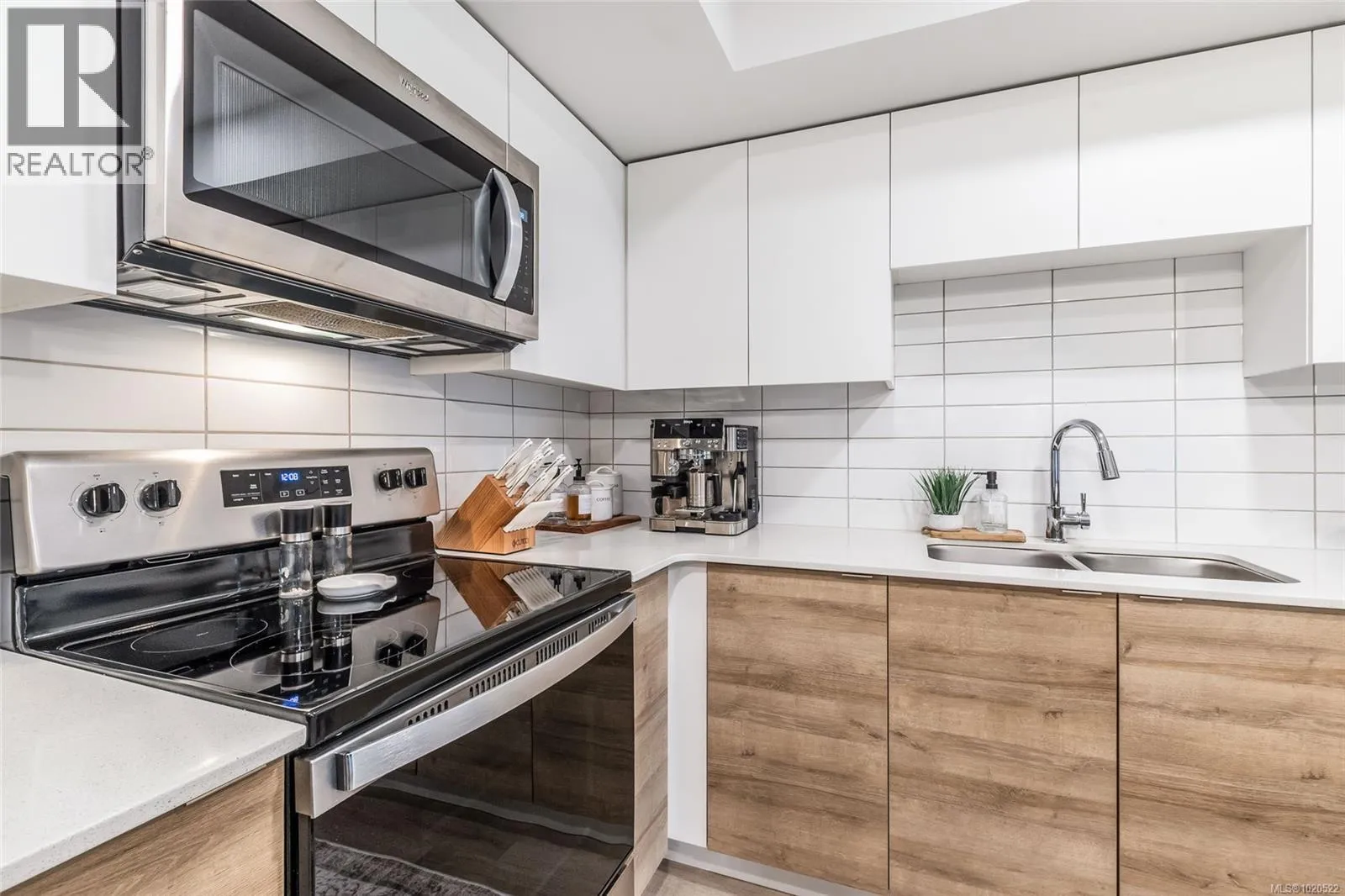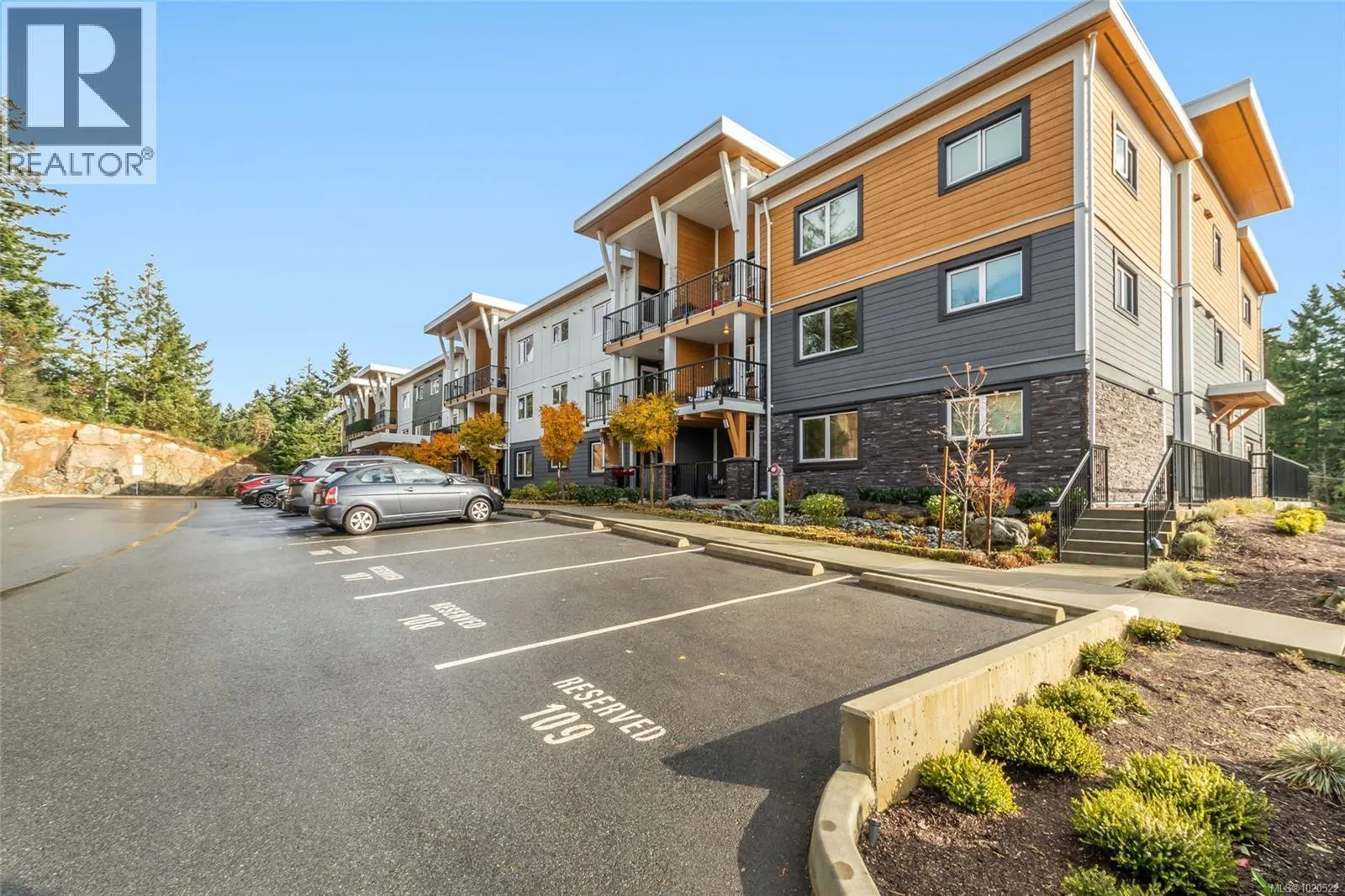This 2-bd, 2-bth unit at Lakeview Terrace is nestled in a private part of the complex overlooking an Arbutus forest. Located in the smallest of the 3 buildings this unit offers the LARGEST floor plan in the development, & is 1 of only 4 corner units w/ an OVERSIZED deck- the perfect spot to enjoy the afternoon & evening sun it gets all summer long. As a corner unit, it features an additional window in the primary, bringing in beautiful natural light. The kitchen boasts quartz countertops, S/S appl, a spacious island & tile backsplash. The primary includes a walk-through closet & 3-piece ensuite, while the secondary bedrm also offers a walk-in closet w/ a cheater to the main bath. Designed for sustainability, this home is BUILT GREEN® w/ triple-pane windows, solar panels, an HRV system, & a heat-pump hot water tank, ensuring lower strata fees & utility costs. The unit includes 1 parking stall & a bike storage locker. Residents enjoy access to an impressive clubhouse with a gym & yoga area, community lounge, and full kitchen. Ideally located in North Nanaimo, this unit is steps from Long Lake, walking trails, transit routes, and Nanaimo North Town Centre. Potential eligibility for CMHC rebate (Buyer to verify). (id:27476)
