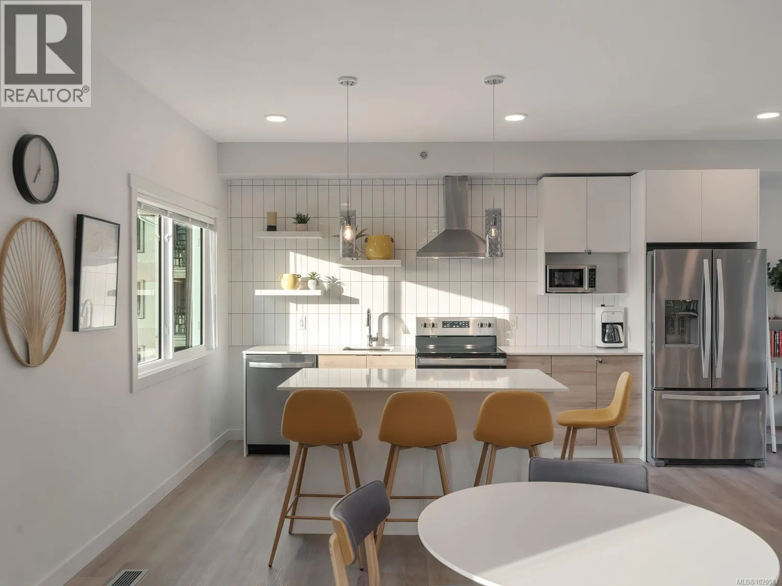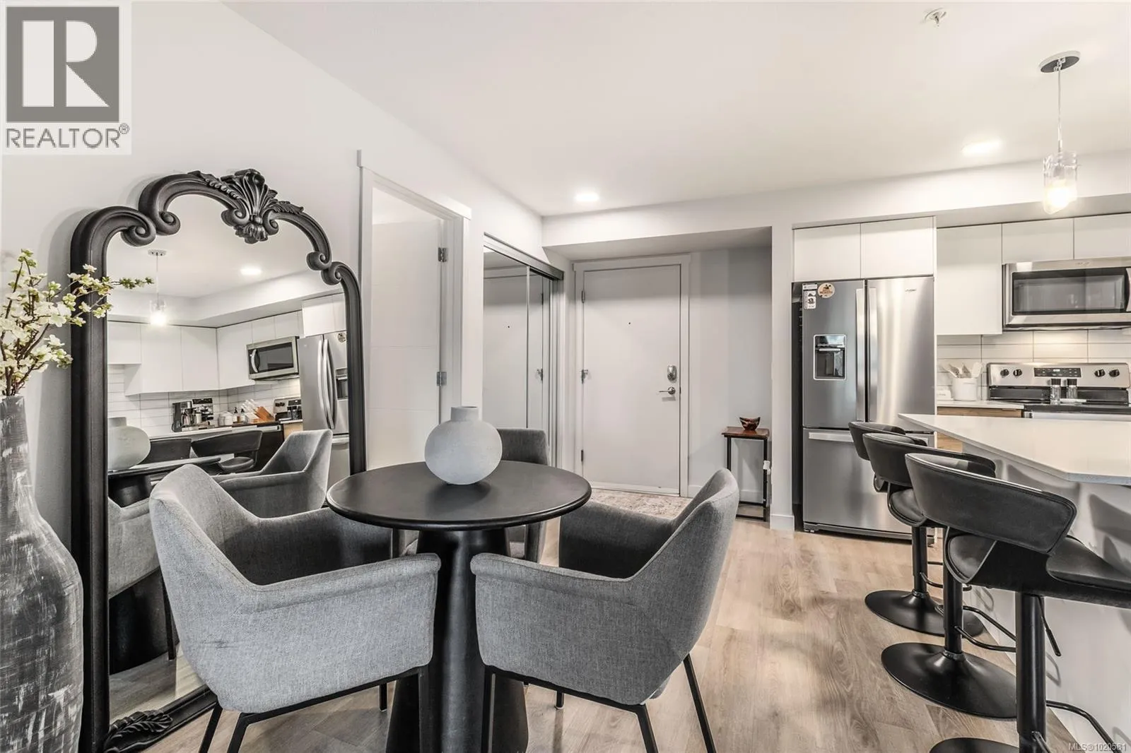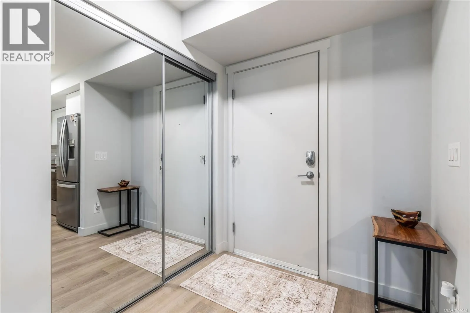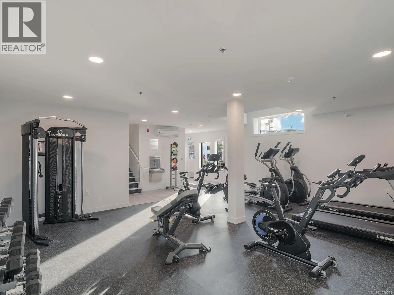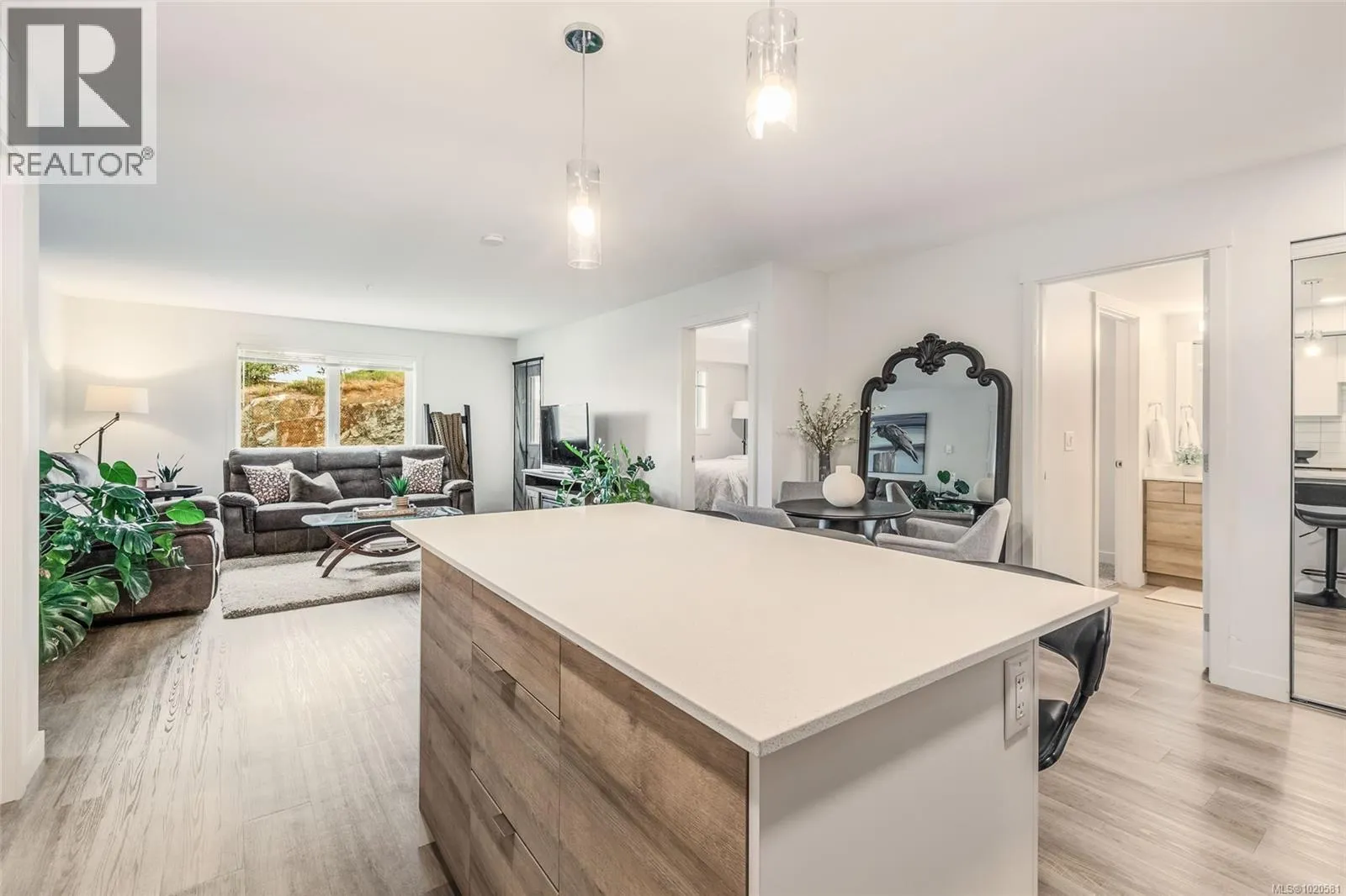 This 2-bd, 2-bth unit at Lakeview Terrace is nestled in a private part of the complex overlooking an Arbutus forest. Located in the smallest of the 3 buildings this unit offers the LARGEST floor plan in the development, & is 1 of only 4 corner units w/ an OVERSIZED deck- the perfect spot to enjoy the afternoon & evening sun it gets all summer long. As a corner unit, it features an additional window in the primary, bringing in beautiful natural light. The kitchen boasts quartz countertops, S/S appl, a spacious island & tile backsplash. The primary includes a walk-through closet & 3-piece ensuite, while the secondary bedrm also offers a walk-in closet w/ a cheater to the main bath. Designed for sustainability, this home is BUILT GREEN® w/ triple-pane windows, solar panels, an HRV system, & a heat-pump hot water tank, ensuring lower strata fees & utility costs. The unit includes 1 parking stall & a bike storage locker. Residents enjoy access to an impressive clubhouse with a gym & yoga area, community lounge, and full kitchen. Ideally located in North Nanaimo, this unit is steps from Long Lake, walking trails, transit routes, and Nanaimo North Town Centre. Potential eligibility for CMHC rebate (Buyer to verify). (id:27476)