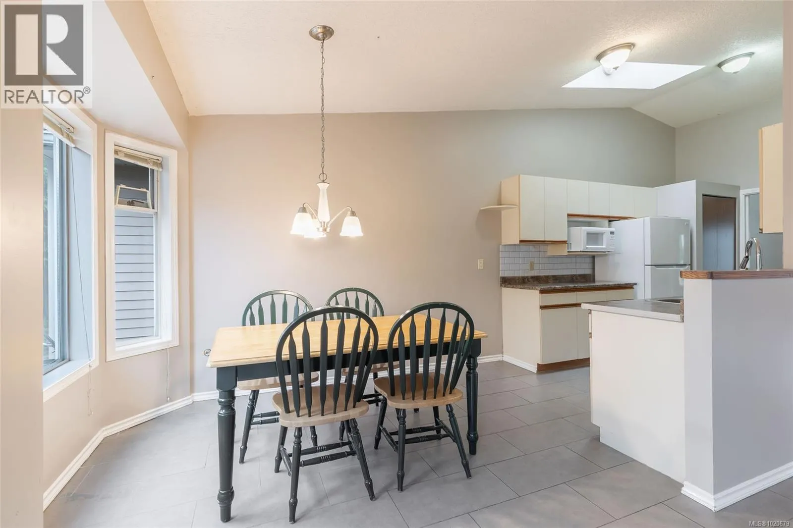 Set on a quiet, sought-after street in North Nanaimo, this well-cared-for 1,468 sq. ft. rancher offers an exceptional blend of comfort and location. Bright and inviting, the home features 3 bedrooms, 2 bathrooms, vaulted ceilings, skylights, and generous windows that fill the interior with natural light. Engineered wood and tile flooring, along with updated paint, create a warm and appealing atmosphere. The galley kitchen opens to an eating nook and a cozy family room overlooking the landscaped backyard, while the living and dining areas include a welcoming fireplace. The primary bedroom provides a 3-piece ensuite and peaceful garden views. A patio off the kitchen leads to a manicured mix of lawn and gardens, ideal for relaxing or entertaining. Additional highlights include an HRV system, double garage, and ample parking. Steps from Icarus Driveâs waterfront access and close to Dover Bay and McGirr schools, parks, and shopping. All measurements are approximate; verify if important. (id:27476)