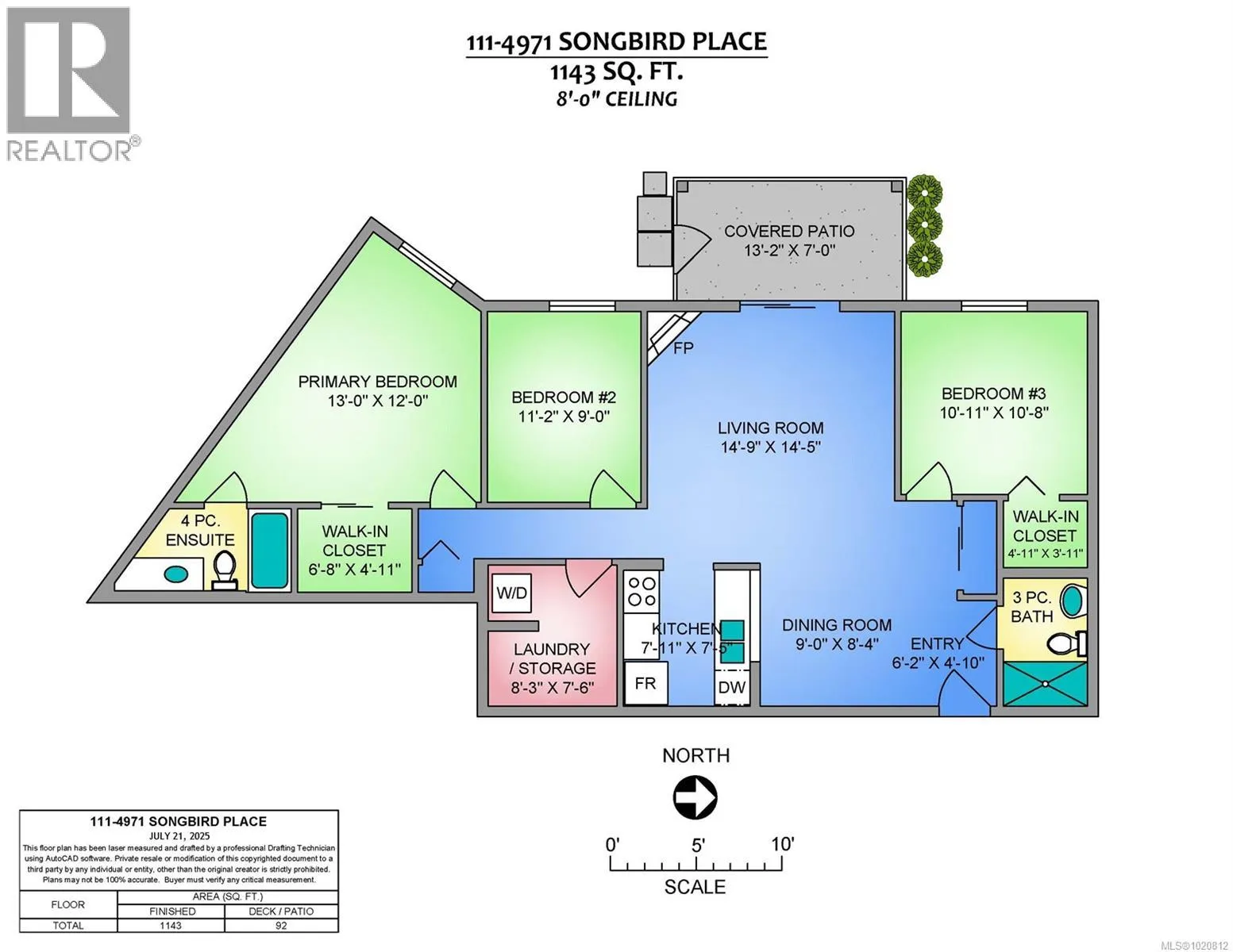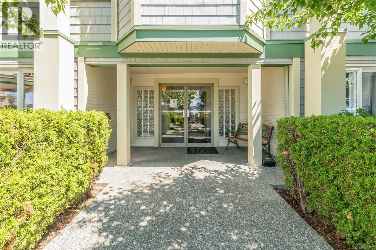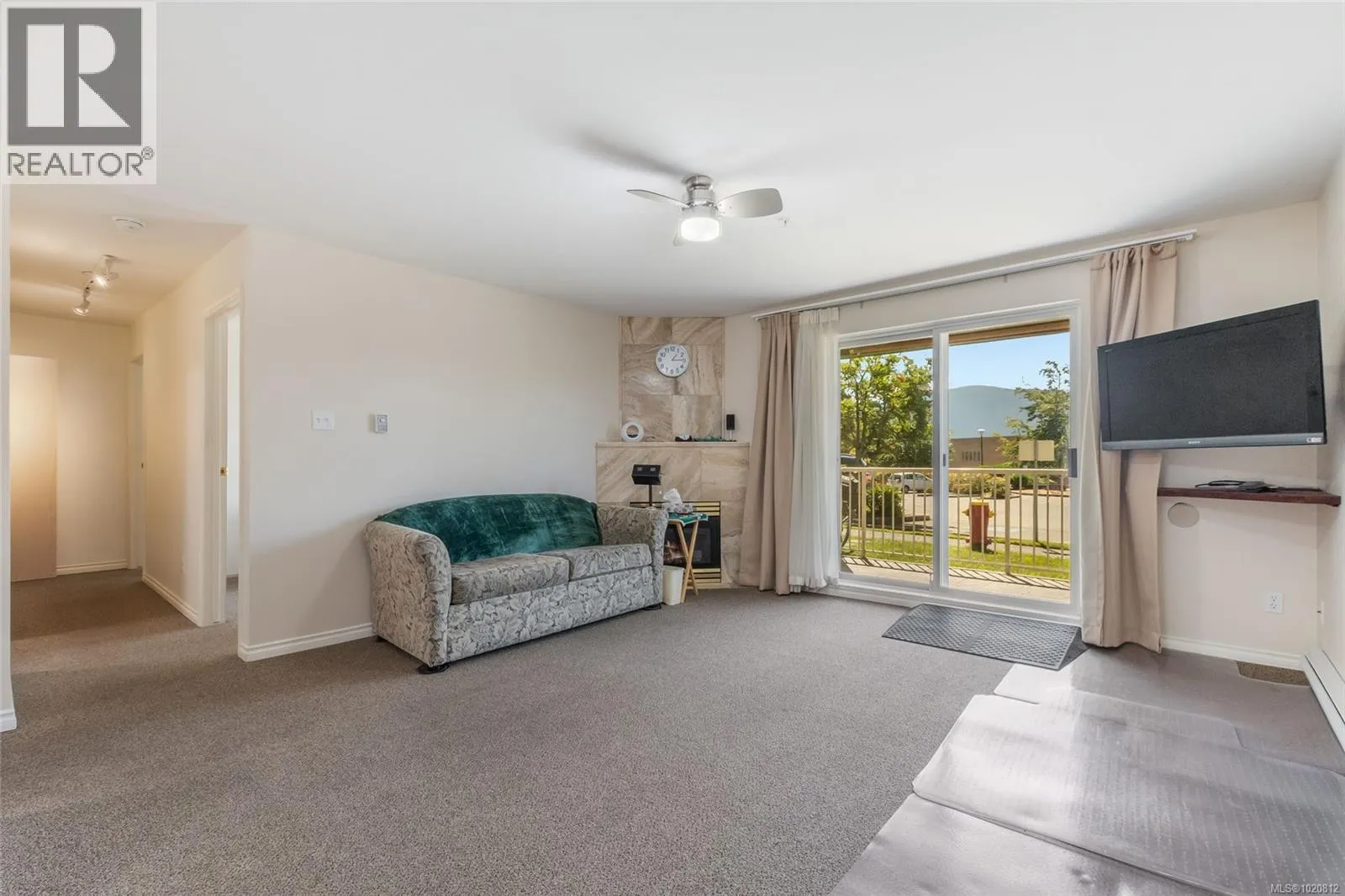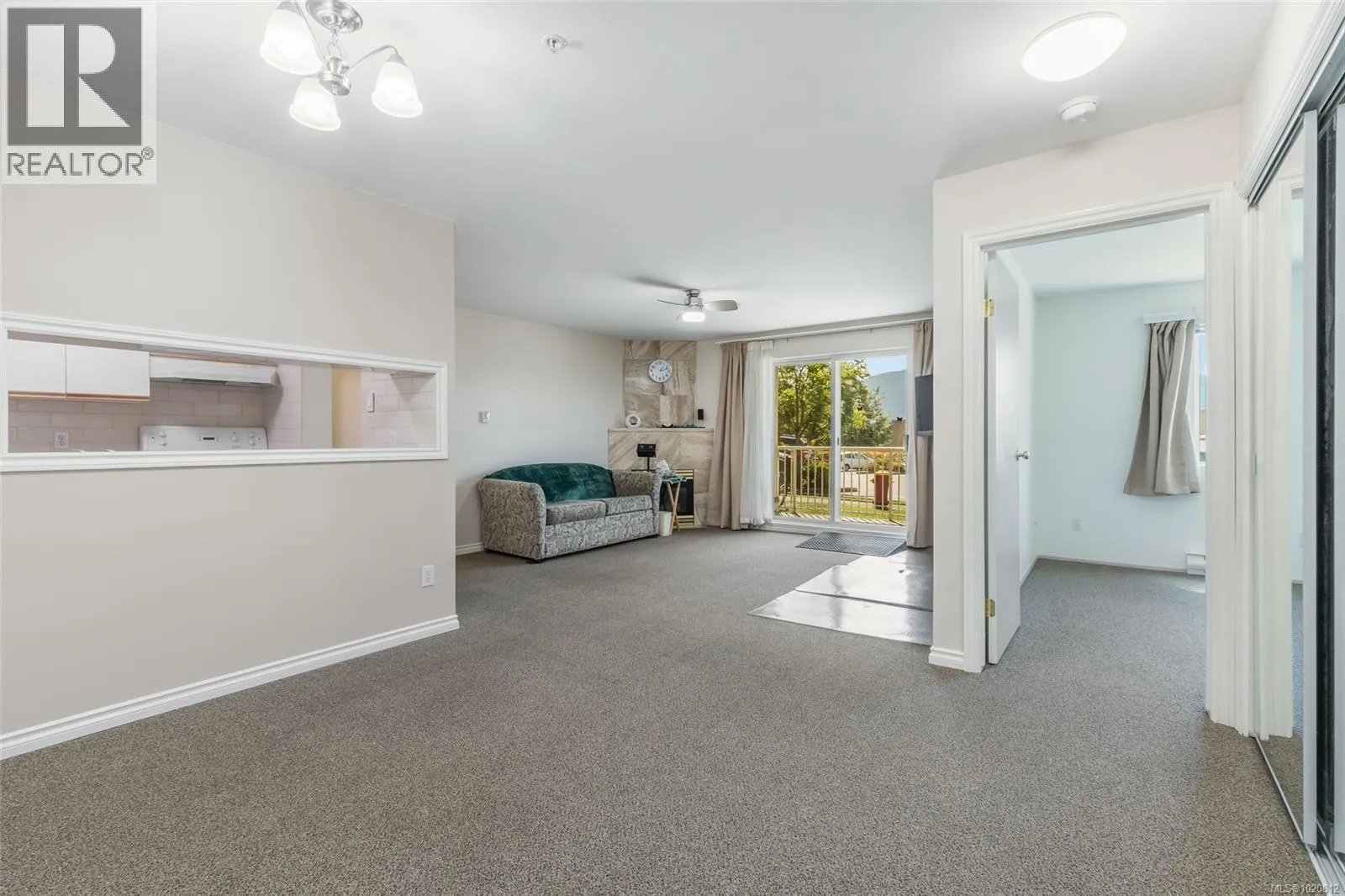 Great value for a 1143 sq ft 2 Bed + Den, 2 Bath Ground Level Condo in Popular Rutherford Pointe This unique floor plan offers a contemporary kitchen with abundance of cabinets and counter space, a separate dining area, and a spacious 14x14 living room with feature gas fireplace and sliders to a private patio with breathtaking Mount Benson views. Bedrooms are on opposite sides for privacyâprimary includes a walk-in closet and 4-piece ensuite with jetted tub, and the second bedroom also has a walk-in and large picture window. The den is opposite a laundry area with full-size stacker washer/dryer and oversized pantry/storage. Additional features include neutral colour tones,updated fixtures, flooring, tinted windows, and 3-piece main bath. Enjoy the pull-down sunshades on the patio, easy access in and out, secured entry, and underground parking if available. Close to shopping, theatre, gyms, restaurants, and transit. Size approx verify if important (id:27476)