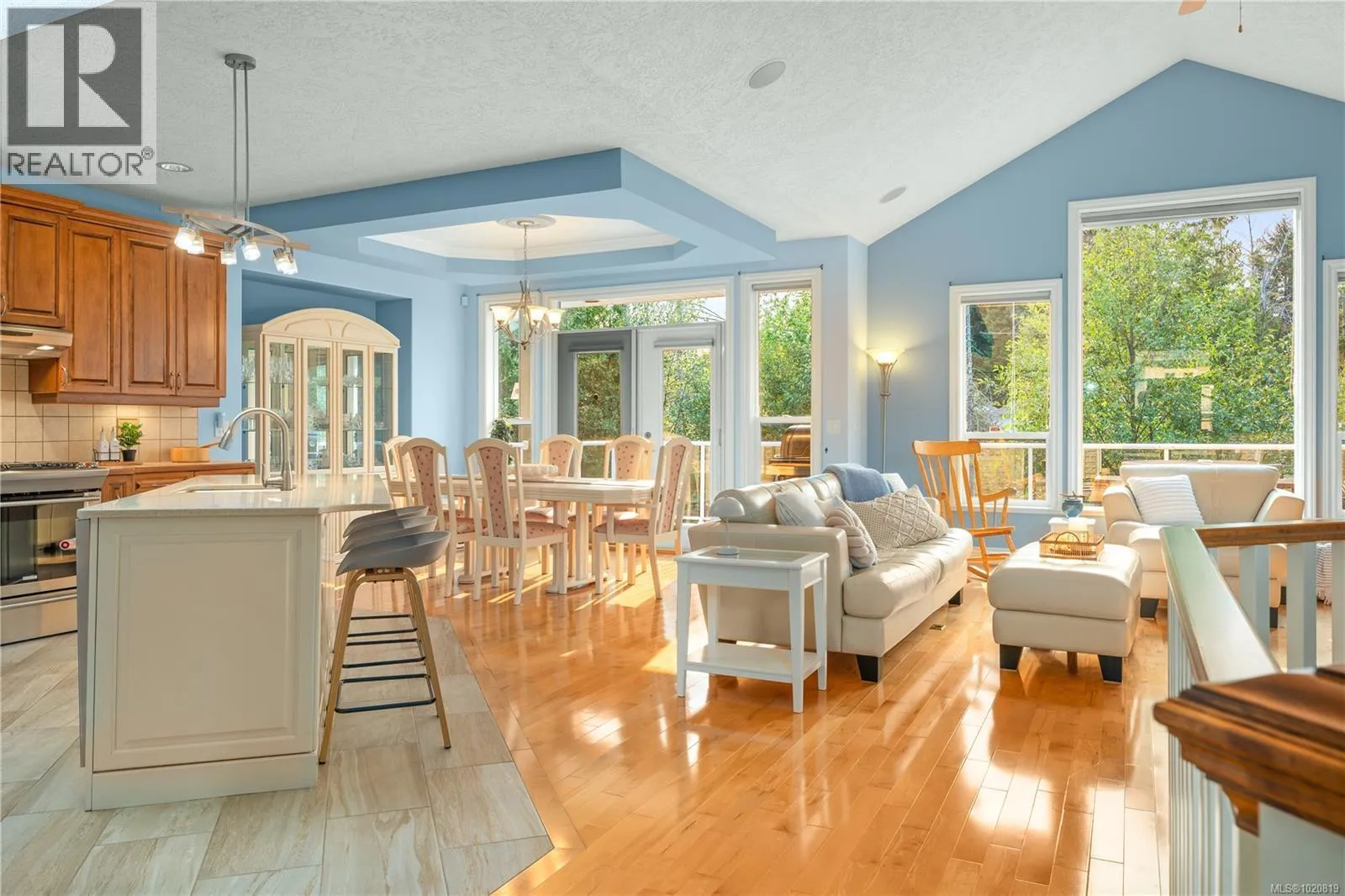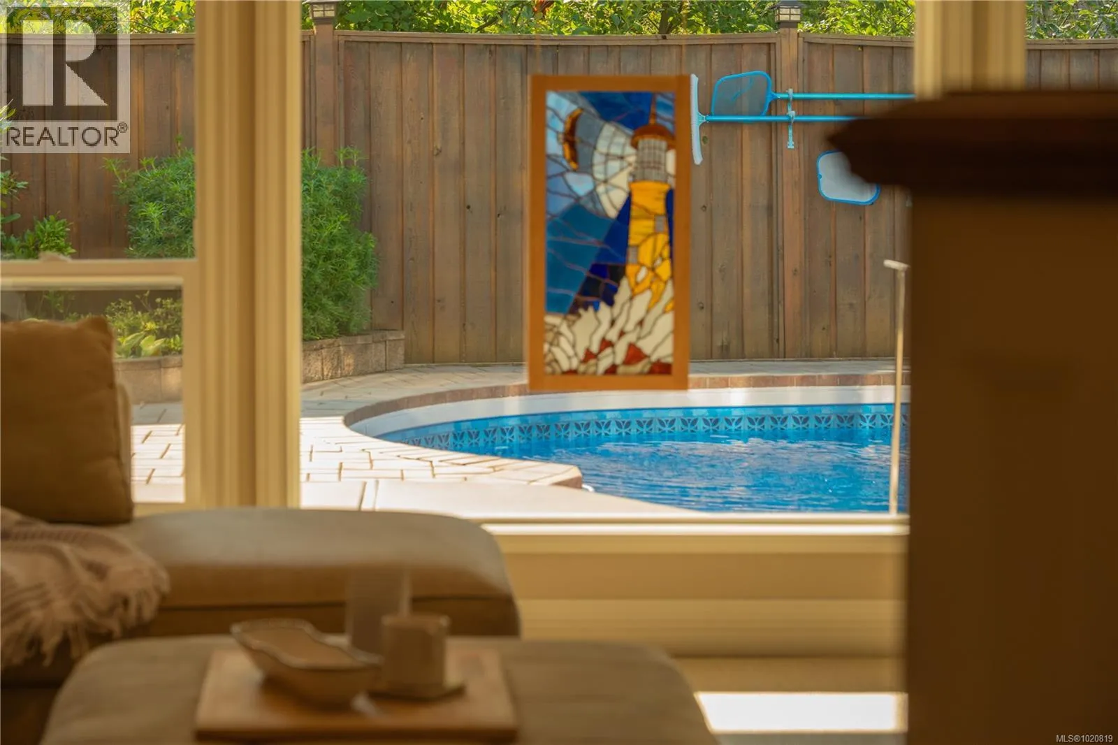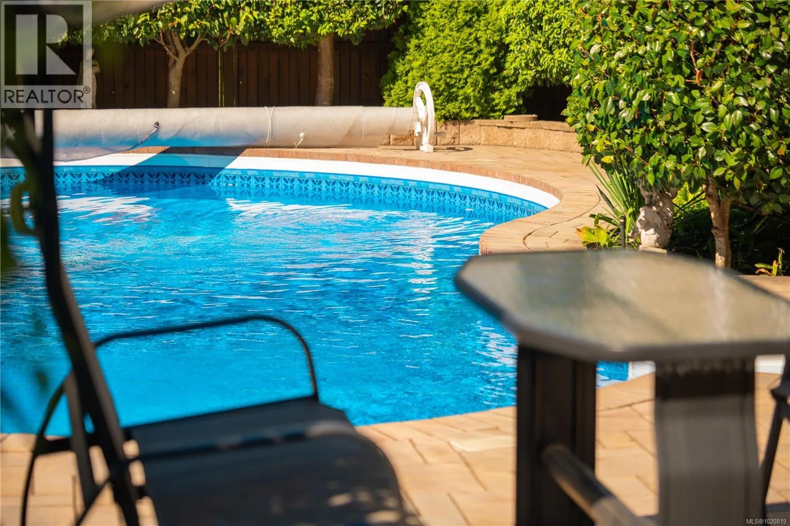 Custom one-owner North Jingle Pot home with in-ground saltwater pool backing onto private treed parkland. Built in 2005 by Georgiaview Homes, this main-level entry with walkout basement features 9â14 ft ceilings, west-facing windows & maple hardwood. New systems include: 50 year roof, heat pump, high efficiency furnace, gas HWT, deck & pool pump. The primary suite overlooks the pool & trees offering a walk-in closet, spa-like ensuite & french doors to the deck. Timeless kitchen with quartz island, maple cabinets, walk-in pantry & gas range. Main floor also includes office, library & powder room. Lower level boasts a bar, 2 bedrooms, craft room & laundry/mechanical/storage plus backyard views. The private rear retreat has paver patio, firepit, built-in lighting & low-maintenance landscaping with 4-zone irrigation. Extras: gas fireplaces on both levels, heated tile, phantom screens, security & EV charger in dbl garage. Located on a quiet no-through streetâthis is a forever home! Contact Team Invest for your private viewing 250-739-5678 or www.TeamInvestWest.com for all features. (id:27476)