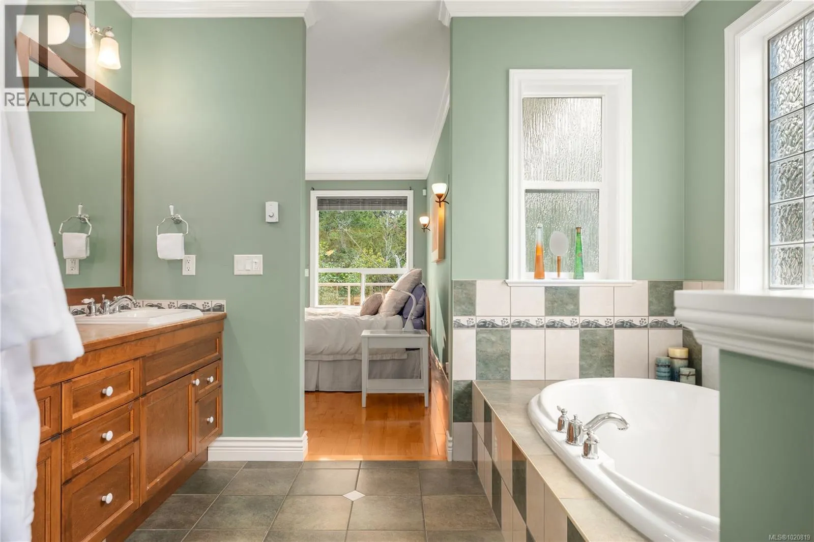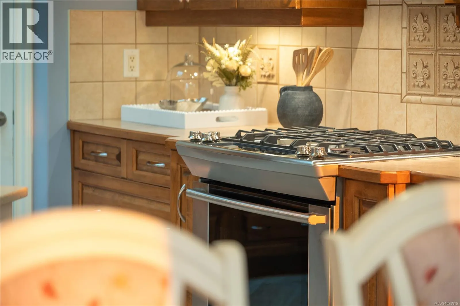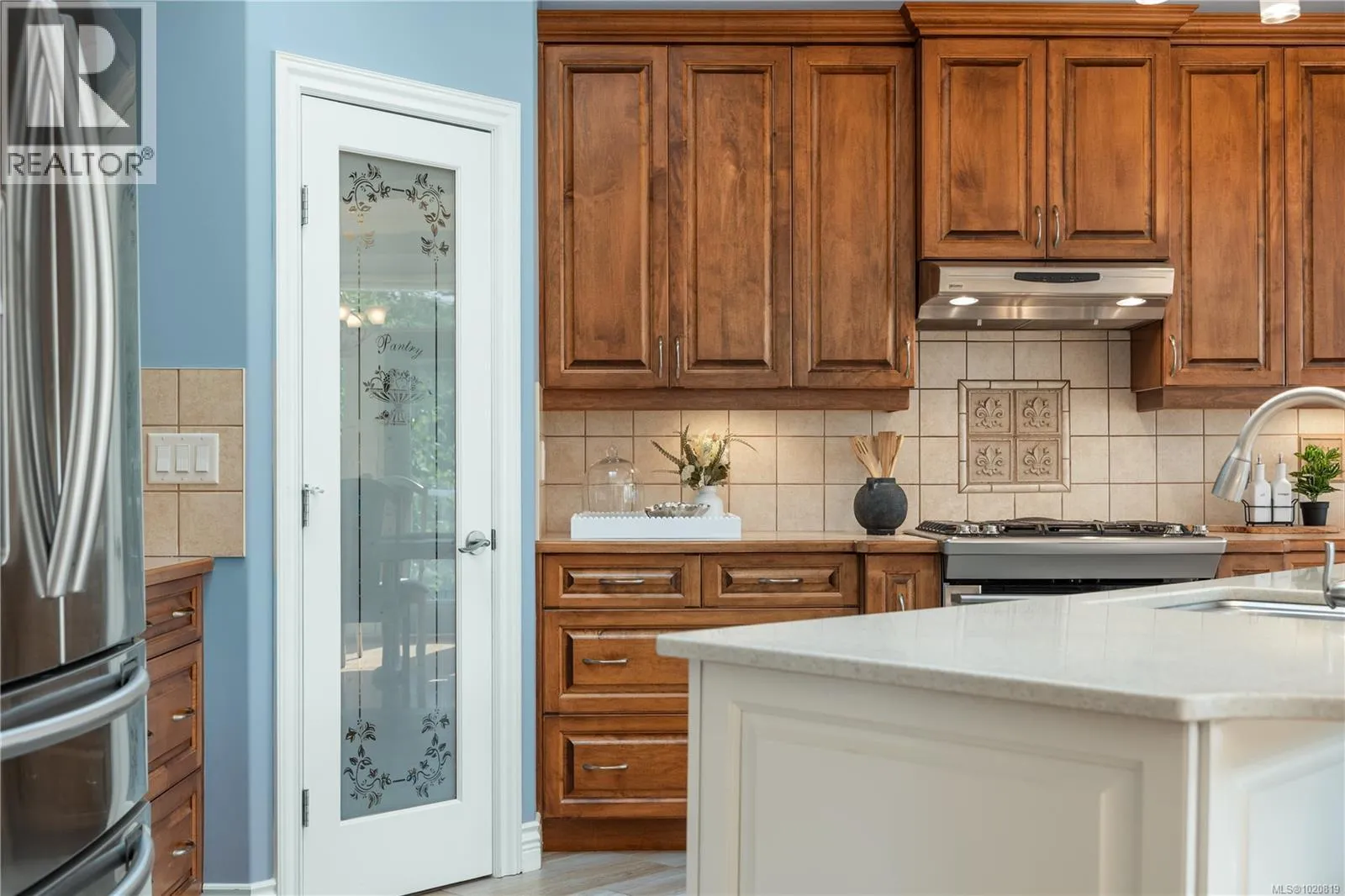 Custom one-owner North Jingle Pot home with in-ground saltwater pool backing onto private treed parkland. Built in 2005 by Georgiaview Homes, this main-level entry with walkout basement features 9â14 ft ceilings, west-facing windows & maple hardwood. New systems include: 50 year roof, heat pump, high efficiency furnace, gas HWT, deck & pool pump. The primary suite overlooks the pool & trees offering a walk-in closet, spa-like ensuite & french doors to the deck. Timeless kitchen with quartz island, maple cabinets, walk-in pantry & gas range. Main floor also includes office, library & powder room. Lower level boasts a bar, 2 bedrooms, craft room & laundry/mechanical/storage plus backyard views. The private rear retreat has paver patio, firepit, built-in lighting & low-maintenance landscaping with 4-zone irrigation. Extras: gas fireplaces on both levels, heated tile, phantom screens, security & EV charger in dbl garage. Located on a quiet no-through streetâthis is a forever home! Contact Team Invest for your private viewing 250-739-5678 or www.TeamInvestWest.com for all features. (id:27476)