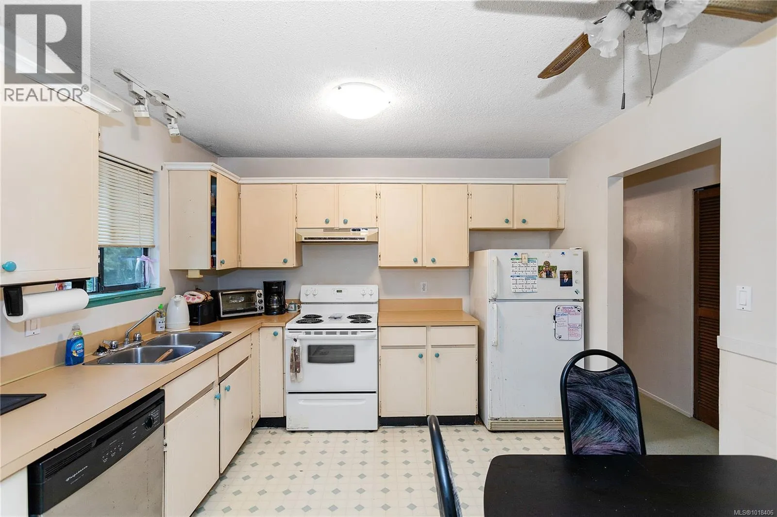 Looking for an affordable North Nanaimo family home. This 5 bed 3 bath two storey home is situated on a 7500 sqft flat lot on a quiet no thru road in the Diver's Lake area. This ideal central location is walking distance to Beban Park pool, ice rinks, Divers Lake itself, Coal Tyee school and multiple major bus routes. This split level entry home has 1955 finished sqft with 3 bedrooms up and 2 bedrooms down. The main floor has a wood burning fireplace, large kitchen and access to a rear deck overlooking the east facing yard. The lower level has a second family room with wood stove, a full sized laundry room and garage. The property has RV parking and mature landscaping. (id:27476)