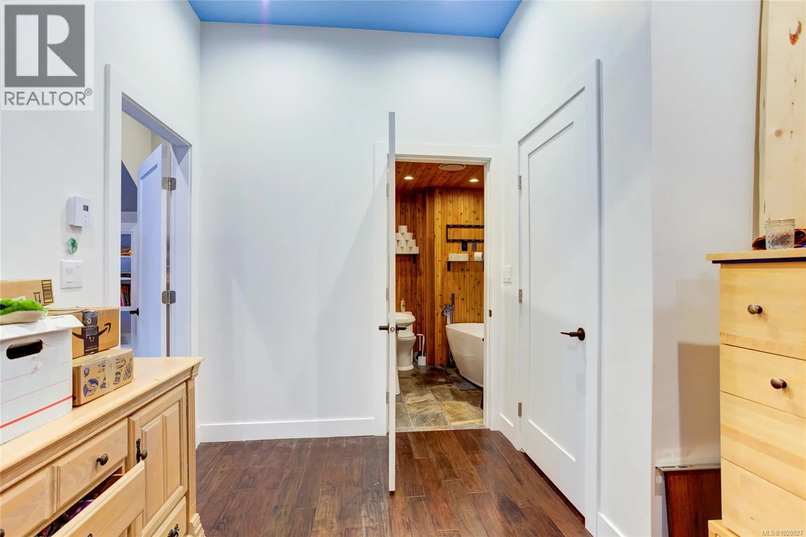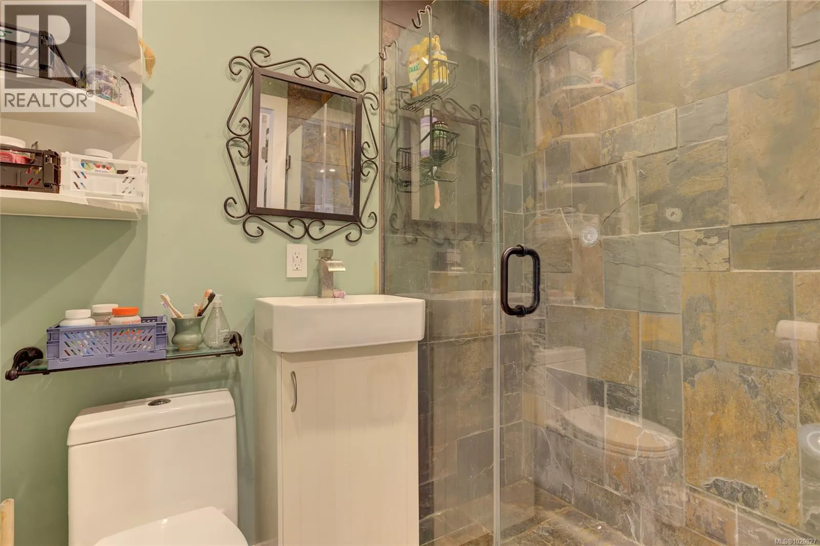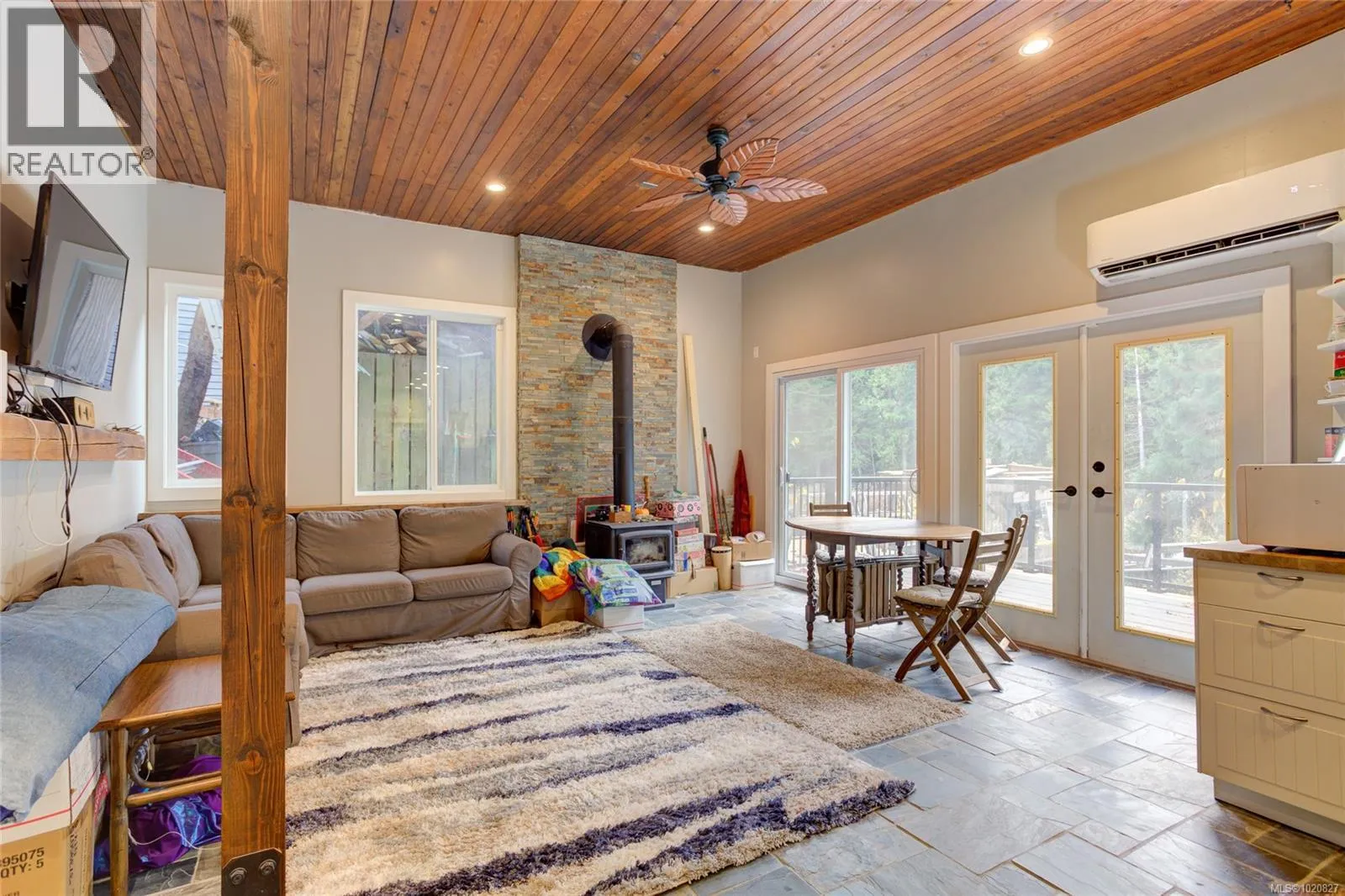 Investment or multi-generational living alert! Discover the natural beauty of your own private sanctuary in a prime Nanaimo location. Backing onto Trillium Parkâand with Long Lake along with major city amenities just moments awayâthis versatile property offers two beautifully updated living spaces (up and down) plus a charming guest/studio micro-suite. Each suite has its own entrance and balcony with peaceful views of the pond and idyllic backyard. The upper level is bright and open, featuring 2 bedrooms and 1 bathroom. The lower level includes a galley style kitchen that opens to a spacious living area with high ceilings and abundant windows, along with 2 bedrooms and 2 bathroomsâincluding an ensuite with a relaxing soaker tub. With solar panels, a cozy woodstove, heat pump, thermal windows, and numerous updates throughout, this home is move-in ready and perfect for generating immediate rental income or accommodating extended family. (id:27476)