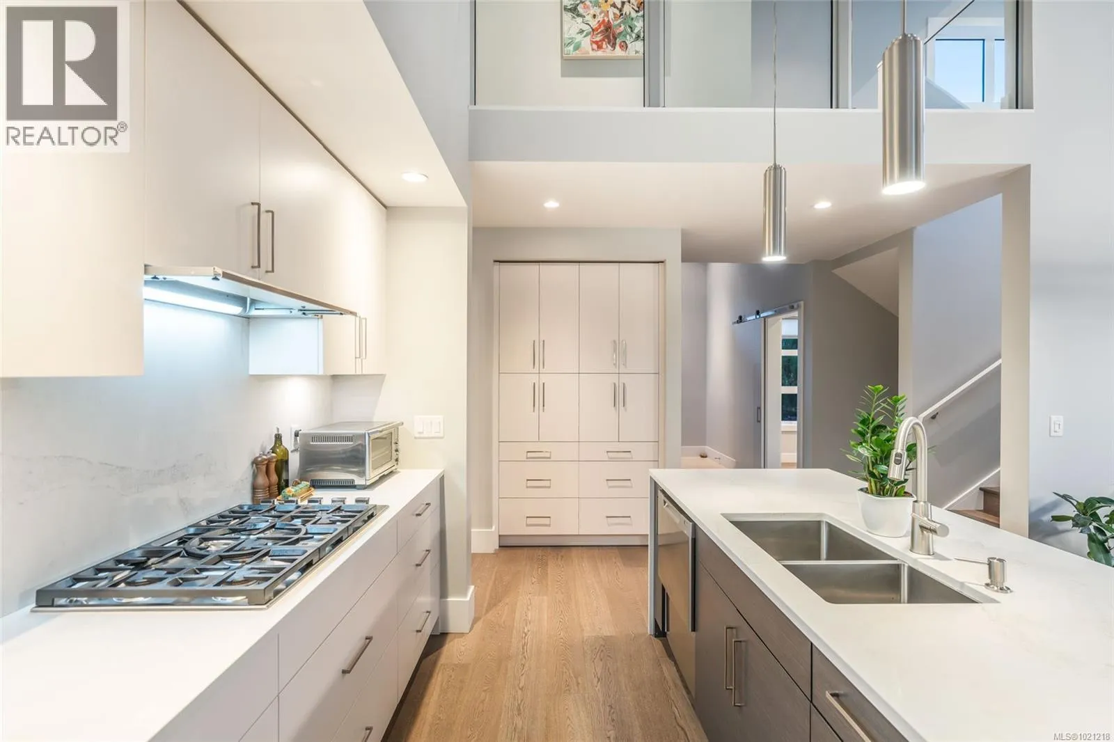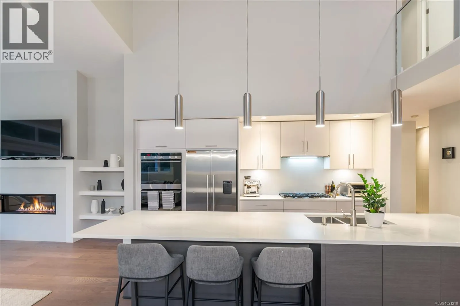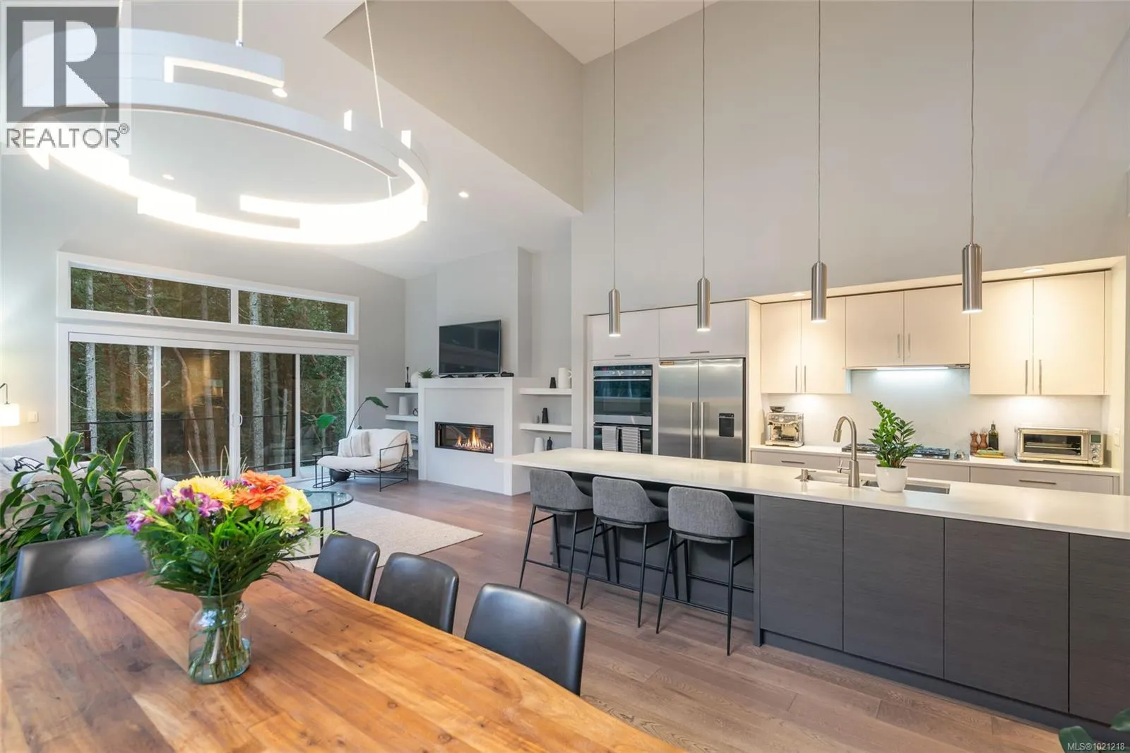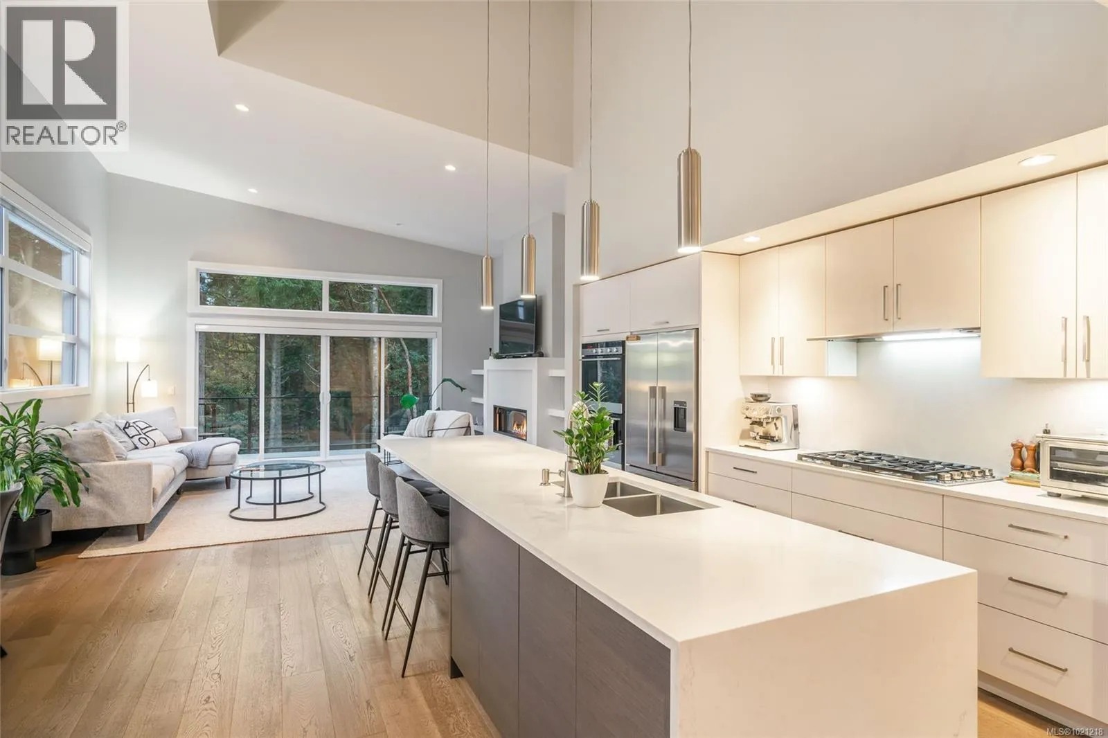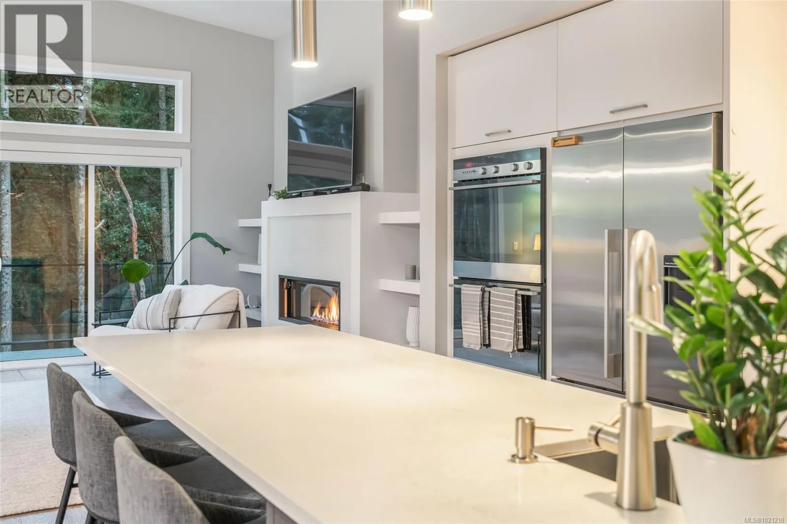 Exceptional West Coast main-level living residence in the highly desirable community of The Ridge, perfectly positioned on one of the largest lots in the neighbourhood. Backing onto protected forest and parkland, this thoughtfully designed home offers direct access to miles of walking trails and a level of privacy rarely found within city limits. From the moment you step inside, the bright and open layout showcases large windows that frame the surrounding natural landscape and a spacious great room ideal for everyday living or entertaining. A double sliding door extends the living space onto an expansive deck overlooking the fully fenced yard, complete with a firepit area for evening gatherings. At the heart of the home, the gourmet kitchen combines style and function with Fisher & Paykel double wall ovens, a 5-burner gas cooktop, double dishwasher, a beverage fridge, quartz countertops and backsplash, extensive millwork cabinetry, and a generous island perfect for meal prep or hosting. The primary bedroom feature its own access to the deck and a spa-inspired ensuite with a deep soaker tub, walk-in rain shower, heated tile flooring, and a custom-designed walk-in closet with built-in shelving and cabinetry. A den off the entry makes an ideal home office, while the powder room, laundry room, and an organized boot room connecting to the double garage complete the main level. The open staircase, designed to overlook the main living area, leads to the upper level where two well-appointed bedrooms and a 5-piece bathroom with heated floor provide a comfortable space for family or guests. Additional highlights include engineered hardwood flooring throughout the main level, a landscaped yard with irrigation, and a huge crawl space with exterior access for exceptional storage. This is West Coast living surrounded by natural beauty, an inviting, modern home in a warm and connected neighbourhood where the sounds of the city melt away. (id:27476)