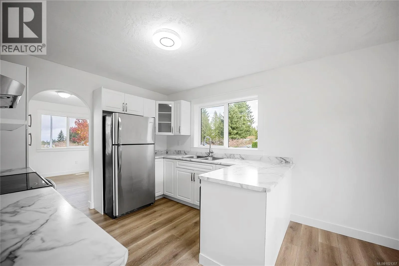 Welcome to 6001 Butcher Road, a beautifully updated 5-bedroom, 3-bathroom home offering nearly 2,400 sq ft of bright, modern living in one of North Nanaimoâs most sought-after neighbourhoods. Sitting proudly on a sunny corner lot, this residence blends thoughtful updates, long-term efficiency, and exceptional indoorâoutdoor living. The exterior has undergone a substantial upgrade, featuring new Hardie-plank siding with R5 insulation, a brand-new standing-seam metal roof with engineered air-gap system, new windows, and a new furnace and heat pump for year-round comfort (2025). Together, these improvements deliver durability, energy savings, and striking curb appeal enhanced by new exterior lighting and fresh landscaping. Inside, the home feels bright, calm, and move-in ready. Wide-plank high quality laminate floors, updated bathrooms, new lighting, and fresh paint elevate each space. The main level offers excellent flow: a spacious & bright kitchen, an adjacent dining area, a large family room, and a generous living room with a beautiful vaulted feature window. Three bedrooms complete this upper level, including a comfortable primary suite with full ensuite. The lower level is ideal for families, guests, or extended living arrangements. It features two additional bedrooms, a full bathroom, a large recreation room, laundry room, storage, and a welcoming foyer. Roughed in plumbing for wetbar or suite potential! Outdoor living shines here, with a massive entertainerâs deck, patios, and a private fenced yard offering plenty of room to relax, garden, or gather. Carriage home potential also exists! Located just minutes from top-rated schools (McGirr Elementary, Dover Bay Secondary), neighbourhood parks, Woodgrove Centre, grocery stores, restaurants, and Nanaimoâs best beaches such as Neck Point and Piperâs Lagoon. A beautifully updated, efficient, and versatile home in an unbeatable North Nanaimo location! Measurements approx. (id:27476)