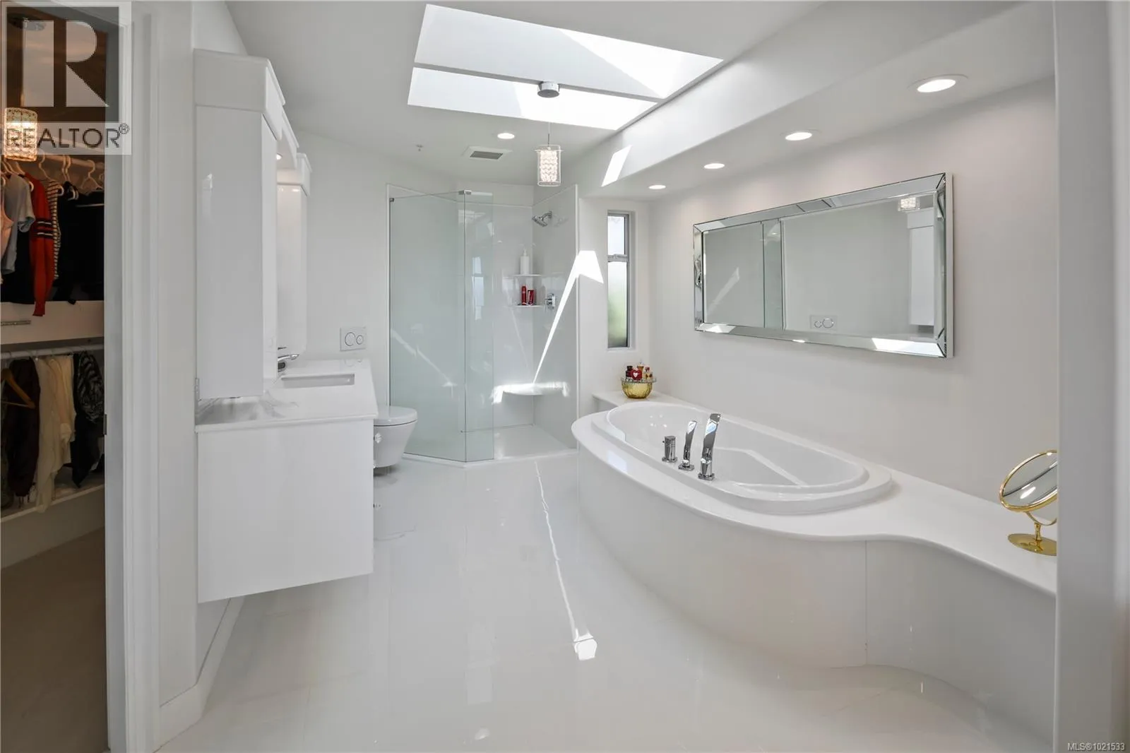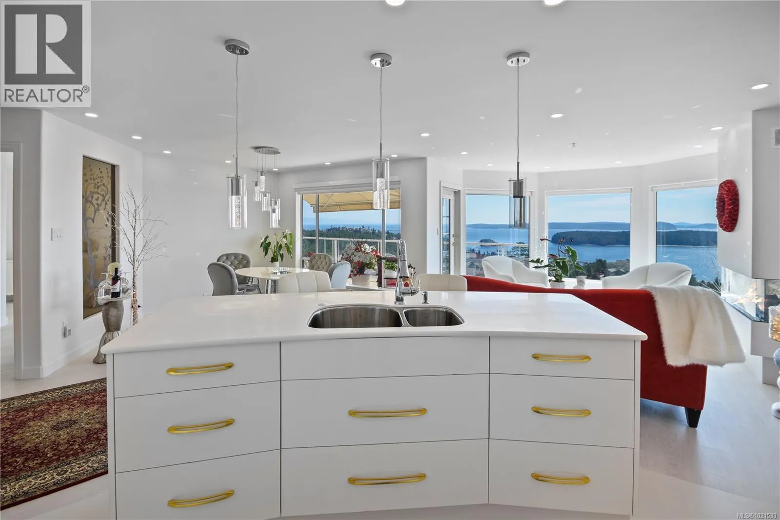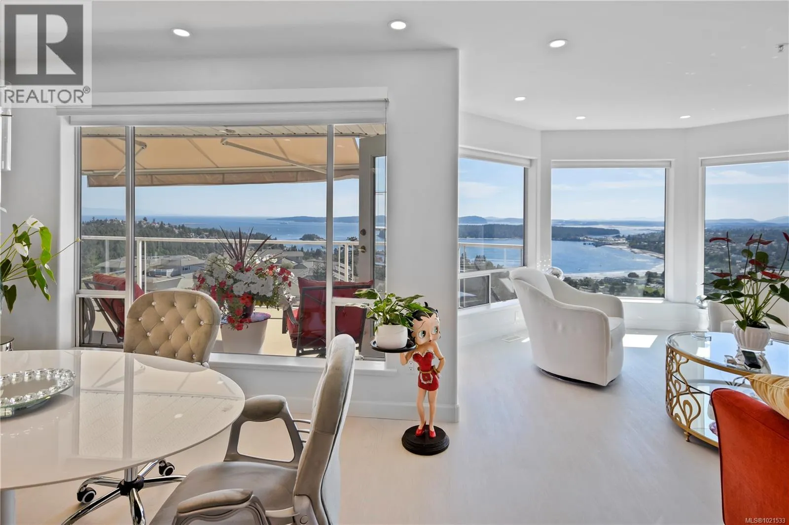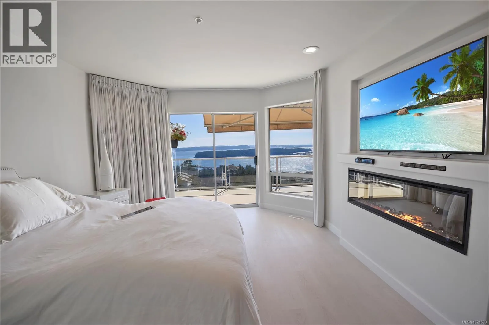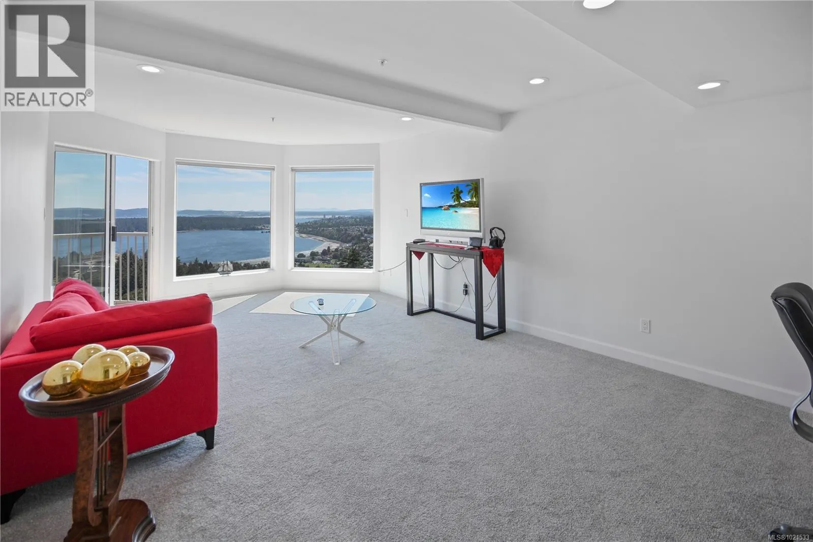 Panoramic Views & High-End Renovation This exceptional condo captures some of Nanaimoâs most spectacular vistas â stretching from the slopes of Mt. Benson across Departure Bay and out to the distant Coastal Mountains. Every detail of this home has been meticulously upgraded, showcasing a full high-end renovation with uncompromising quality. Smooth ceilings, refined finishes, and premium materials establish an elegant, modern atmosphere throughout. The chef-inspired kitchen is a standout, featuring a Miele fridge-freezer, induction cooktop, and Miele range, all seamlessly integrated into custom cabinetry. The living room and primary suite each offer their own fireplaces, creating warmth, ambiance, and an inviting sense of comfort. The spa-inspired ensuite feels like a private retreat, complete with heated floors, a luxurious soaker tub, and a separate walk-in shower. Thoughtful smart upgrades elevate everyday living â including electric skylight shades, an automatic sunshade with wind override, EV charger readiness, and a 2019 heat pump/furnace for year-round efficiency. An elegant entry/laundry area, dedicated media room, wine storage, and additional flexible spaces deliver practicality that matches the homeâs elevated style. With 2 bedrooms, 3 bathrooms, a spacious family room, and generous parking, this residence offers unmatched luxury, comfort, and convenience. This is truly a home you wonât want to miss. (id:27476)