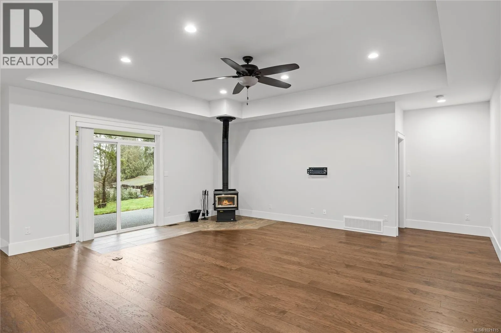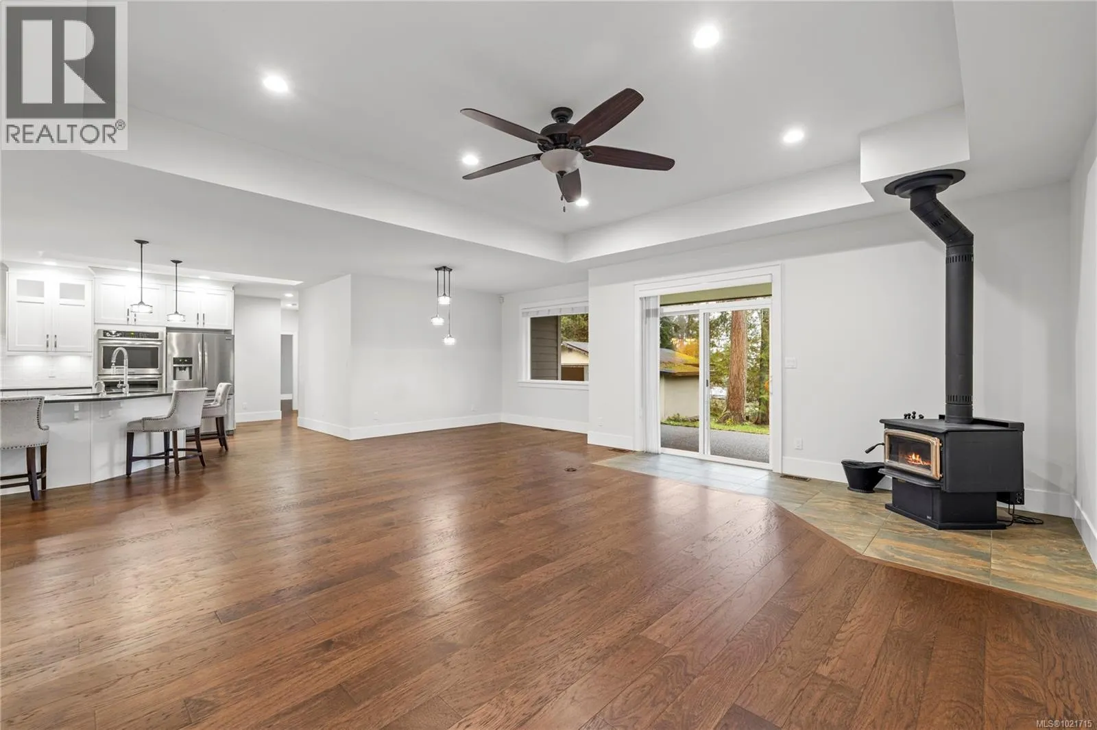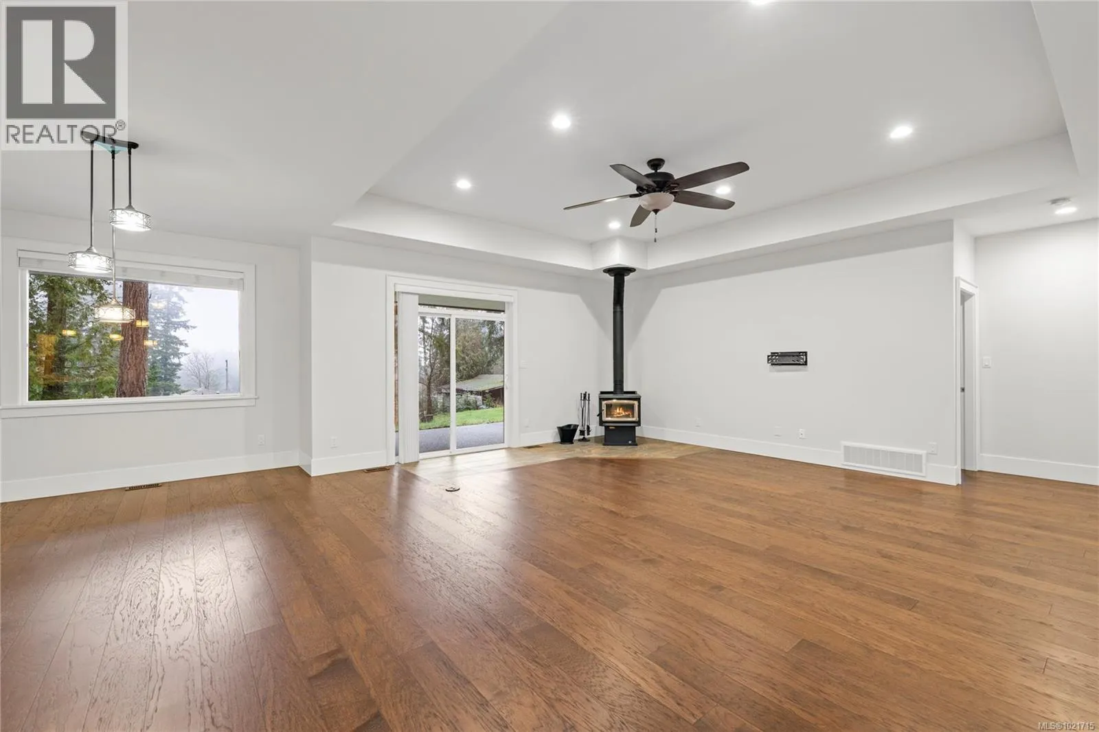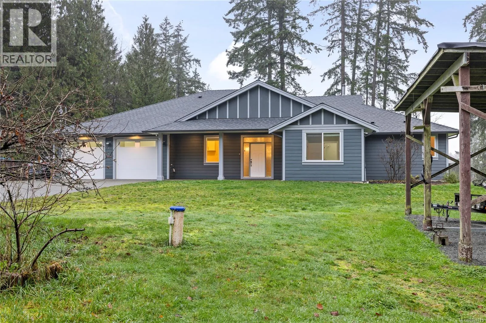 Gorgeous Modern Home With Detached Workshop in Quiet South Nanaimo Neighbourhood, Experience stylish contemporary living on a private 1-acre lot with mature trees and plenty of space. This freshly painted home features a bright, open great room with a trayed ceiling and a cozy, efficient wood stove. The gourmet kitchen is equipped with a large island, solid surface countertops, and dual ovensâperfect for entertaining. The primary suite offers a walk-in closet and a luxurious five-piece ensuite, while two additional bedrooms share a Jack-and-Jill bathroom. A flexible office or bedroom with a walk-in closet provides extra storage or workspace. Step out to the partially covered patio for seamless indoor/outdoor living. Additional highlights include a large garage with sink, a detached workshop/studio, and a spacious unfinished 6 ft crawl perfect for a hobby enthusiast and tons of storage. (id:27476)