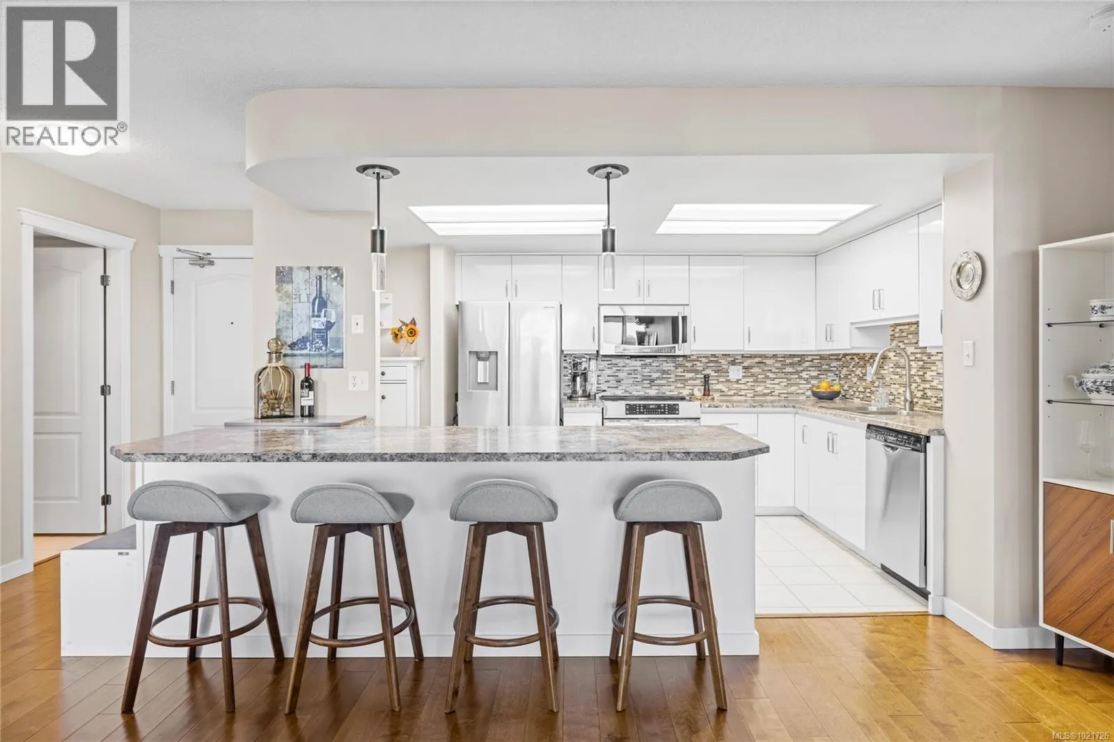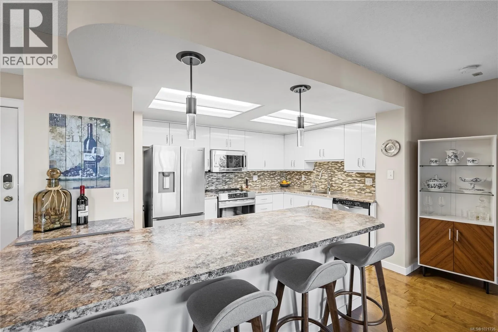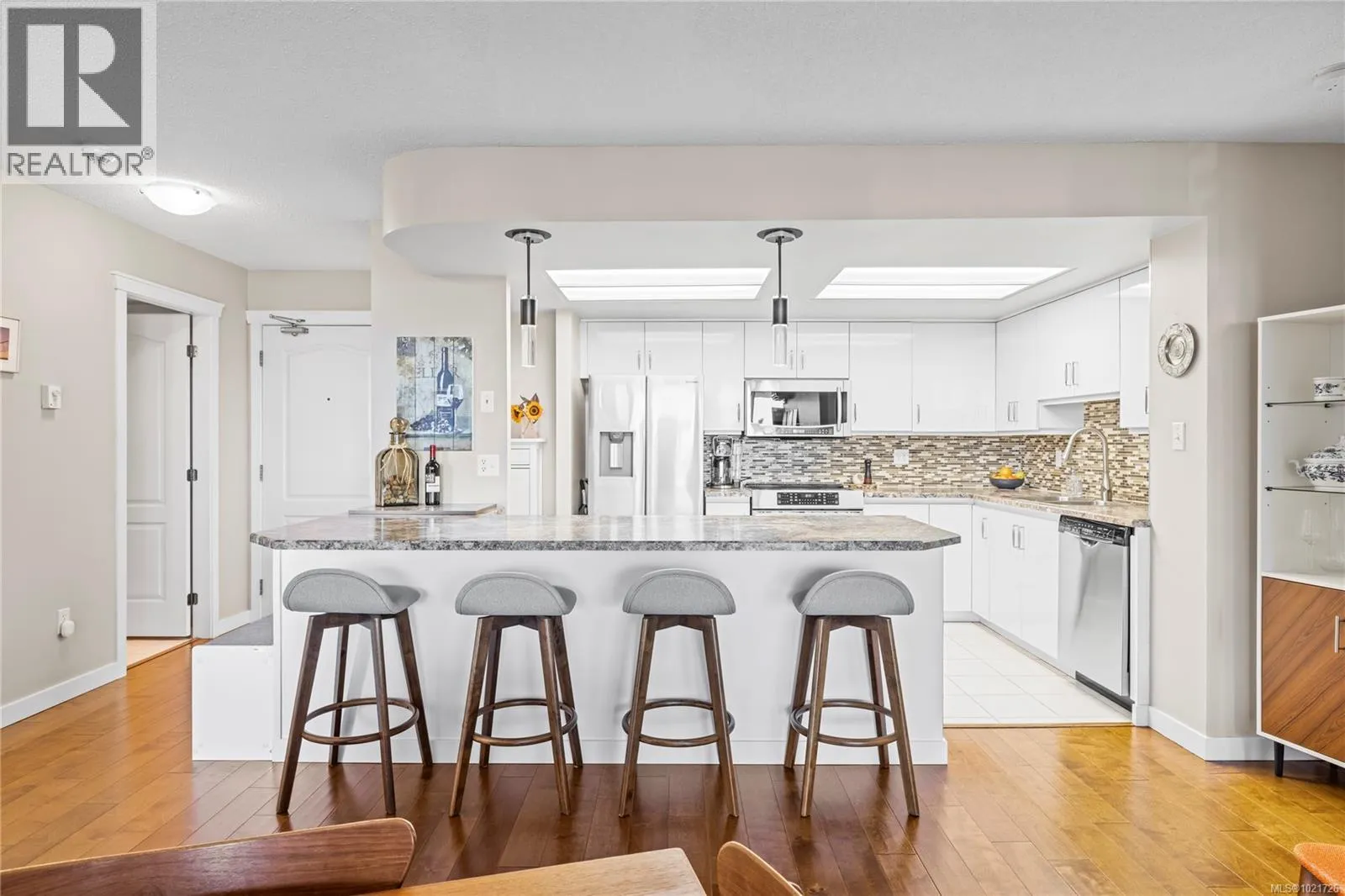 Welcome to 206 158 Promenade Drive in the Gabriola Building at the sought after Cameron Island waterfront community. This spacious 2 bedroom, 2 bathroom condo offers 1,072 square feet of comfortable living with lovely ocean views and the quality of solid concrete construction. Ideal for those looking to downsize, invest, or secure a low maintenance home in a truly prime location, this property delivers a rare blend of lifestyle and value. Bright and functional, the open concept layout is designed for everyday living and easy entertaining. Expansive living and dining areas are filled with natural light, creating a warm and inviting atmosphere throughout the home. The kitchen is well appointed with lots of cabinetry and ample counter space for meal preparation and hosting. The primary bedroom features its own private ensuite and two closet spaces, while the second bedroom and full bathroom provide flexibility for guests, hobbies, or a home office. Cameron Island is renowned for its exceptional walkability and waterfront lifestyle. Just outside your door, you can enjoy the scenic seawall, catch a live show at the Port Theatre, relax at nearby cafés and restaurants, or explore the boutiques, services, and amenities of downtown Nanaimo. The Gabriola Building offers secure underground parking, elevator access, and a professionally managed strata for added peace of mind. Unlike many condominiums, this building welcomes pets and allows one dog or one cat (subject to bylaws) making it easy to enjoy vibrant city living with your loved companions. With stunning ocean views, unbeatable location, and the durability of concrete construction, this home represents a standout opportunity in one of Nanaimoâs most desirable waterfront communities. Attractively priced at $564,900, it offers the perfect balance of comfort, convenience, and coastal lifestyle. Listed by Chris Carter with Royal LePage Nanaimo Realty. Contact your realtor or call today for a private viewing. (id:27476)