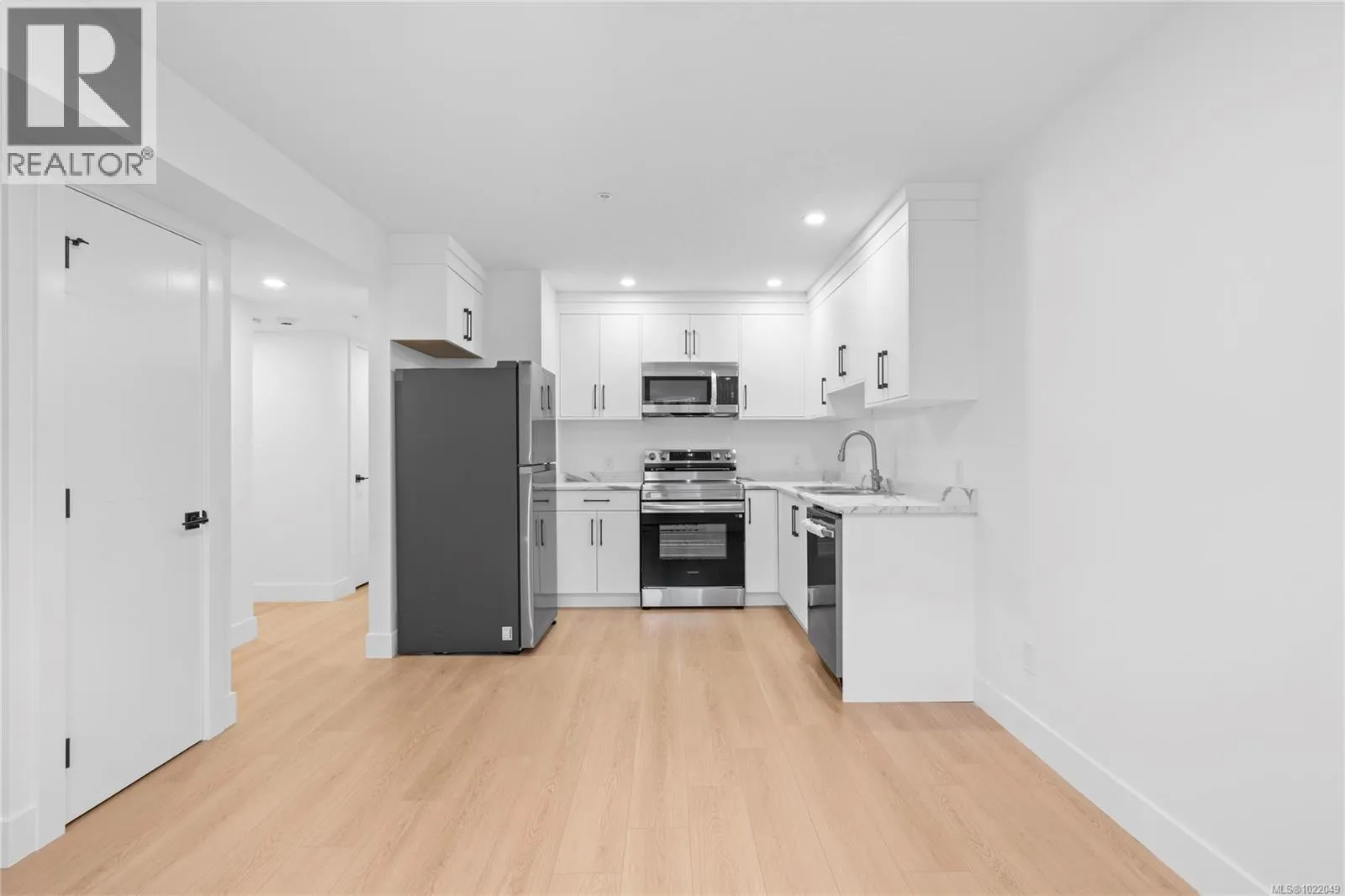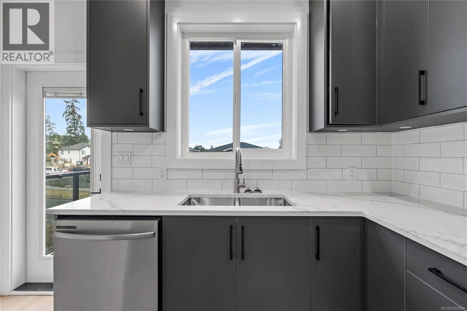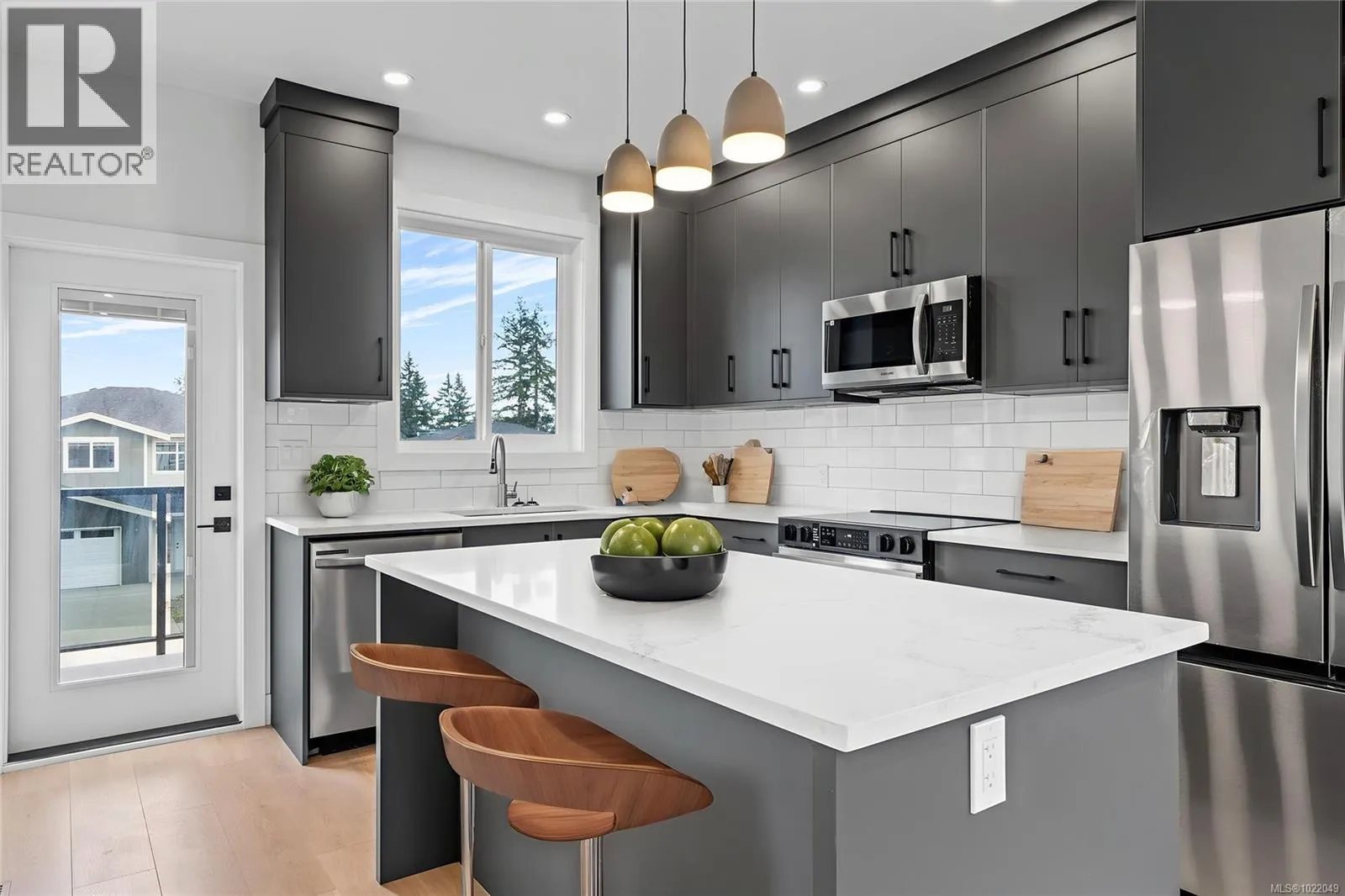 Welcome to 631 Eight Street, where modern style meets smart investment. This brand-neweperate home on a strata lot, without Strata FEE. The single-family home offers the perfect blend of lifestyle and value, whether youâre a first-time buyer looking for move-in-ready comfort or an investor seeking reliable rental income. From the moment you arrive, the landscaped yard and laneway garage set the tone for thoughtful design and quality finishes. The garage features a smart LiftMaster opener â belt-driven for quiet operation â with camera and phone connectivity so you can monitor access from anywhere. Step inside to a bright foyer with durable tile flooring. The main level features easy-care 12 mm laminate floors for better soundproofing and durability. The sleek kitchen includes dark grey cabinetry, pantry, Samsung appliances, subway tile backsplash, double undermount sink, and soft-close doors. Step out from the kitchen onto your balcony to enjoy open views â perfect for morning coffee or evening relaxation. The main level also offers 9â ceilings, three bedrooms, and a cozy living area with an electric fireplace framed by a feature wall. The primary suite boasts a walk-in closet with built-in organizer and a modern ensuite with quartz countertops, tile floors, under-mount sink, and walk-in shower with glass door. All bedrooms have closet organizers for practical storage. Downstairs, a fully self-contained 2-bedroom suite with separate hydro meter offers flexibility â ideal for family, guests, or steady rental income to help with the mortgage. Built for comfort, safety, and sustainability, this home features a forced-air furnace, heat pump, electric hot water tank, and full fire sprinkler system that may lower insurance costs. Close to schools, parks, VIU, shopping, and transit, 631 Eight Street is an opportunity to secure a better future while helping the environment. All Measurement is approx. (id:27476)