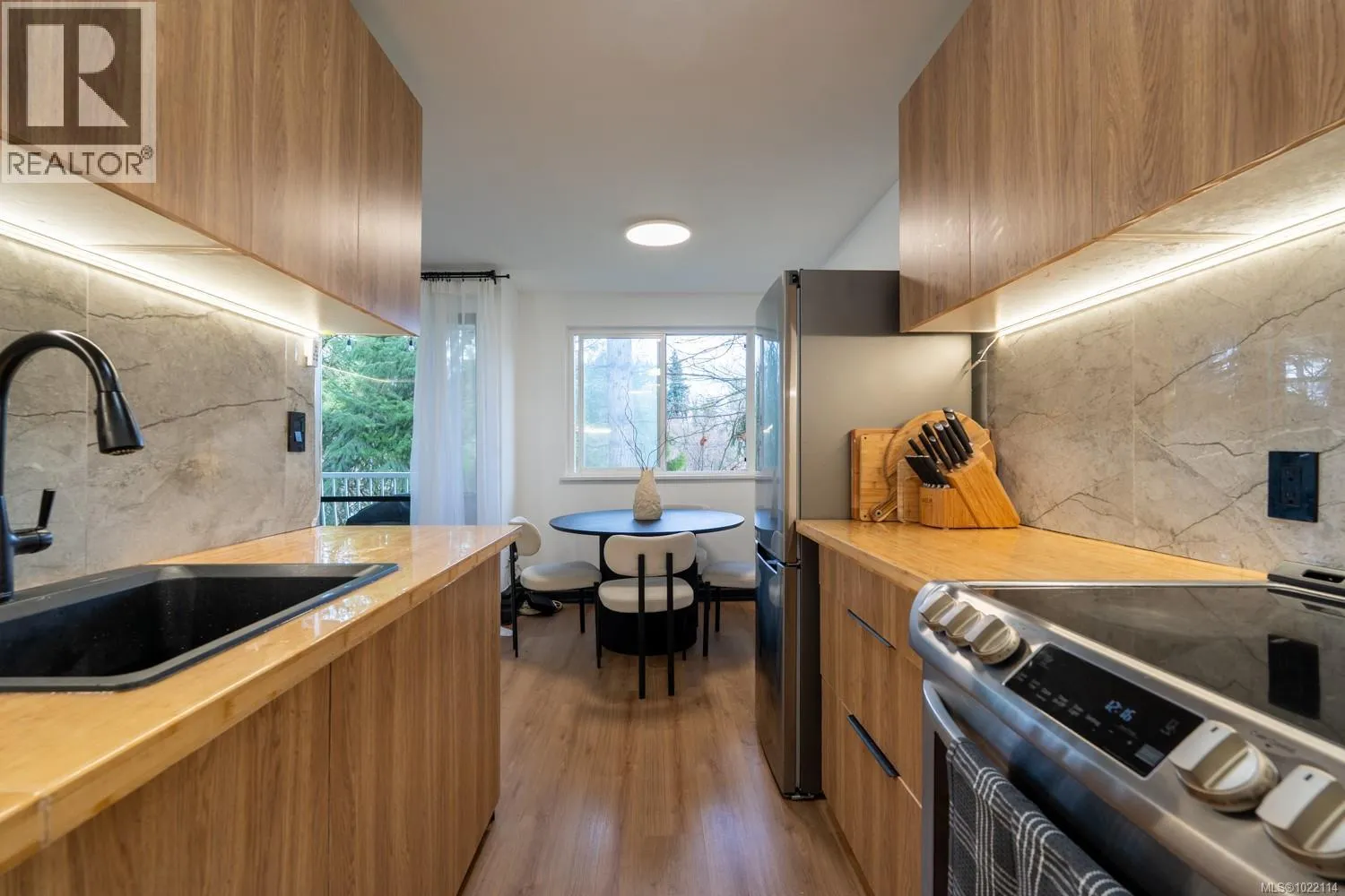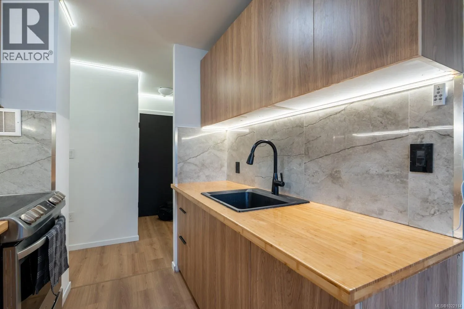 Move right into this stunning, completely renovated one-bedroom condo in central Nanaimo! Perfect for any lifestyle or an investment opportunity. Enjoy custom cabinetry and modern appliances in the bright kitchen, plenty of storage throughout, plus a versatile in-unit storage room/den â ideal for a home office, pantry, or extra organization. The showcase bathroom features premium fixtures, elegant tiling, and spa-like comfort. To complete the vibe, there is custom lighting throughout the unit bringing a warm, modern ambiance. You will live across the street from Bowen Park, walking distance to Buttertubs Marsh wildlife sanctuary and VIU. Close to shopping, transit, and downtown amenities. The strata is pet-friendly (See Bylaws: up to 2 cats or one dog with a 22kg limit). Heat and hot water are included in the Strata fees and keep the hydro bills really low for these units. Don't miss this move-in-ready gem â contact for a viewing today! (id:27476)