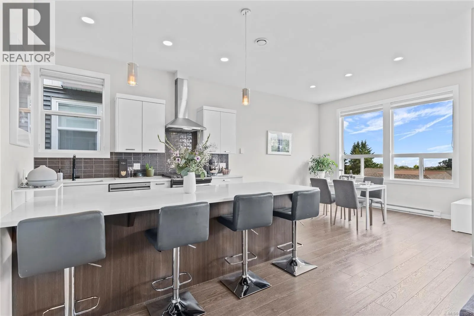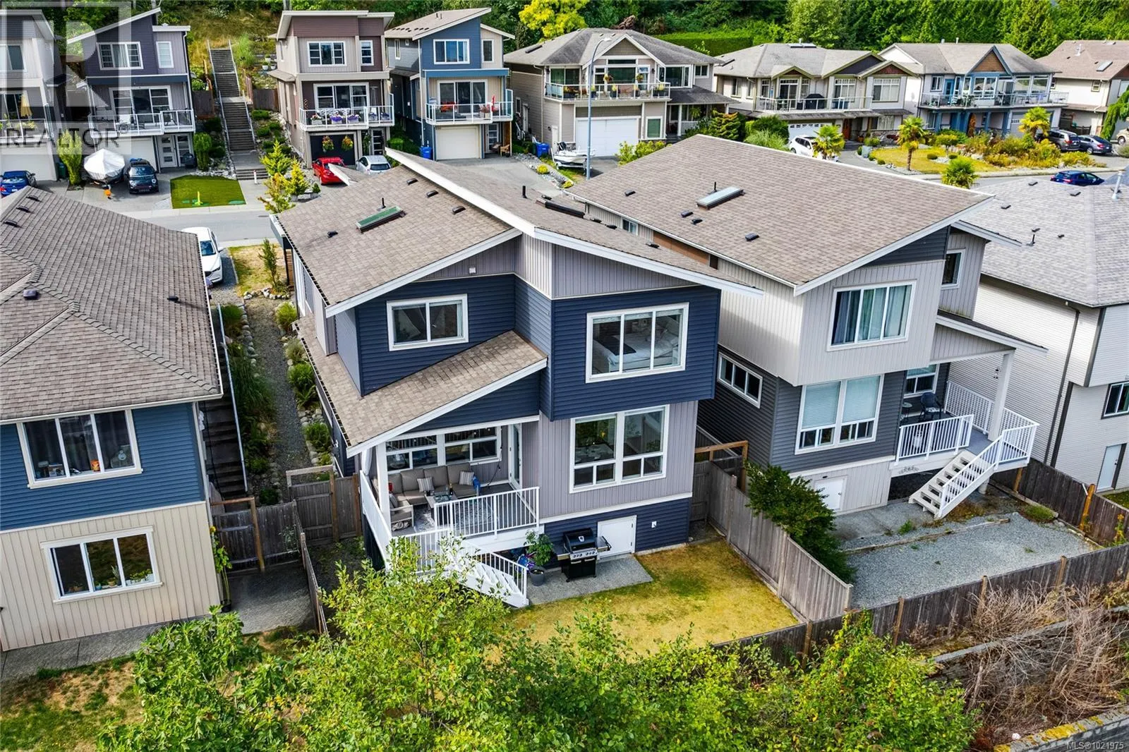 Welcome to 5147 Dunn Place â a stunning Westcoast Contemporary home in sought-after North Nanaimo. This beautifully designed two-level residence by Windley Contracting offers breathtaking ocean views from the living room, dining room and deck as well as a thoughtful, functional layout. The home features 3 bedrooms plus a den, 3 bathrooms, and quality finishes throughout. Highlights include 10-ft ceilings on the main level, a natural gas stove and fireplace, and an open-concept living area ideal for both family life and entertaining. Off the kitchen, a covered sundeck provides the perfect spot to enjoy your morning coffee while overlooking the low-maintenance, fully fenced yard. Located on a quiet, family-oriented street, this property is just a short drive to Woodgrove Centre, schools, and the amenities of North Nanaimo. Outdoor enthusiasts will appreciate being close to Neck Point Park and Piperâs Lagoon. Best of allâno strata fees. (id:27476)