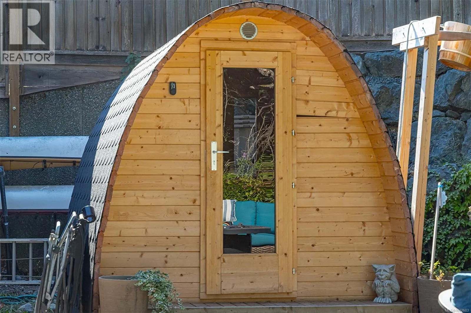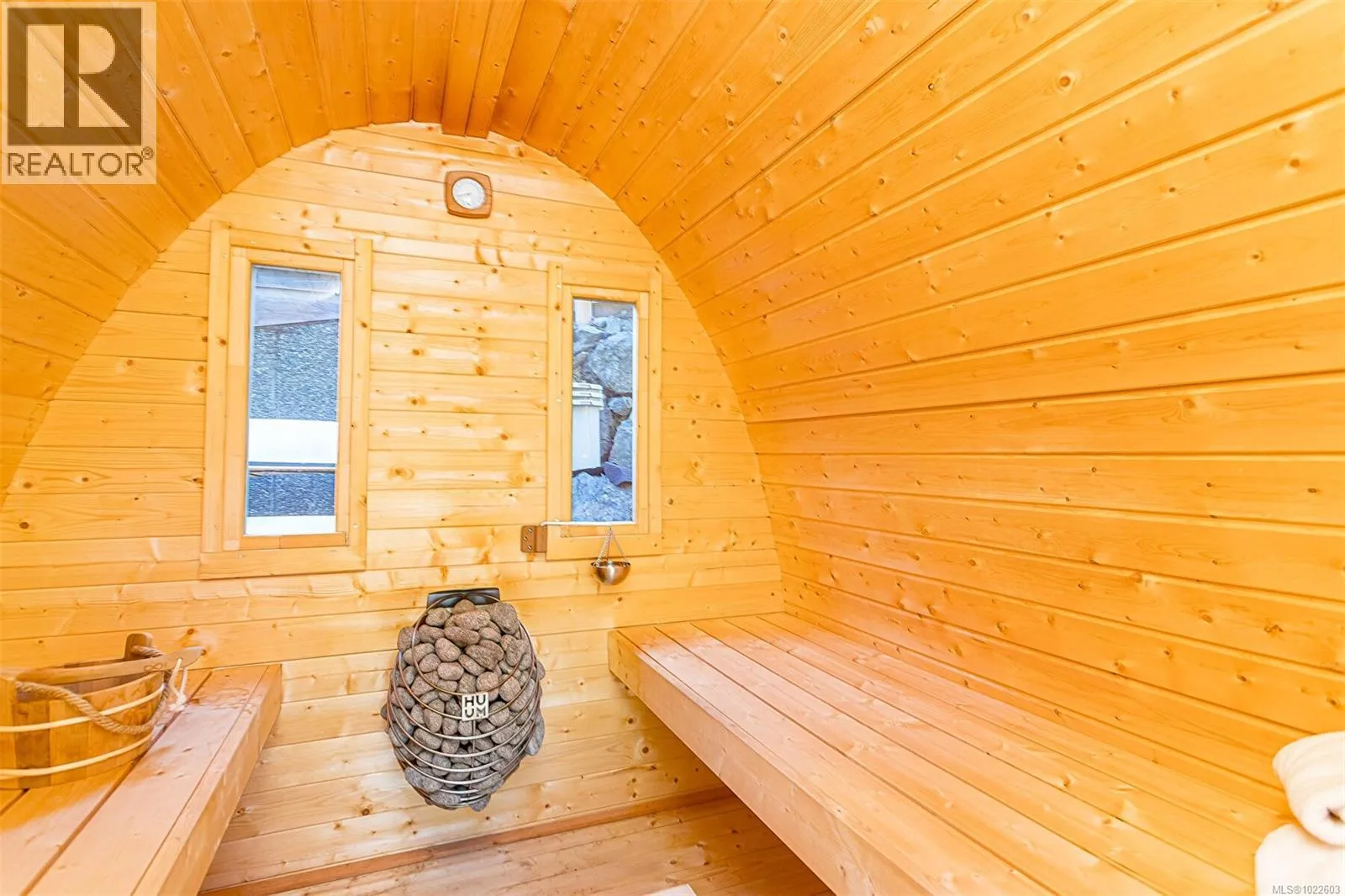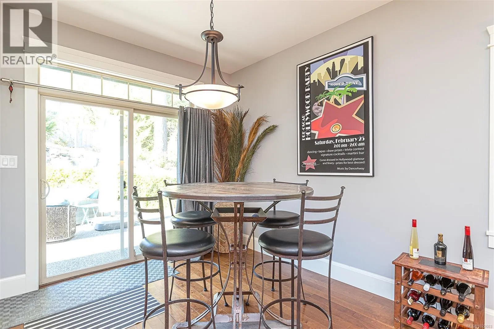 Experience the best of Nanaimo living in this beautifully maintained, move-in-ready 2015 rancher. Located in the sought-after University District, this home offers 1,606 sq ft of sophisticated, single-level living on a peaceful corner lot, perfectly designed for downsizers and those craving an easy-care, high-end lifestyle. The open-concept layout centers around a spacious great room with high ceilings, abundant natural light, and a cozy gas fireplace. The gourmet kitchen is a showstopper, featuring granite countertops, a large island with breakfast bar seating, and ample cabinetry, making it ideal for both daily life and hosting. The primary suite is a true retreat, generously sized with a luxurious 5-piece ensuite and a walk-in closet. Two additional bedrooms provide great flexibility for family, guests, or a dedicated home office. Quality finishes, including engineered hardwood flooring and detailed trim work, flow throughout. The exceptional outdoor space is this homeâs signature feature: Step out to your expansive 800+ sq ft custom patio, an unrivaled space for large-scale entertaining or quiet relaxation. As a private luxury amenity rarely offered, enjoy winding down in your dedicated built-in sauna. Additional highlights include a double garage with extra-high ceilings (perfect for storage/workshop), a generous crawlspace for dry storage, and low-maintenance mature landscaping. With quick access to Westwood Lake trails and a peek-a-boo ocean view, this is a rare opportunity to own a peaceful, convenient, and truly special home. (id:27476)